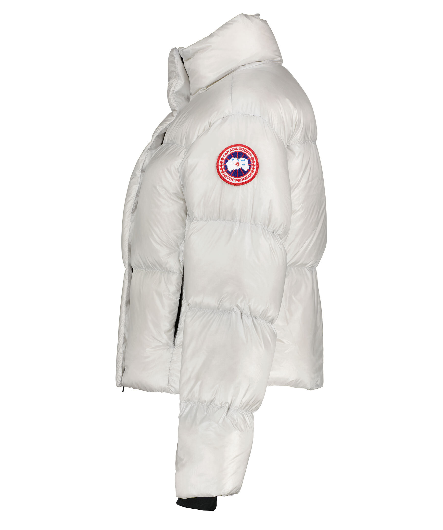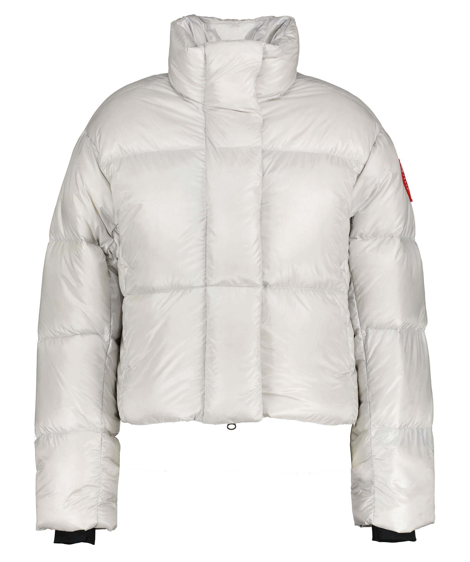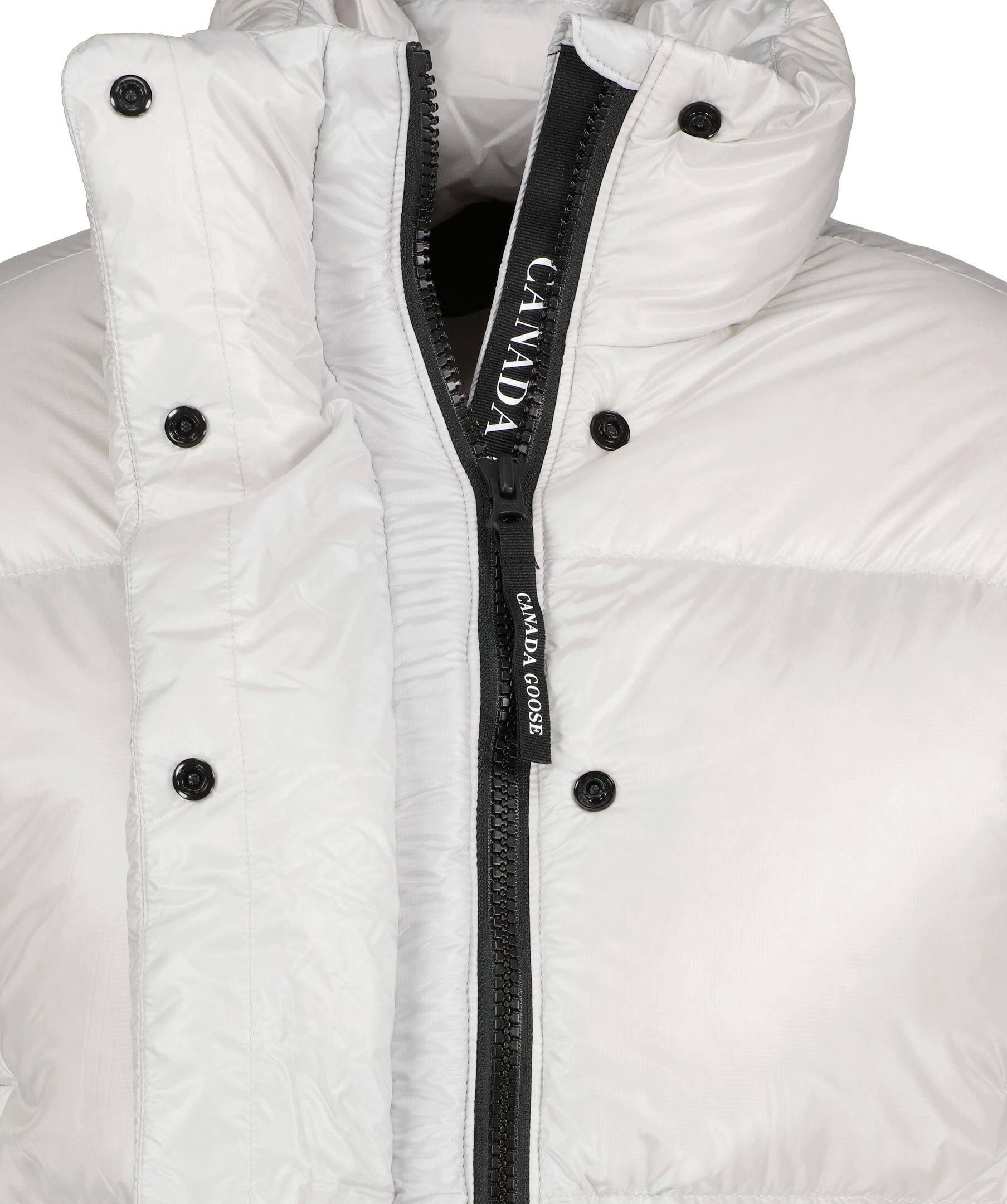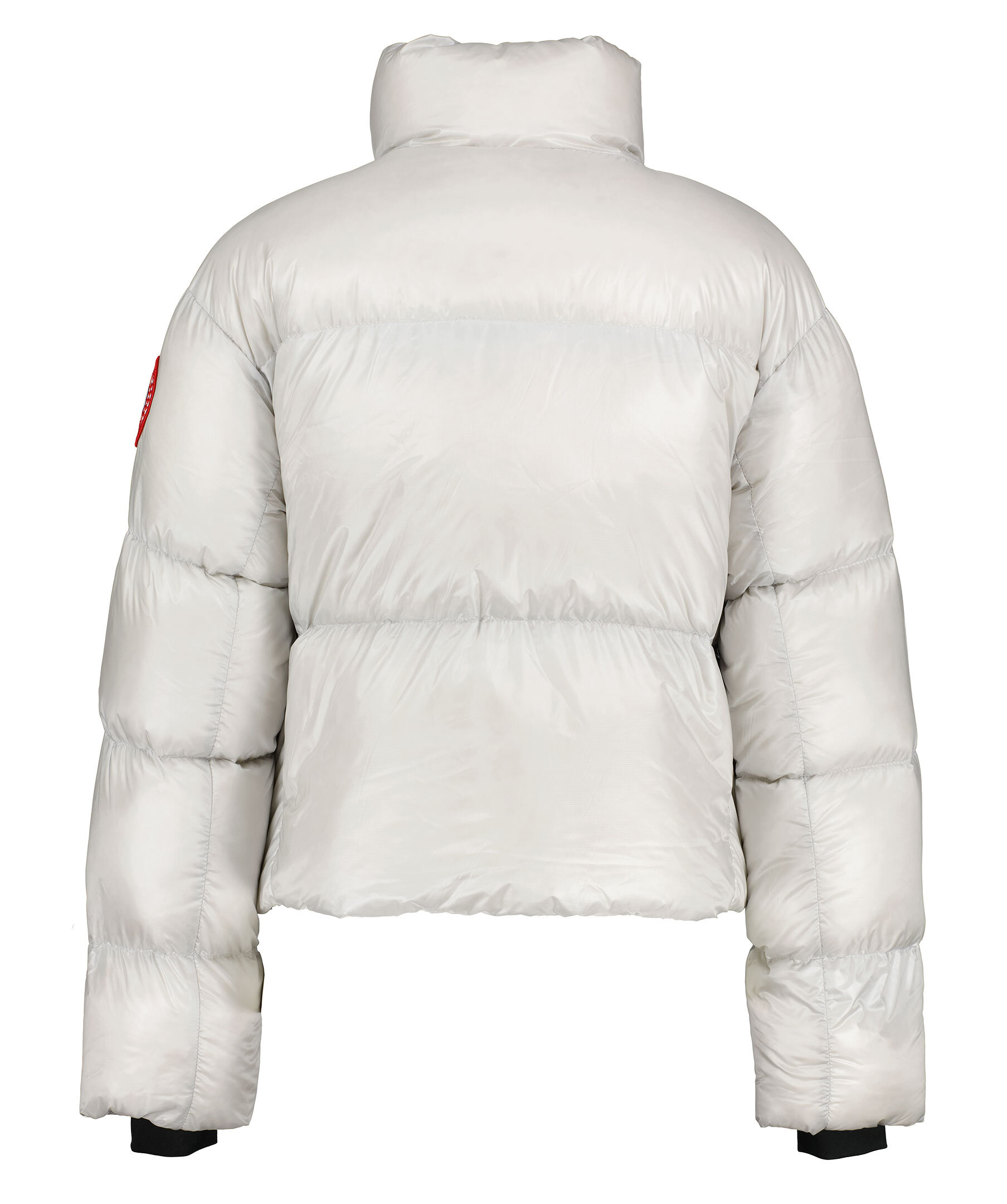 Silvrig, kort pufferjacka från Canada Goose. Cypress Cropped Puffer är ett måste för flera säsonger samtidigt som du behärskar konsten att kompakt hållbarhet. Cypress Cropped Puffer är gjord i återvunnen fjäderlätt Ripstop Shiny för lätt hållbarhet och kombinerar enkel bärbarhet med funktionella egenskaper. Den har en beskuren fåll med invändig dragsko, dunfylld krage och är helt packbar i den inre vänstra fickan. Försänkta manschetter ger komfort och låser in värmen. Sänkt axel och ledad ärm för optimalt rörelseomfång. Två yttre fickor med dragkedja, tre innerfickor: två infällbara meshfickor, en säkerhetsficka med dragkedja. Avtagbara inre ryggsäcksremmar gör att jackan kan bäras handsfree över axlarna.