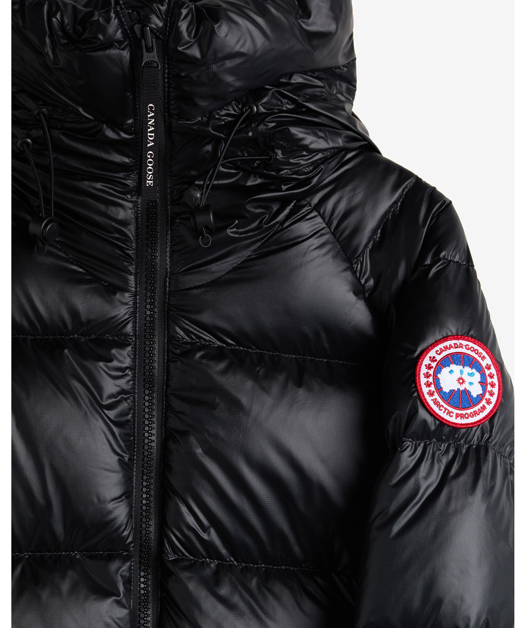 Svart dunjacka från Canada Goose. Jackan stängs med tvåvägsdragkedja och har en justerbar huva, hakskydd i mockatrikå, två handfickor med dragkedja och trikå samt två invändiga nätfickor. Logotyp på vänster ärm. Tillverkad i Recycled Feather Light Ripstop – ett ultralätt tyg med ripstop-konstruktion och vattenavvisande finish. Jackan är packbar i innerfickan på vänster sida. Kan omvandlas till en lättviktsväska med bärrem. Gjord för att hålla dig varm i temperaturer runt -15°C till -25°C.