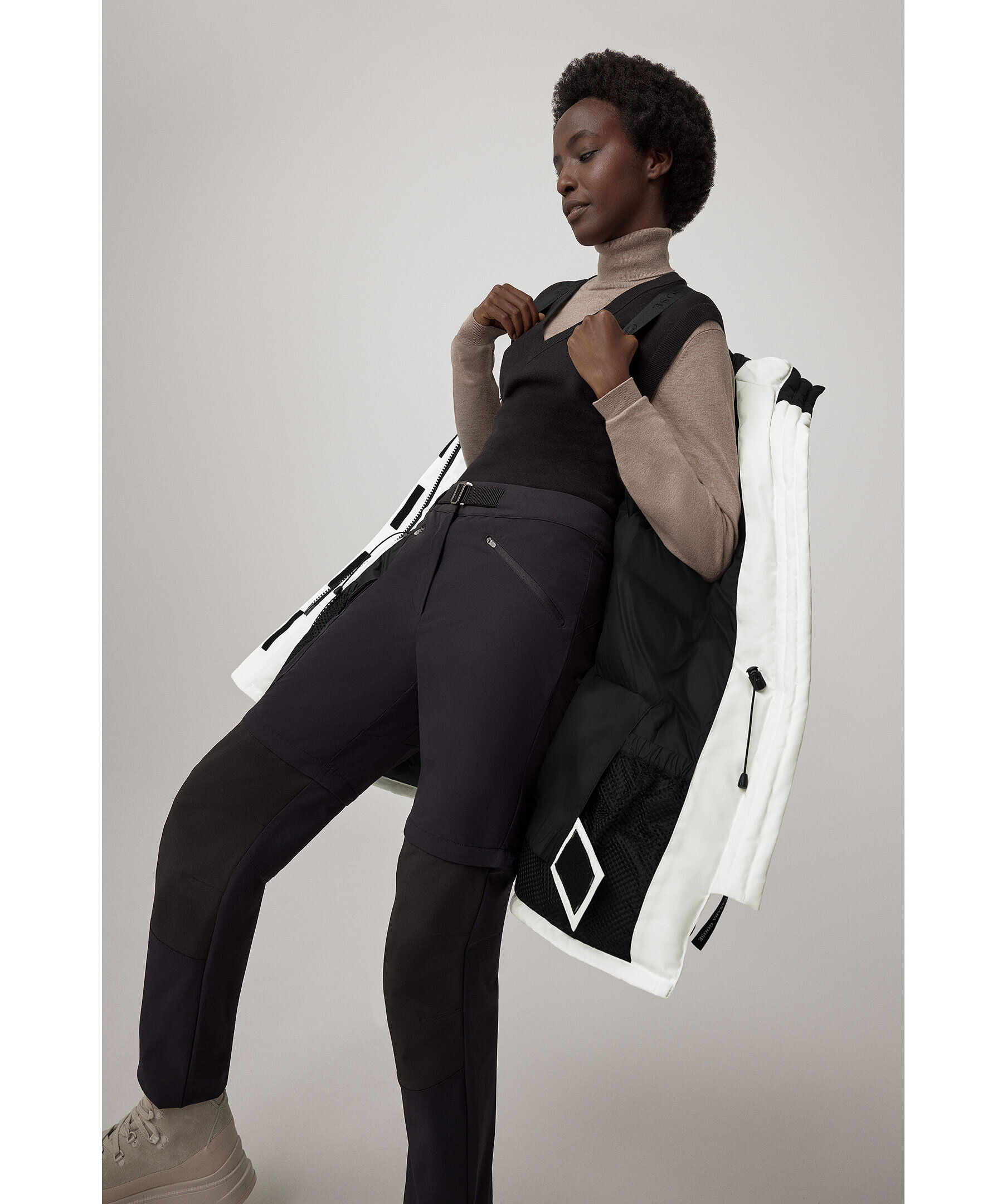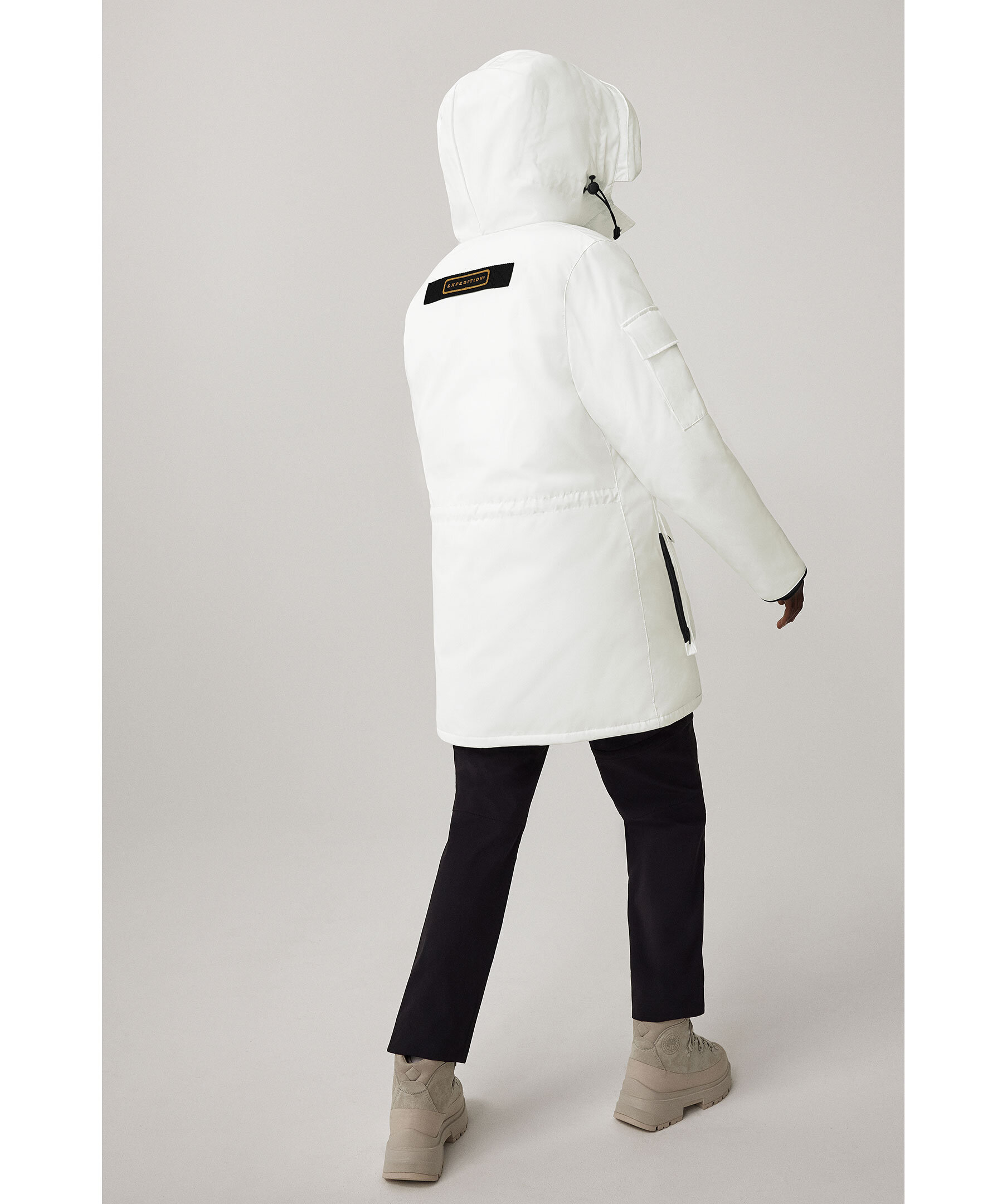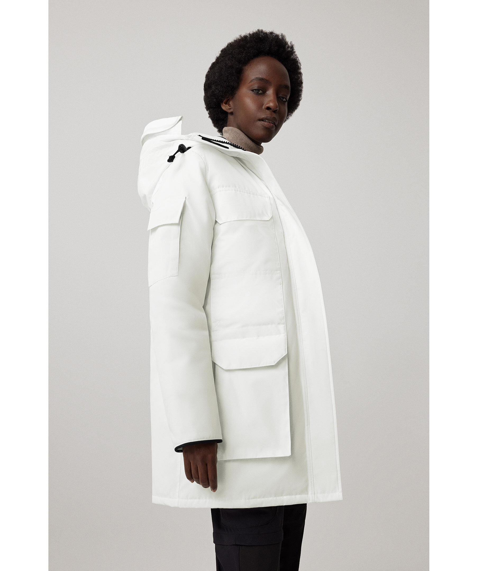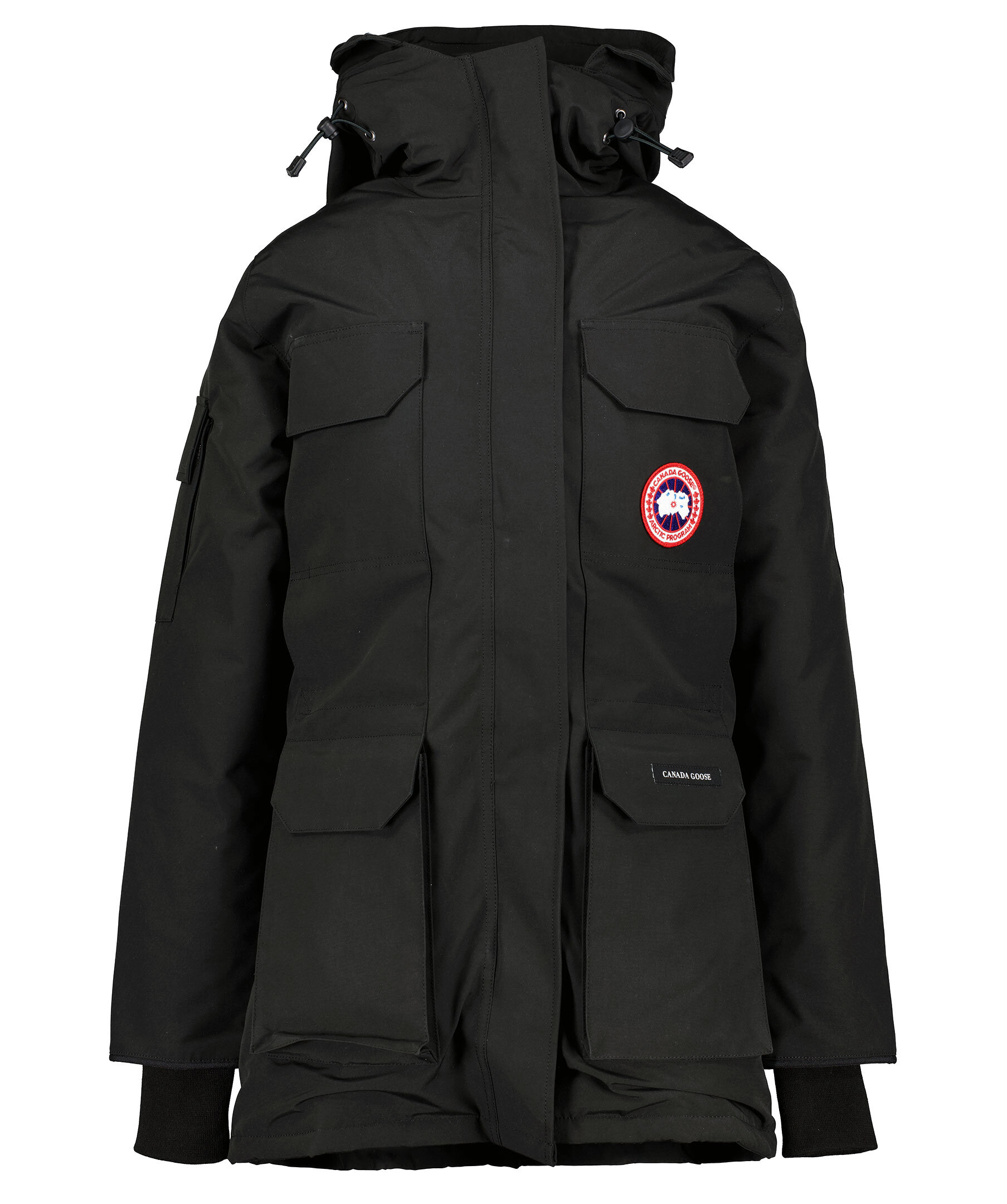 Svart parka från Canada Goose. Stängs framtill med tvåvägsdragkedja och kardborrar. Fyra fickor framtill som stängs med lock och kardborre. Luva med dragsko. Broderad patch med logotyp framtill. Ribbstickade muddar vid ärmslut. Elastiska band på insidan som man kan sätta över axlarna och låta jackan hänga fritt om man vill ha den öppen. Dragsko i midjan. Innerfickor i mesh material. Snölås i midjan.
