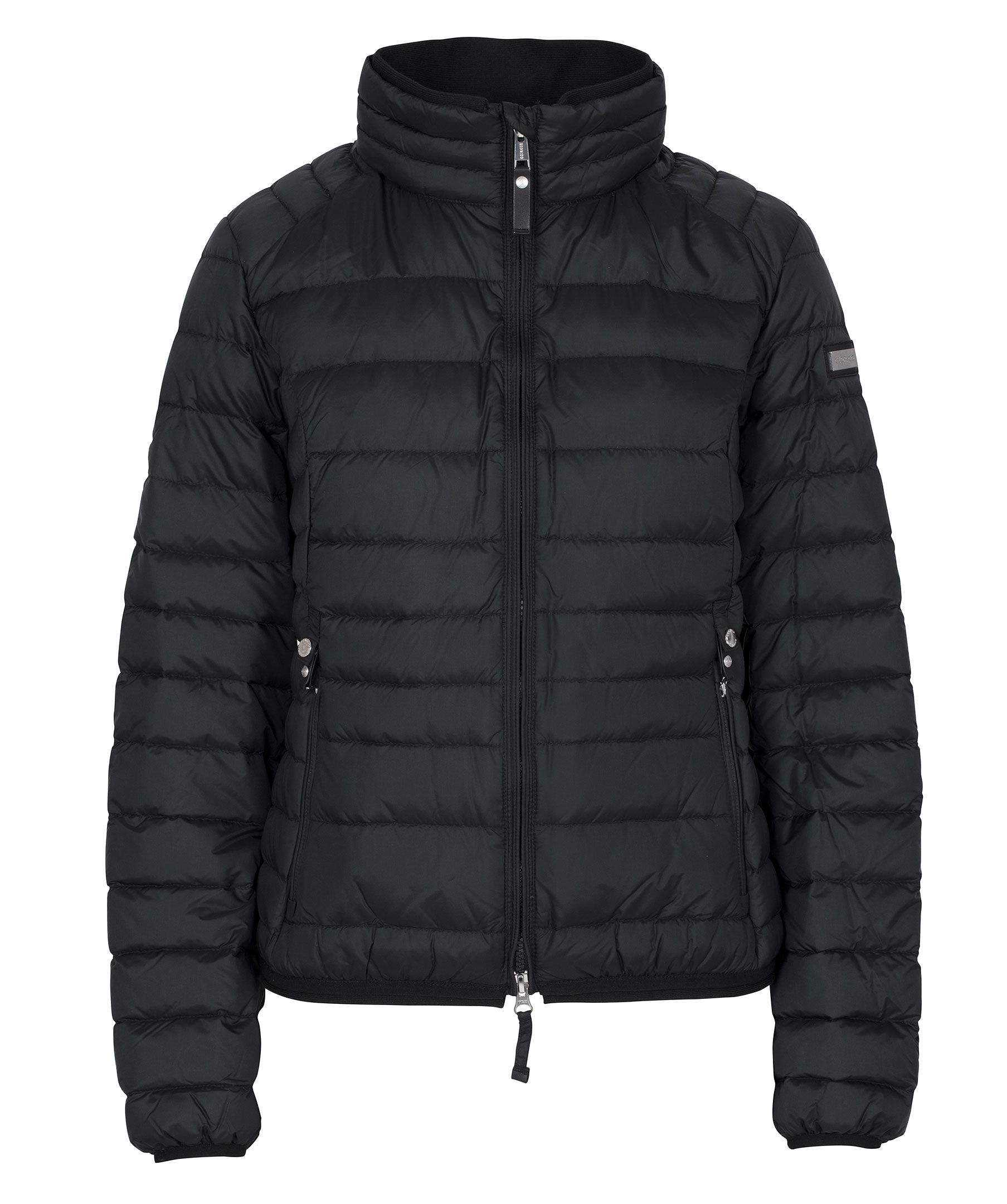 Svart lättviktsdunjacka från Cedrico. Tillverkad i nylon med fyllning av dun och fjäder. Jackan stängs med tvåvägsdragkedja och har en hög krage. Två fickor fram som stängs med dragkedja och har knapp ovanför som man kan knäppa fast dragflärpen i så att den håller sig på plats och inte åker ner. Tre innerfickor, en med dragkedja. Logga på vänster ärm samt liten mudd i ärmslut och plaggslut. Ventilationshål i armhålorna.