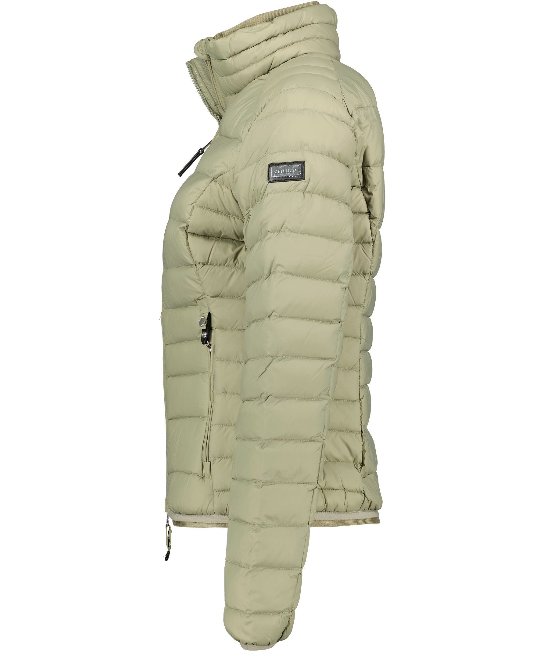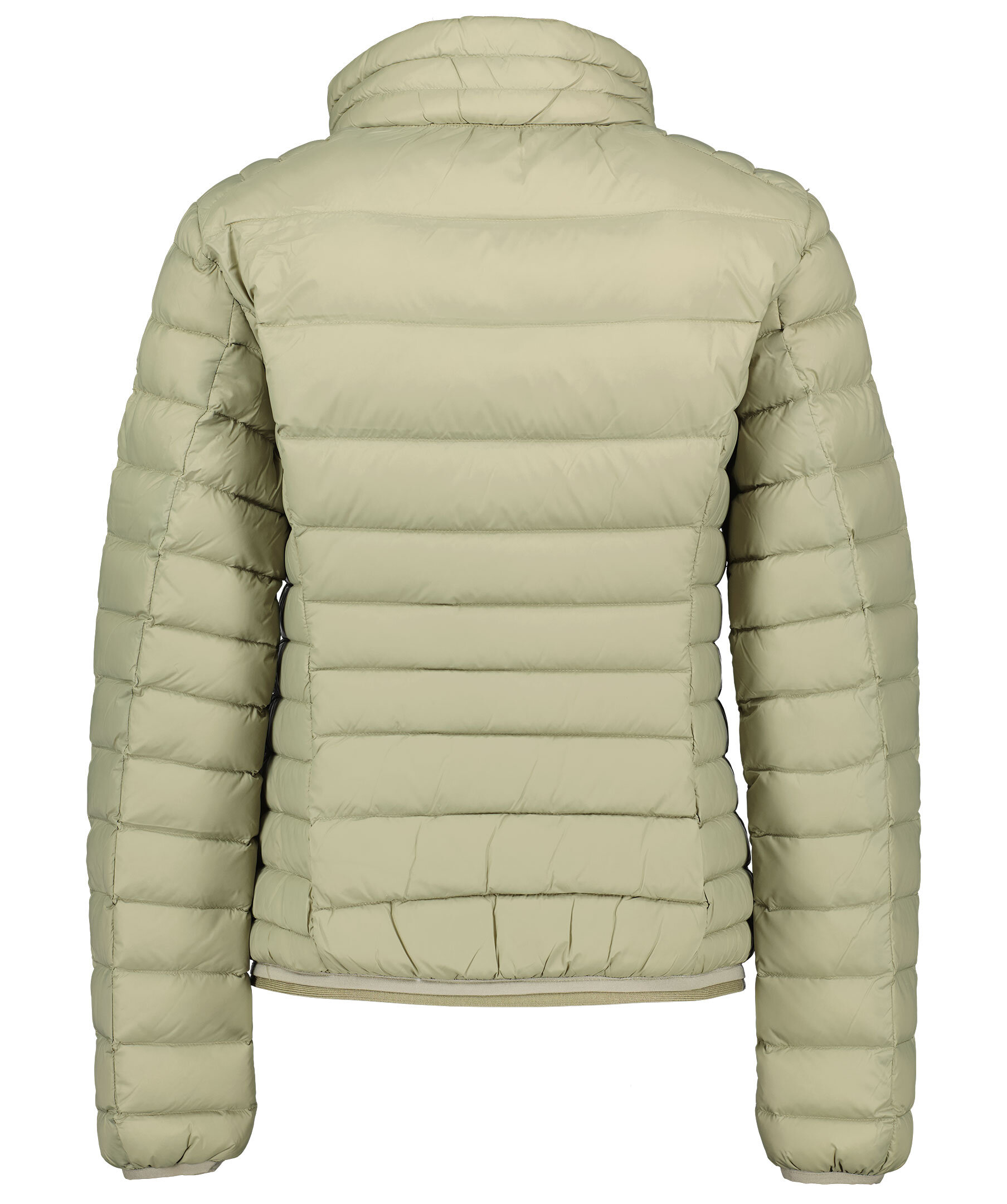 Ljusgrön lättviktsdunjacka från Cedrico. Tillverkad i nylon med fyllning av dun och fjäder. Jackan stängs med tvåvägsdragkedja och har en hög krage. Två fickor fram som stängs med dragkedja och har knapp ovanför som man kan knäppa fast dragflärpen i så att den håller sig på plats och inte åker ner. Tre innerfickor, en med dragkedja. Logga på vänster ärm samt liten mudd i ärmslut och plaggslut. Ventilationshål i armhålorna.
