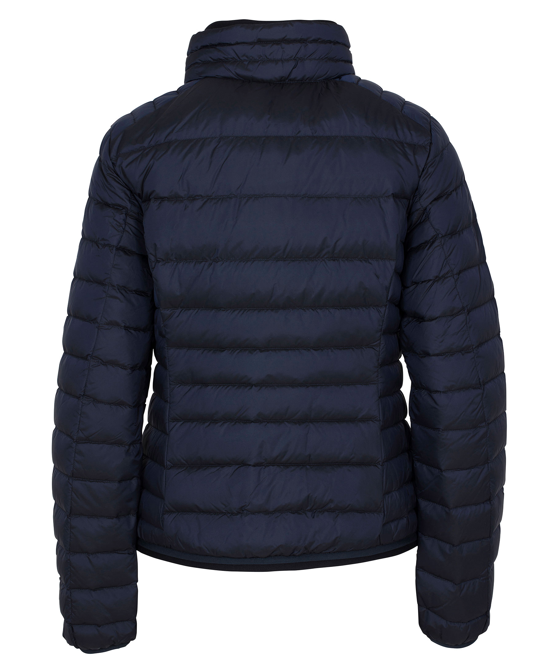 Marinblå lättviktsdunjacka från Cedrico. Tillverkad i nylon med fyllning av dun och fjäder. Jackan stängs med tvåvägsdragkedja och har en hög krage. Två fickor fram som stängs med dragkedja och har knapp ovanför som man kan knäppa fast dragflärpen i så att den håller sig på plats och inte åker ner. Tre innerfickor, en med dragkedja. Logga på vänster ärm samt liten mudd i ärmslut och plaggslut. Ventilationshål i armhålorna.