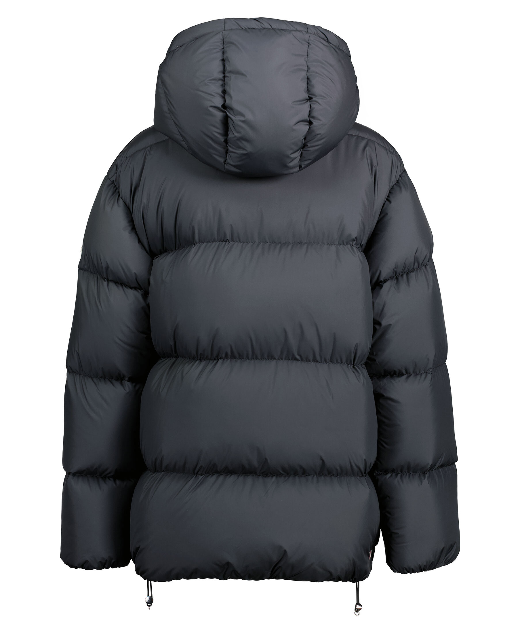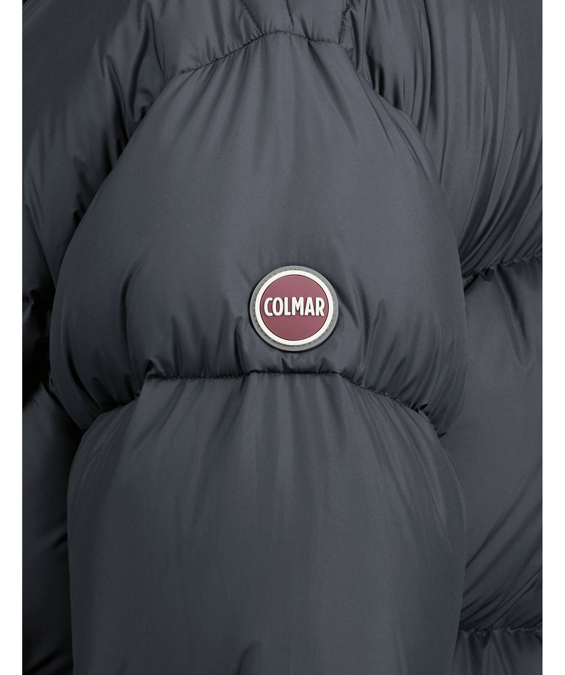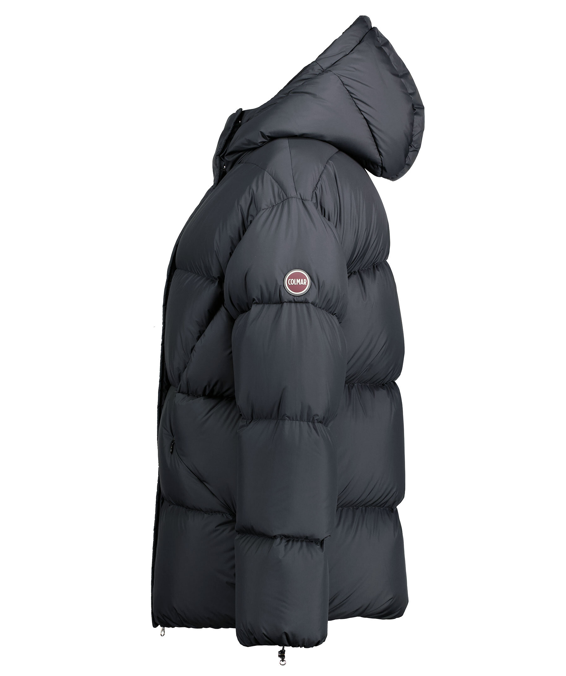 Svart pufferjacka från Colmar. Jackan har fast huva, är gjord av mjukt matt tyg, med vattenavvisande behandling. Naturlig dunstoppning. Ett varmt och mjukt mellanlångt plagg, tillägnat dig som är känslig för kyla. Funktionell och bekväm, den är perfekt för att möta kalla vintertemperaturer. Den överdimensionerade passformen kan justeras med praktiska dragsko i fållen och huvan. En pösig modell som anpassar sig till urbana eller sportiga outfits. Stängs med dragkedja som döljs av knäppning. Sidfickor med dragkedja. Naturlig fjäderstoppning. Colmar Originals logotypapplikation på vänster ärm. Tillverkad i polyester.