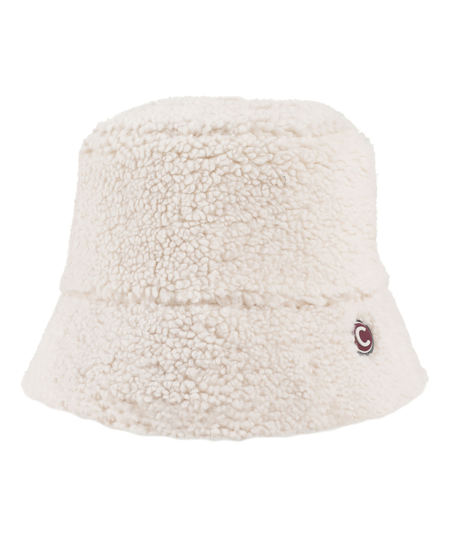 Krämvit bucket hat i unisexmodell från Colmar. Tillverkad av syntetisk päls i polyester. Colmar Originals logotyp på sidan och bred kant runt om som skyddar mot väder och vind.