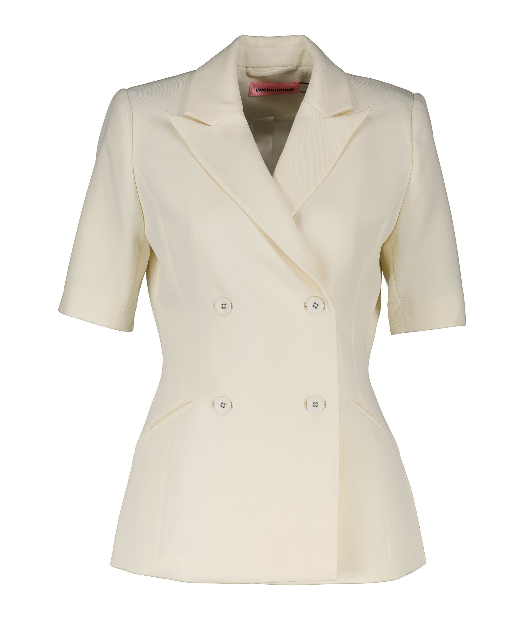 Vit, kortärmad kavaj från Custommade. Den har korta ärmar och en vacker form som elegant framhäver midjan. Kavajen har fyra knappar framtill. Tillverkad i en polyesterblandning.