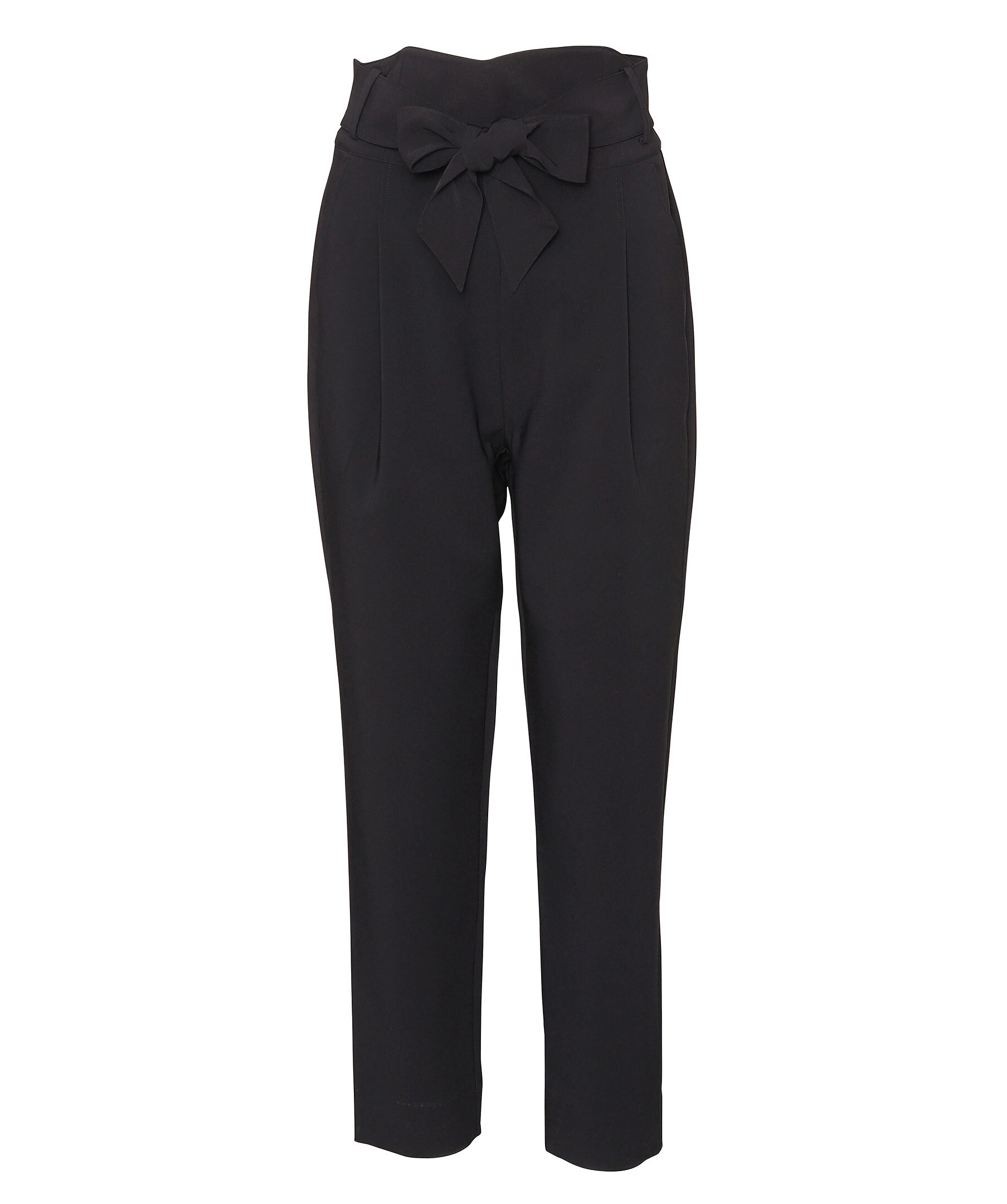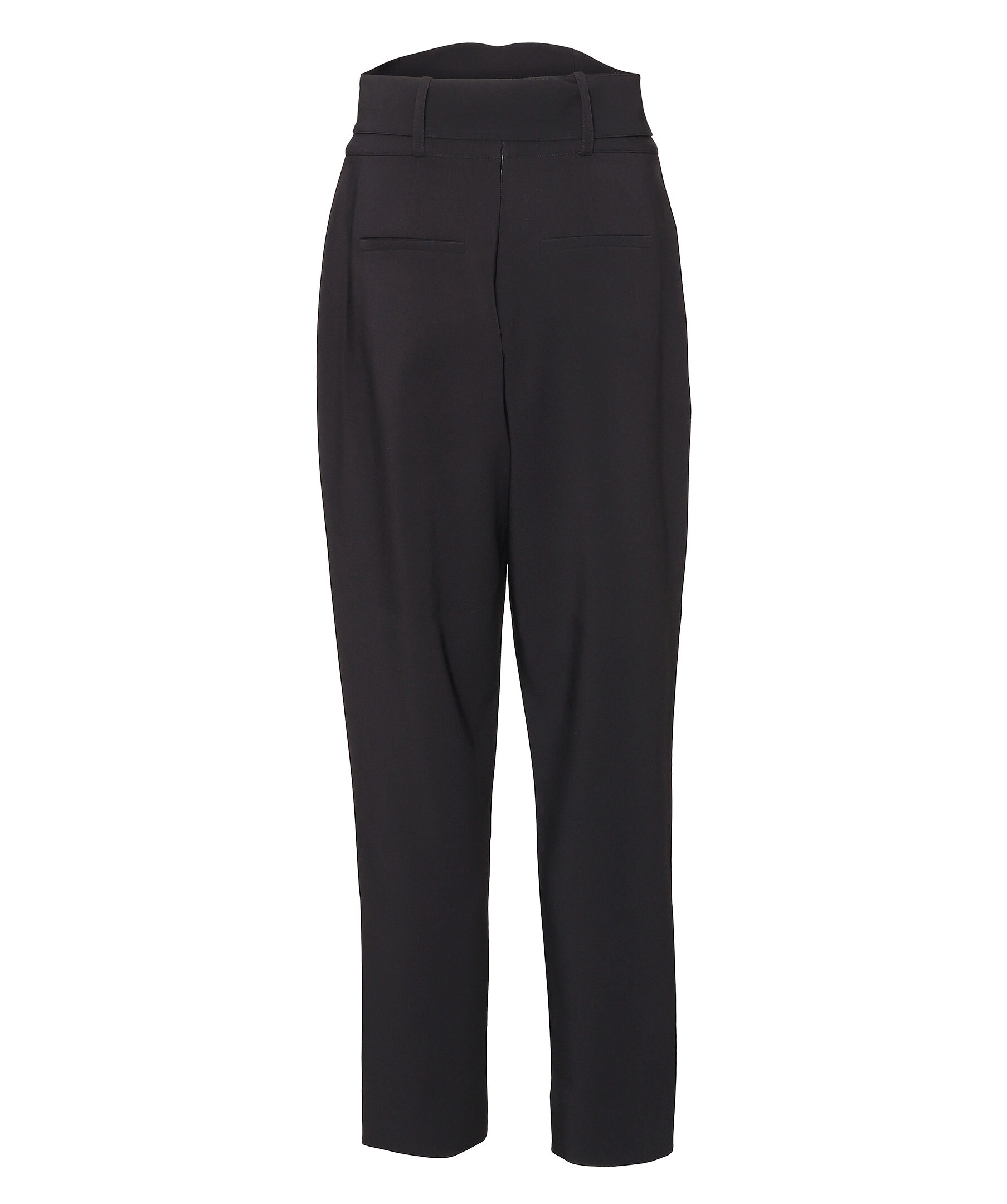 Svarta högmidjade dressade byxor från Custommade. Bälte med rosett. Två fickor i sidan, bakfickor.