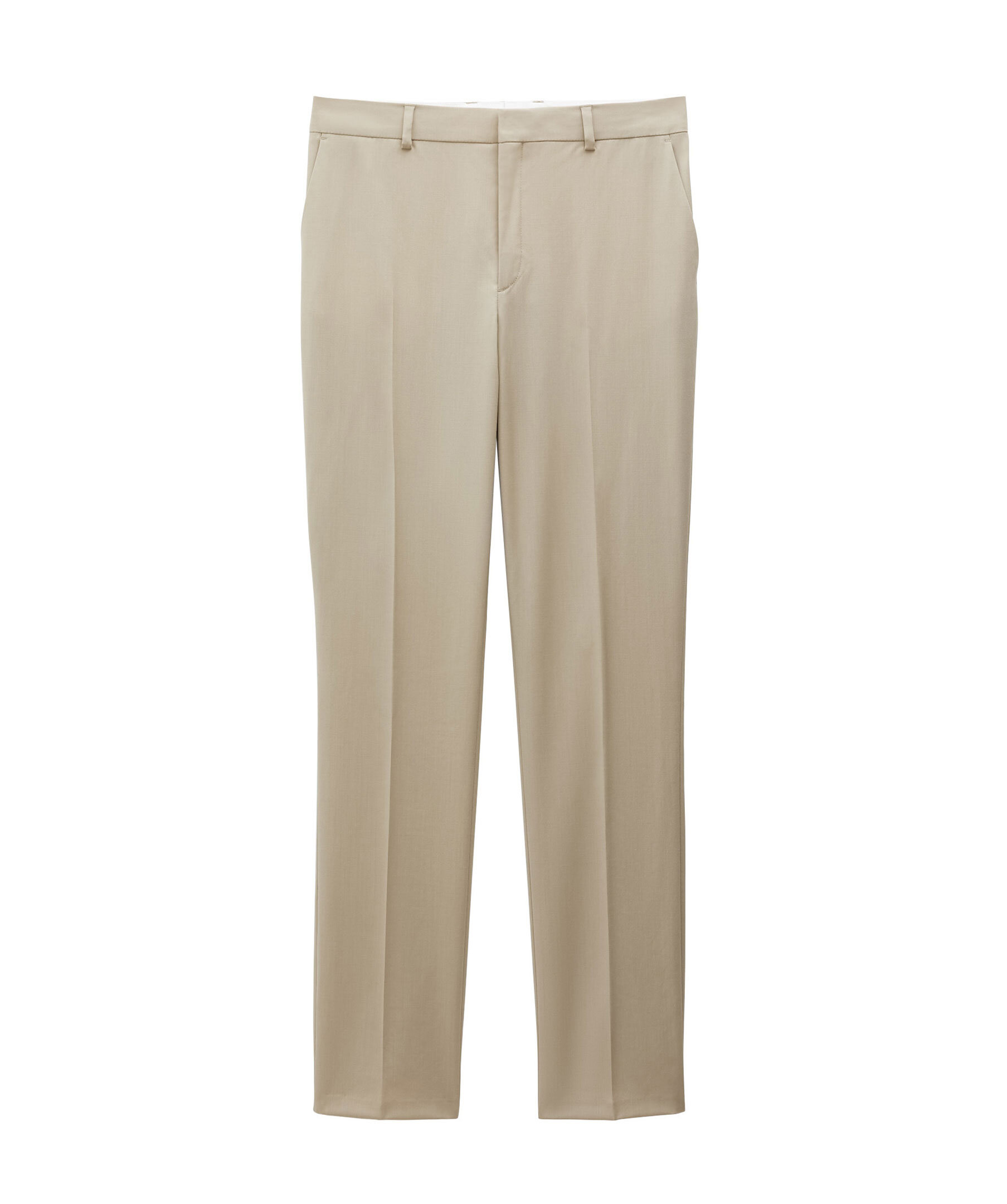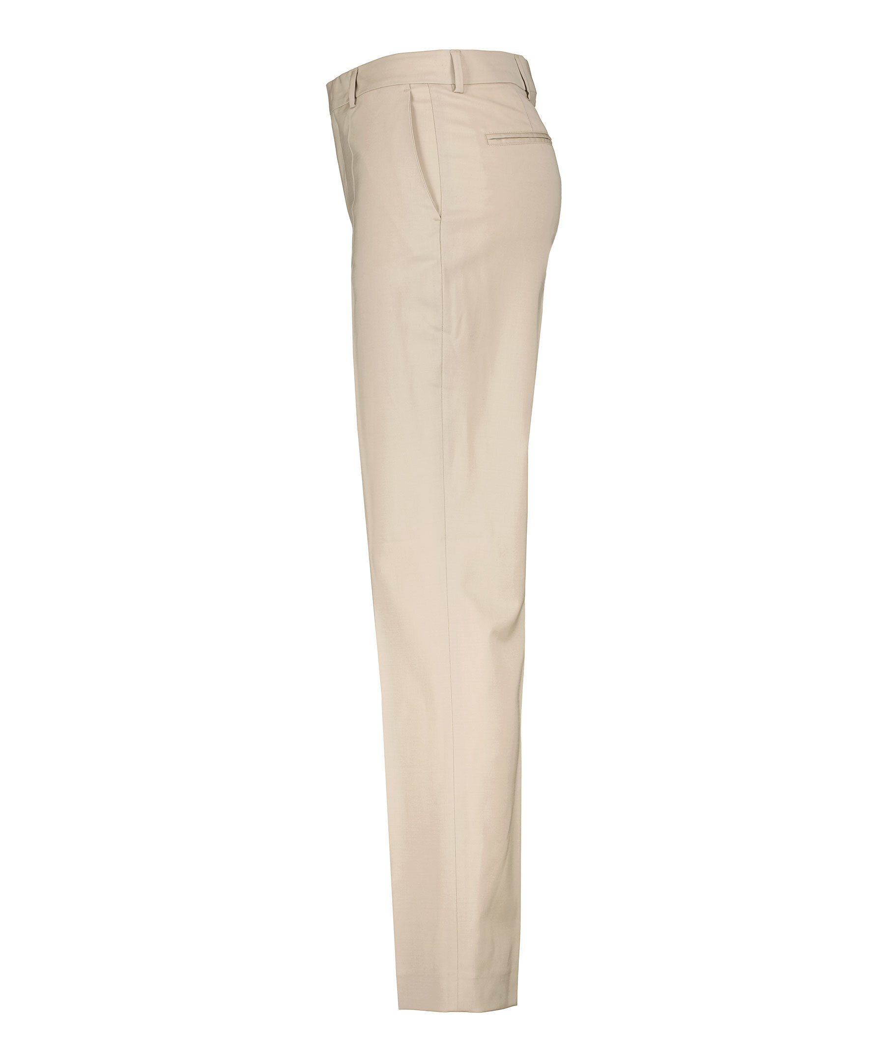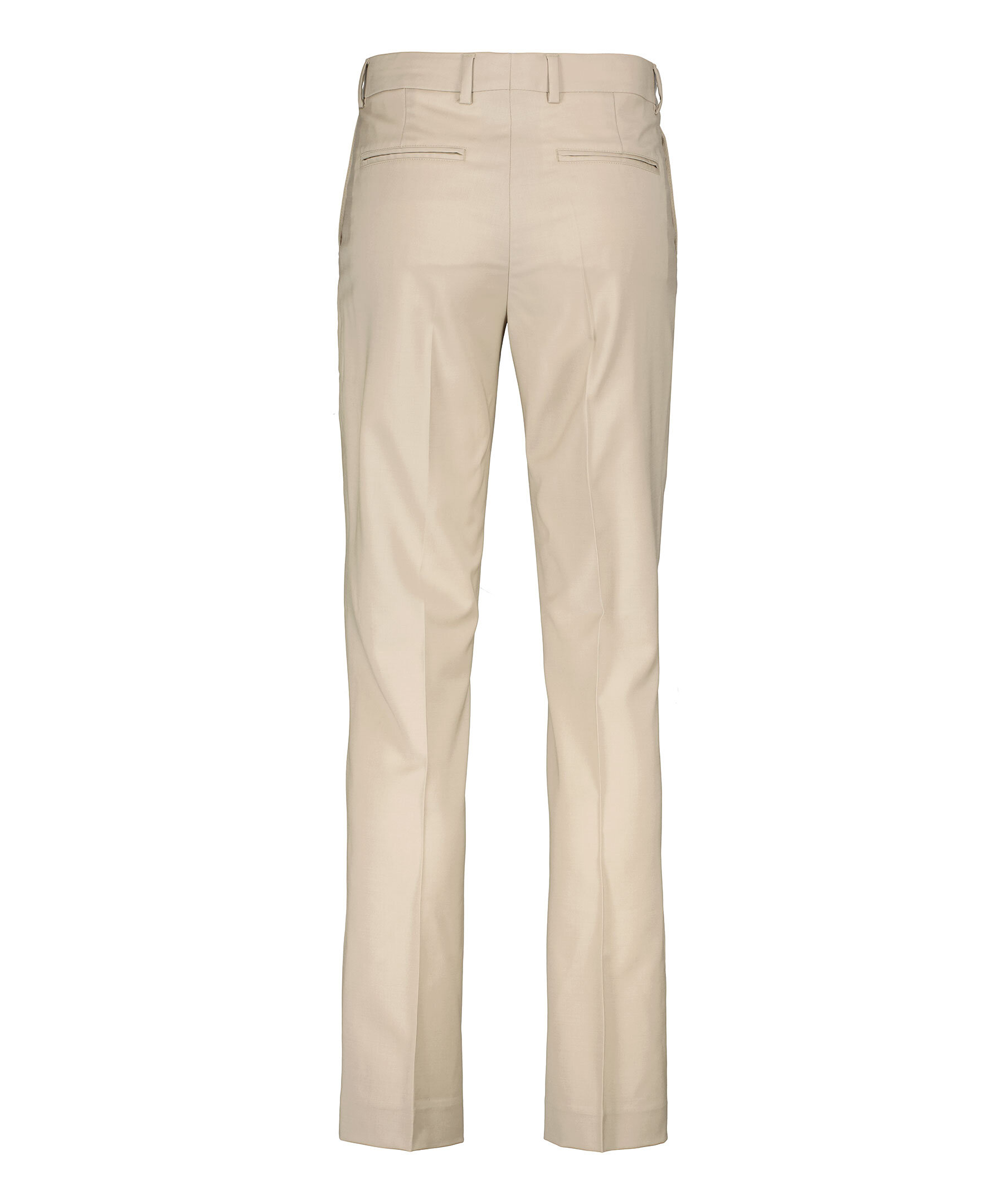 Taupefärgade kostymbyxor från Filippa K. Rak passform med mellanhög midja och pressveck fram. Bälteshällor i midjan. Två sidfickor samt två passpoalfickor. Stängs med hyska och hake. Tillverkade i en stretchig ullblandning.
