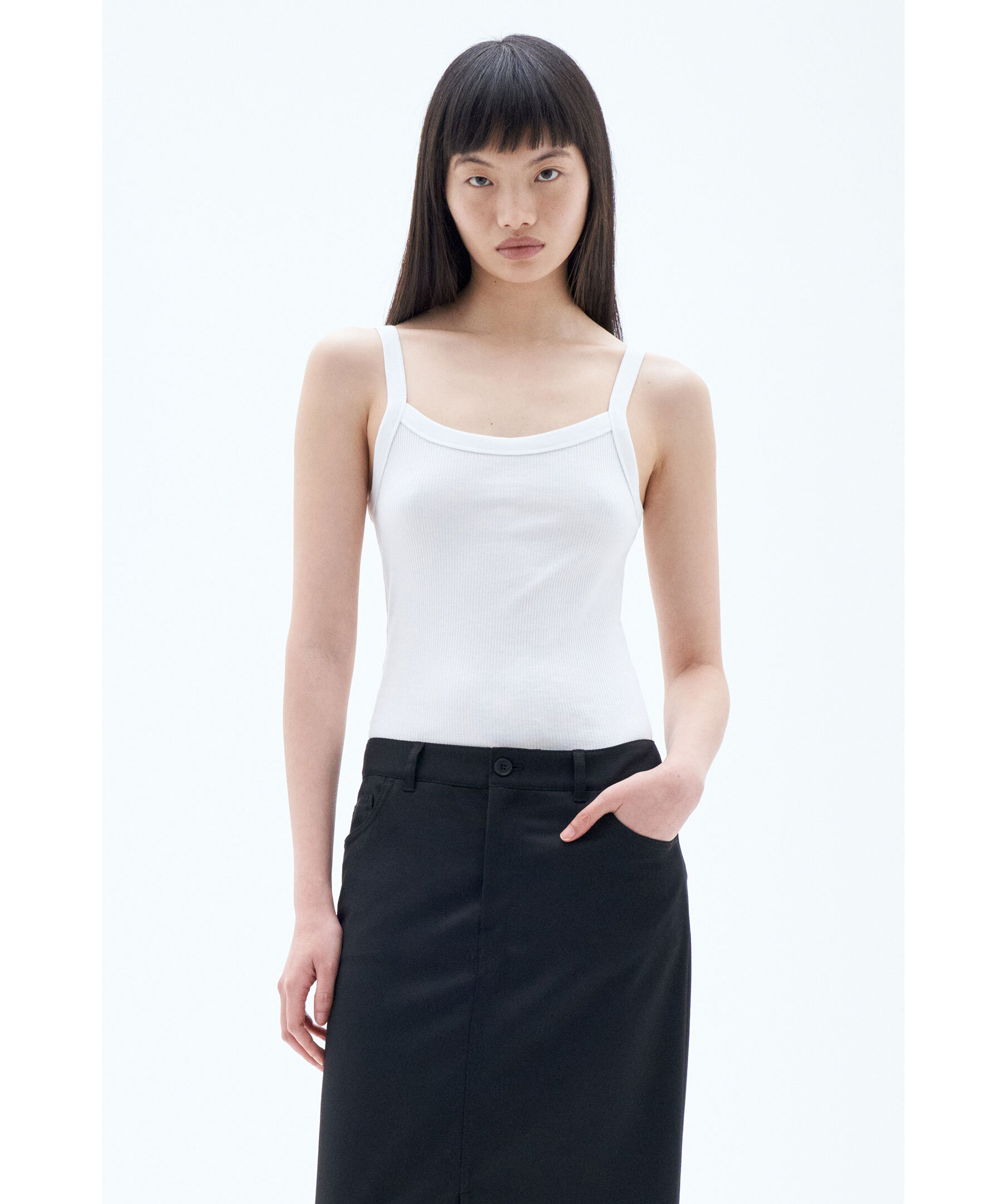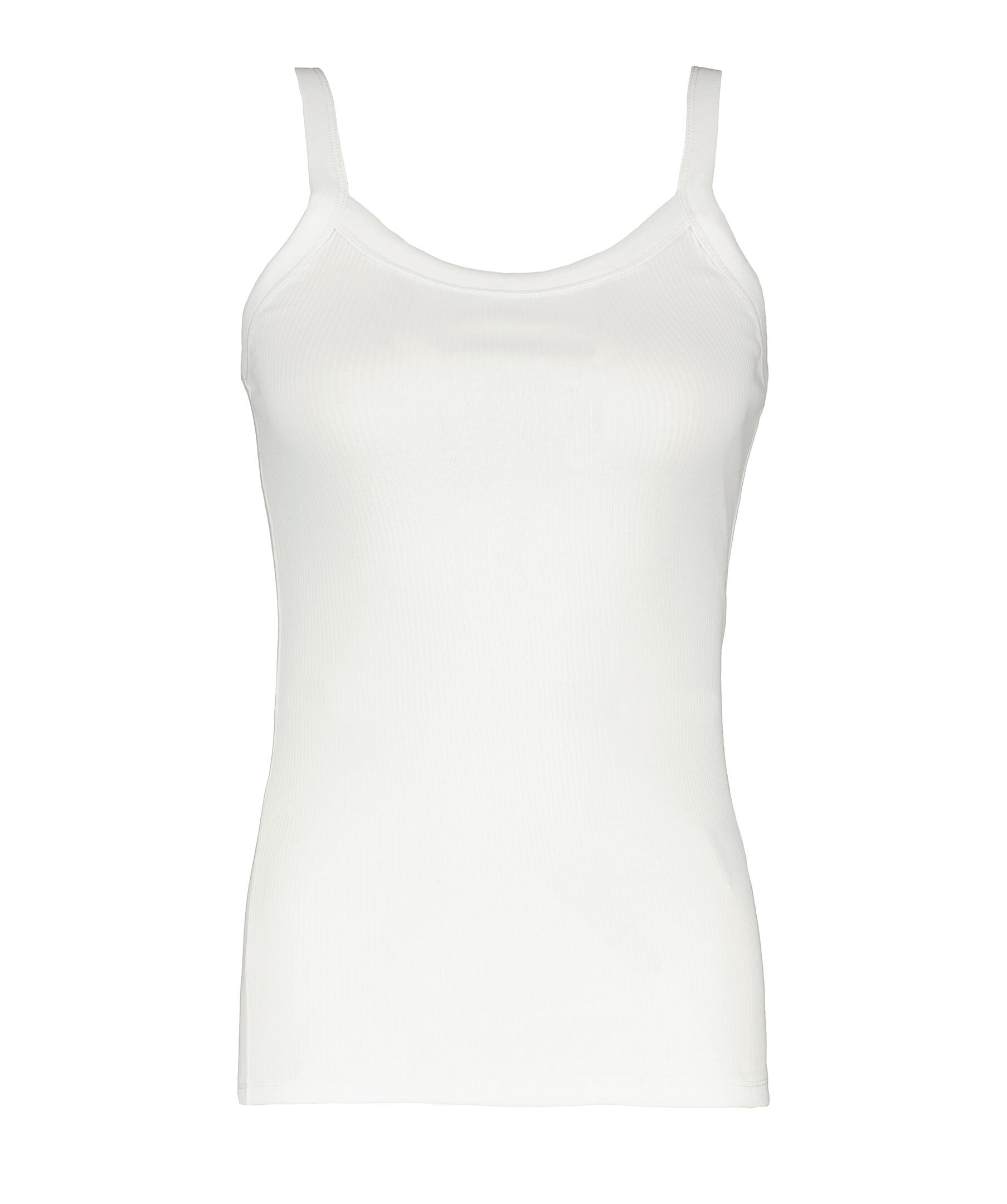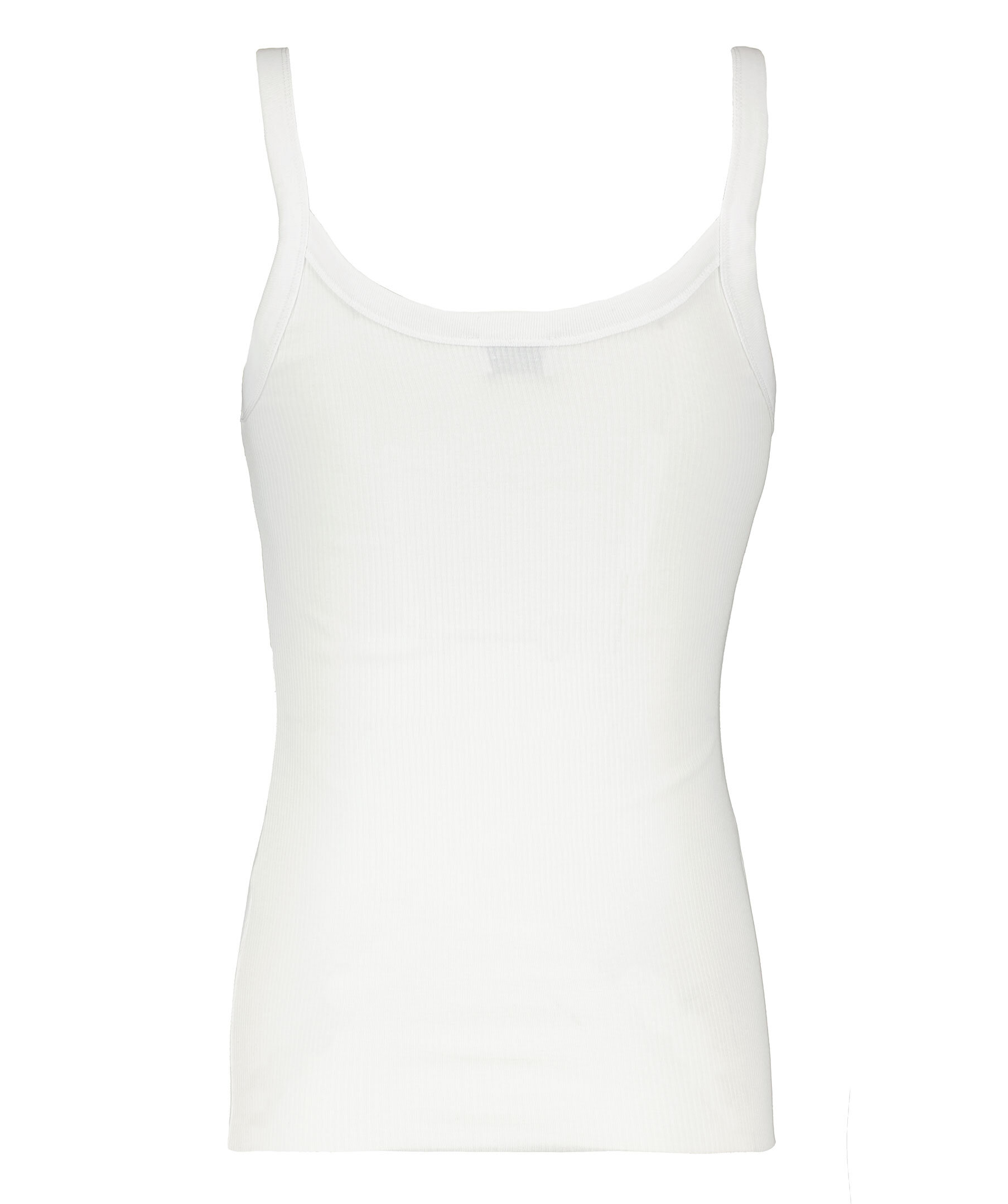 Vitt linne med smal passform från Filippa K. Ribbstickad struktur och smala axelband. Stickad i Portugal. Tillverkad i en bomullsblandning.