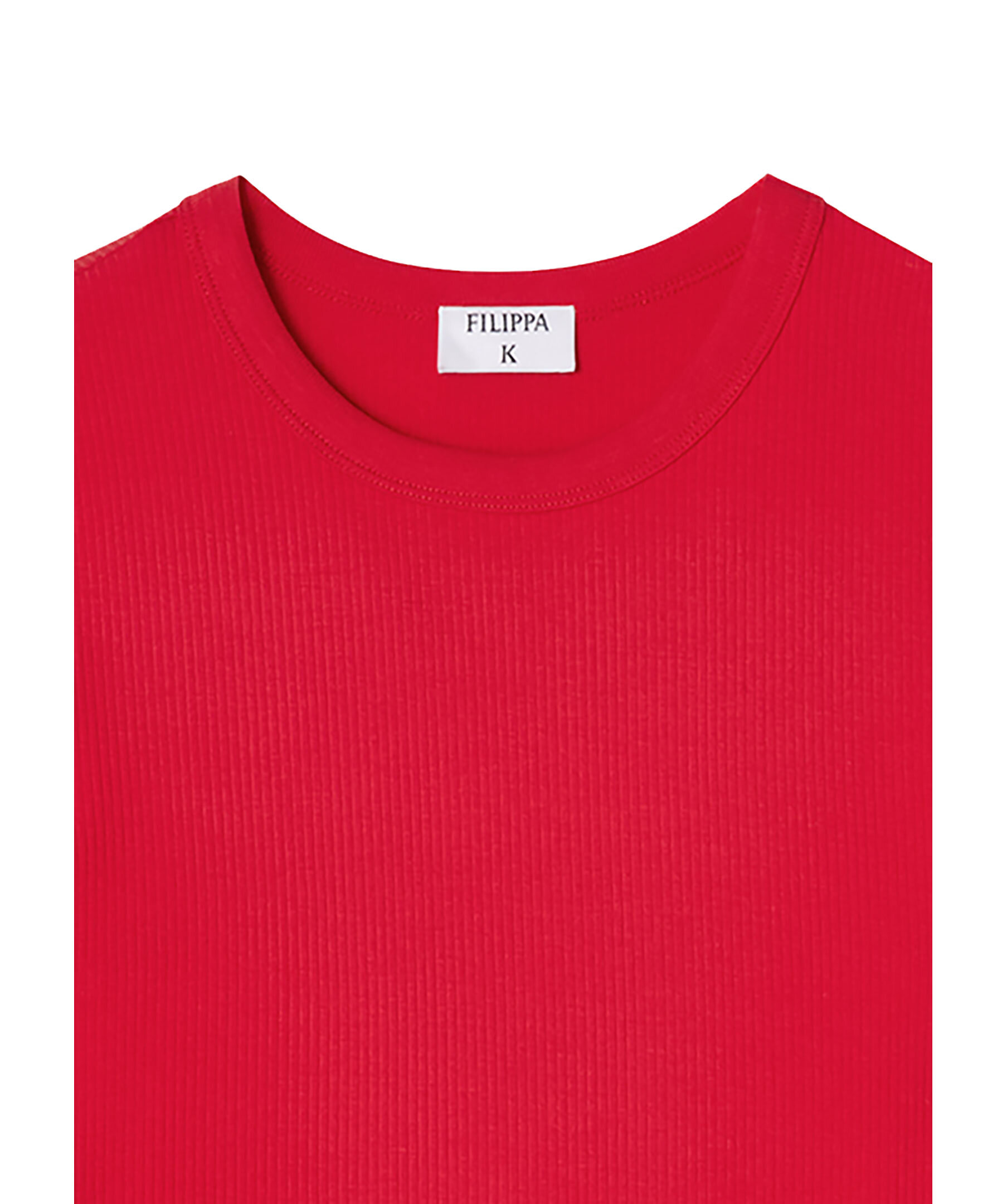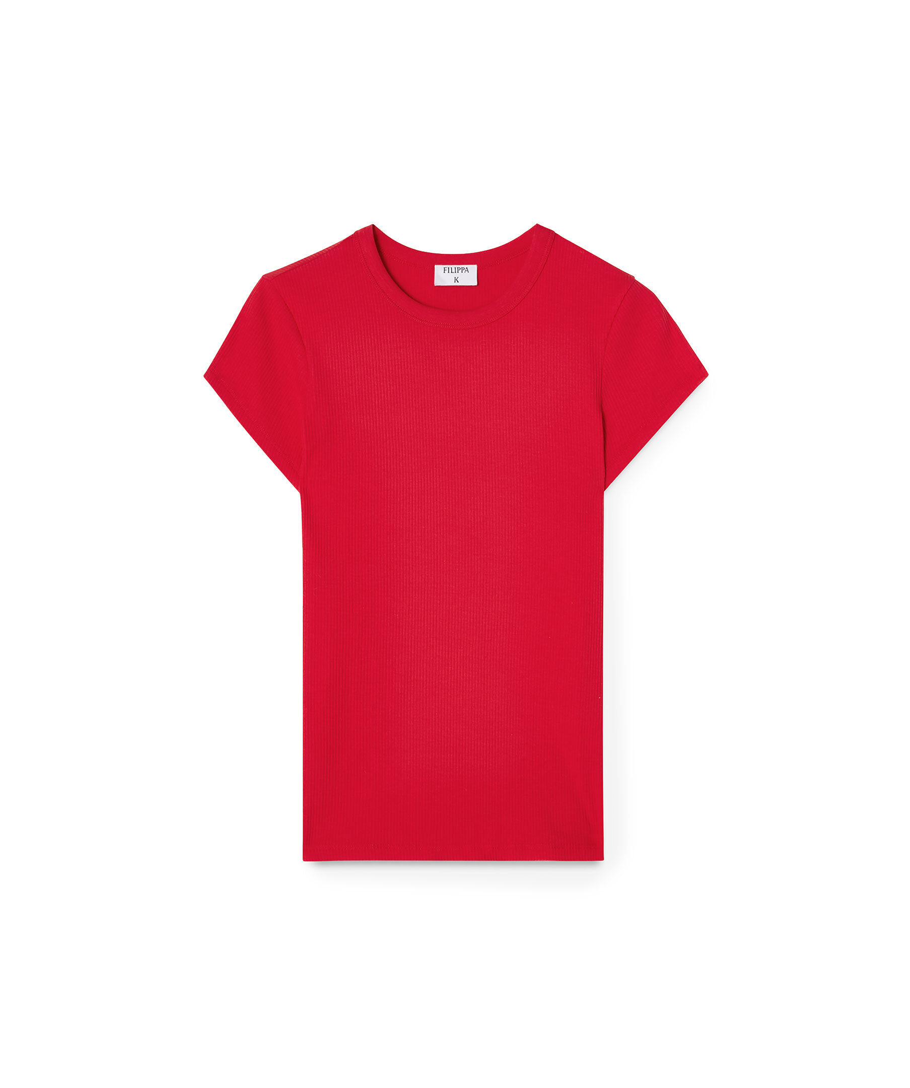 Röd ribbstickad t-shirt från Filippa K. Rundad halsringning, korta ärmar och en smal passform.