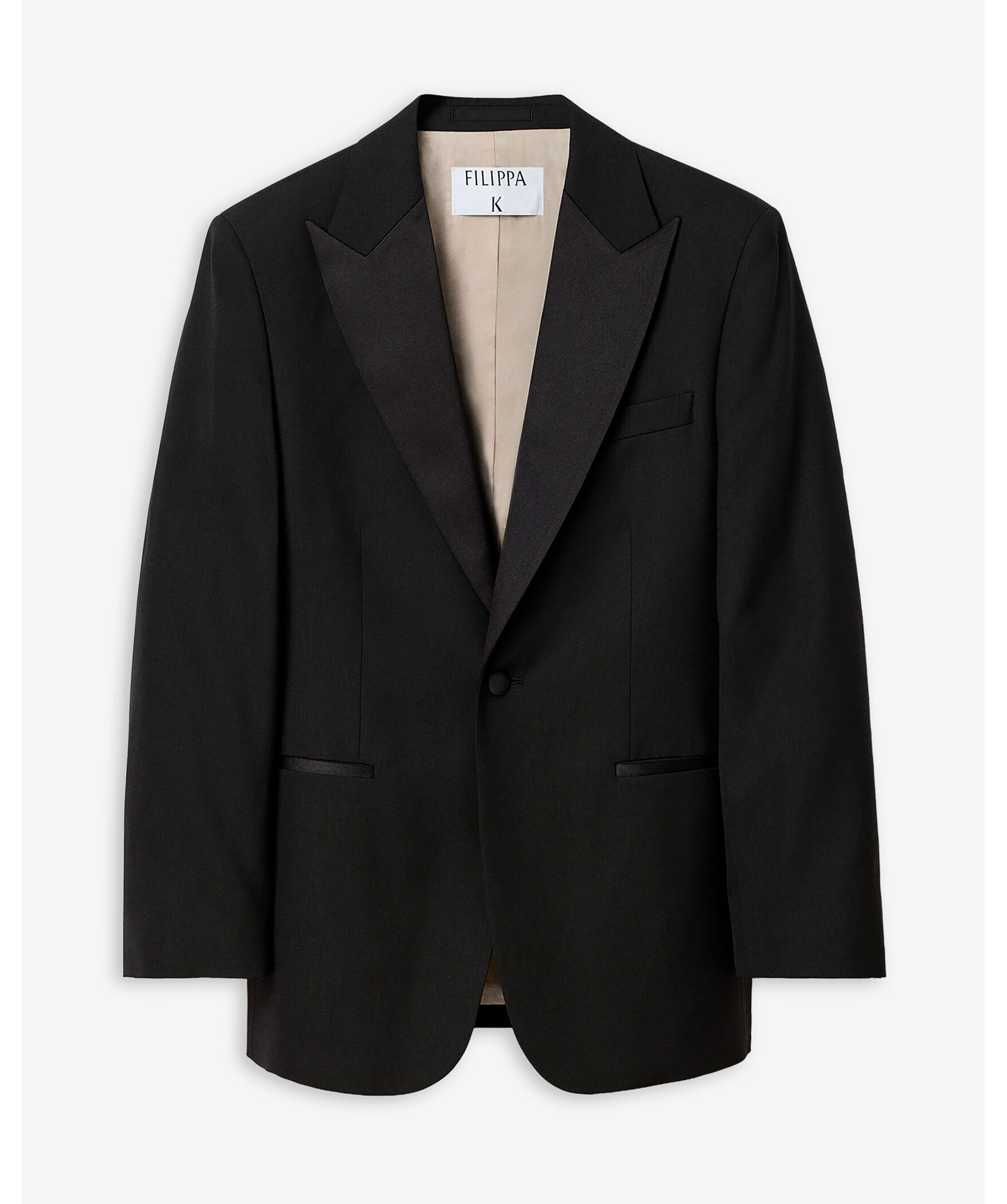 Smokingkavaj från Filippa skräddad med breda axlar och en insydd midja, vilket skapar vår karakteristiska timglassilhuett. Den är designad med smokinginspirerade detaljer och tillverkad i helt fodrad satintwill.