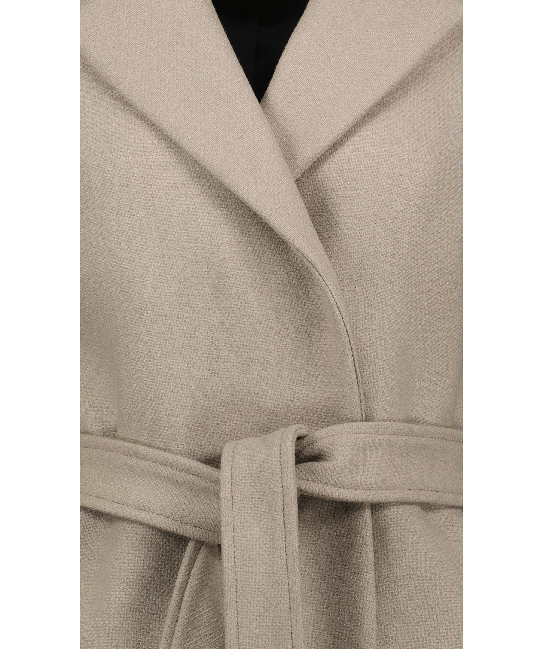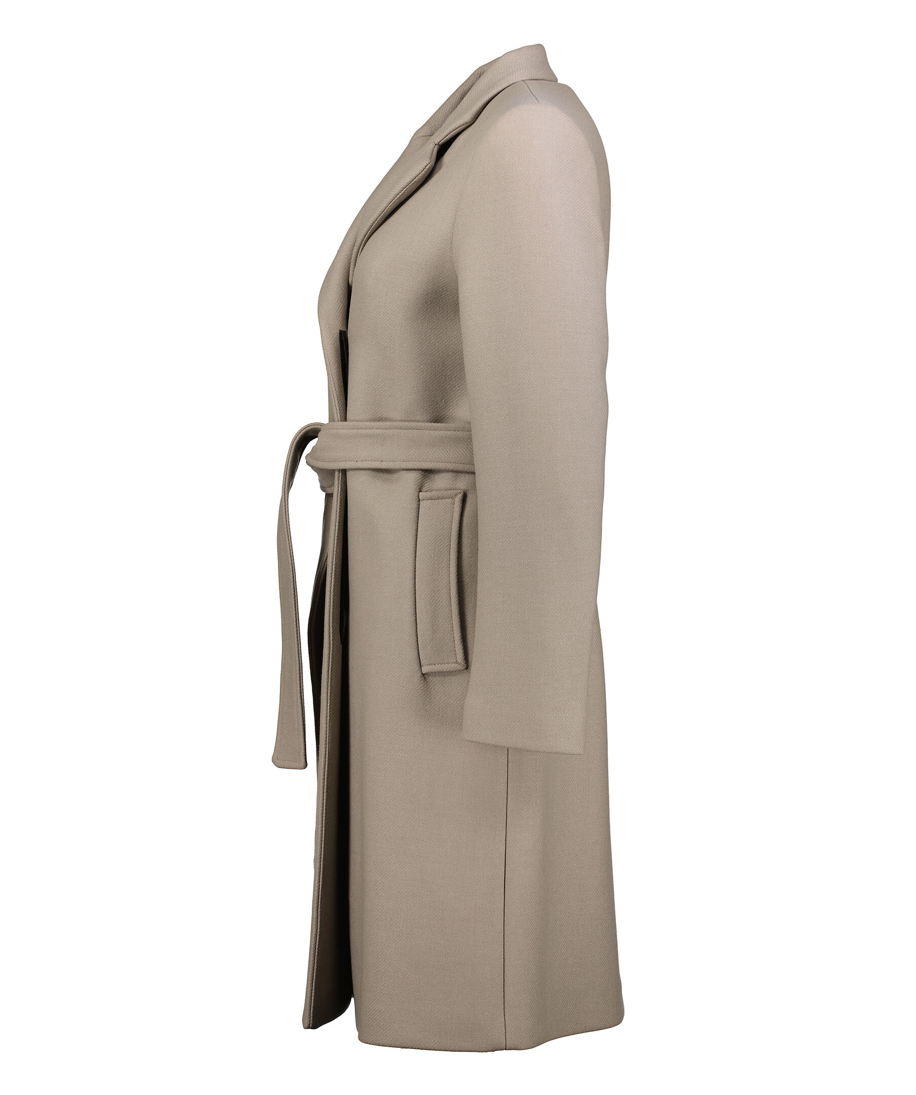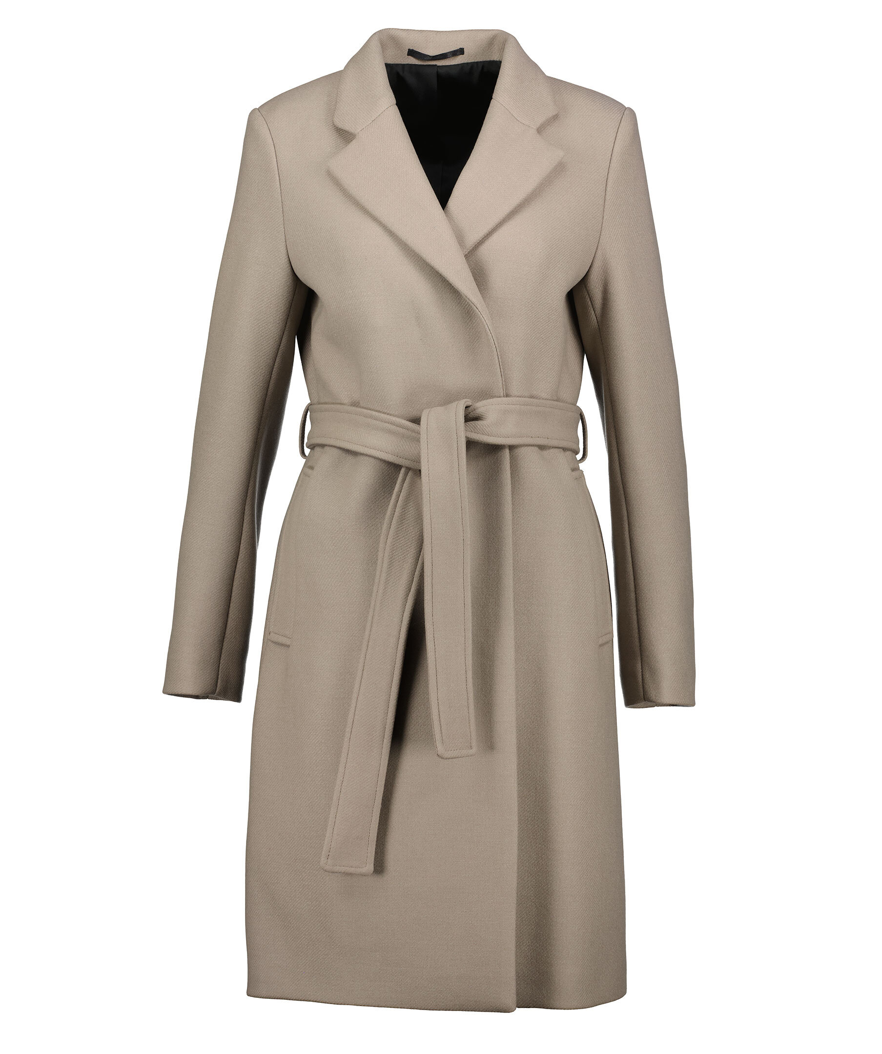 Kappa i en kall brun färg från Filippa K. Kappan stängs med knappar och har knytband i midjan samt två sidfickor och sprund baktill. Tillverkad i en ullblandning.
