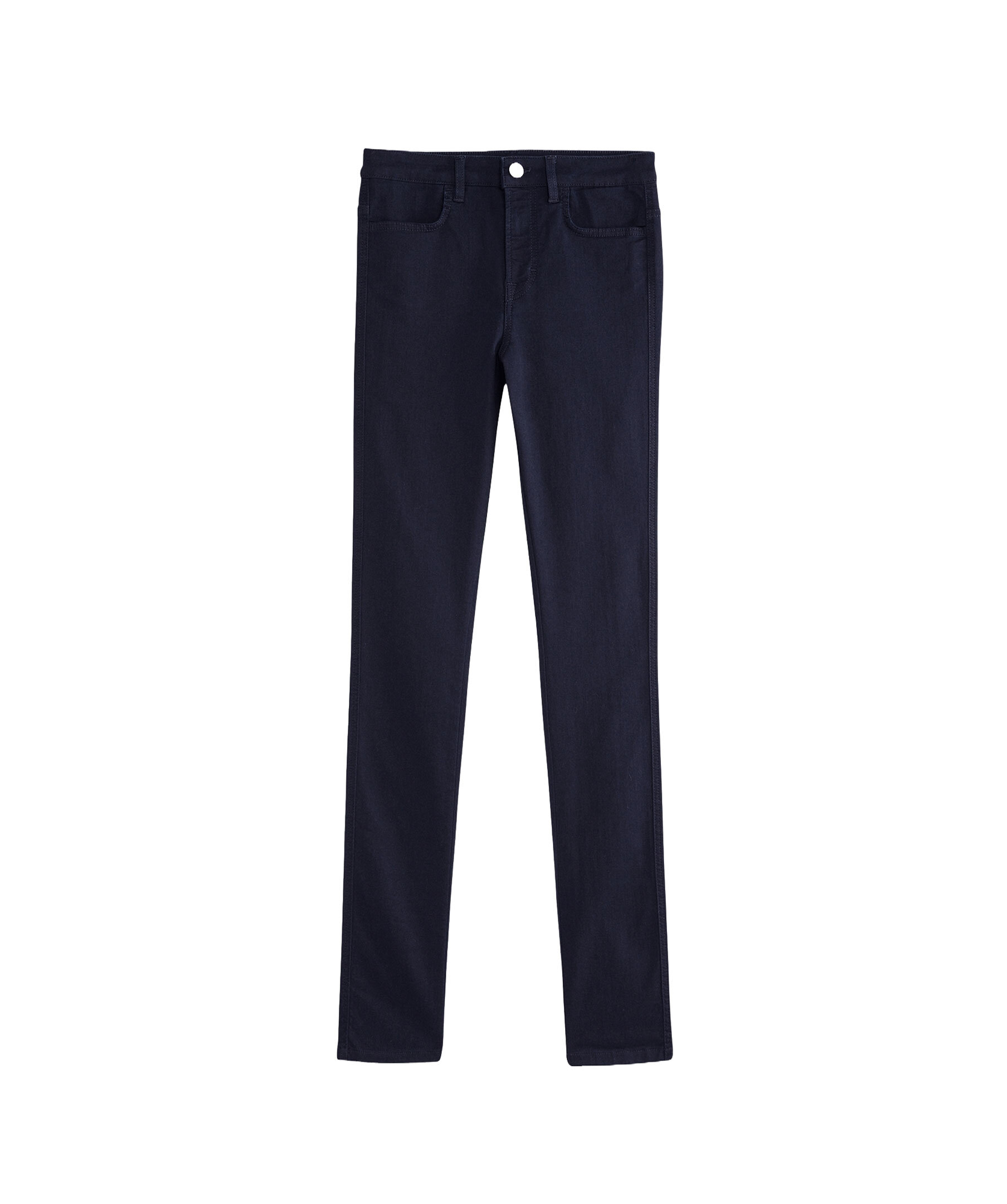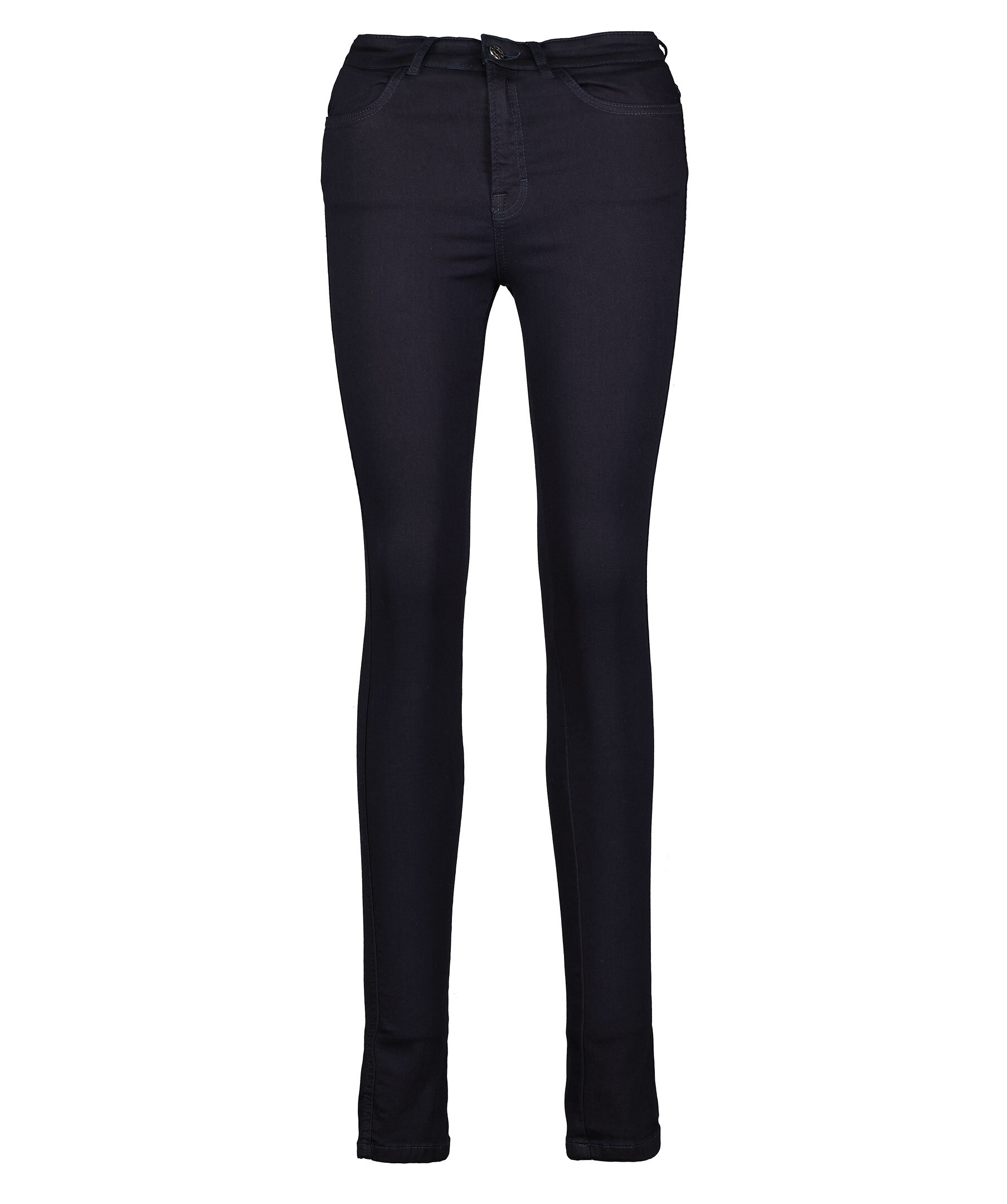 Mörkblå jeans från Filippa K. Smala ben, hög midja samt fyra fickor. Patch med logotyp baktill.