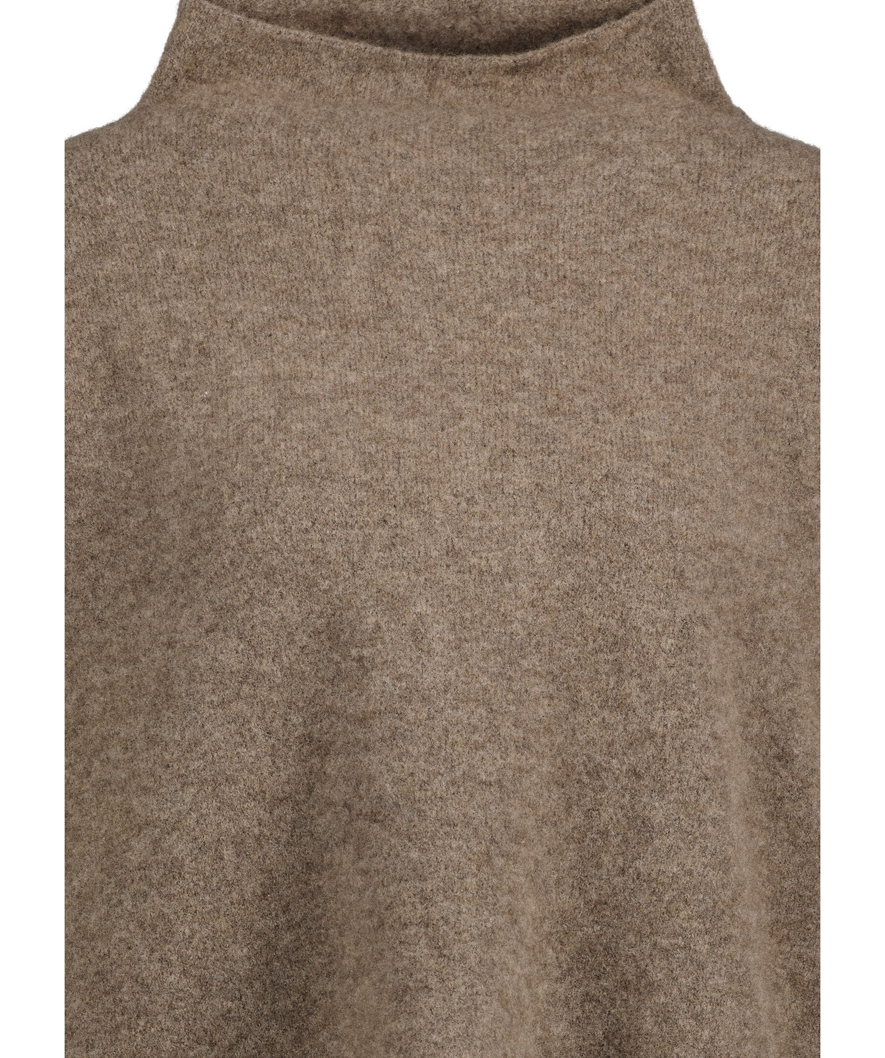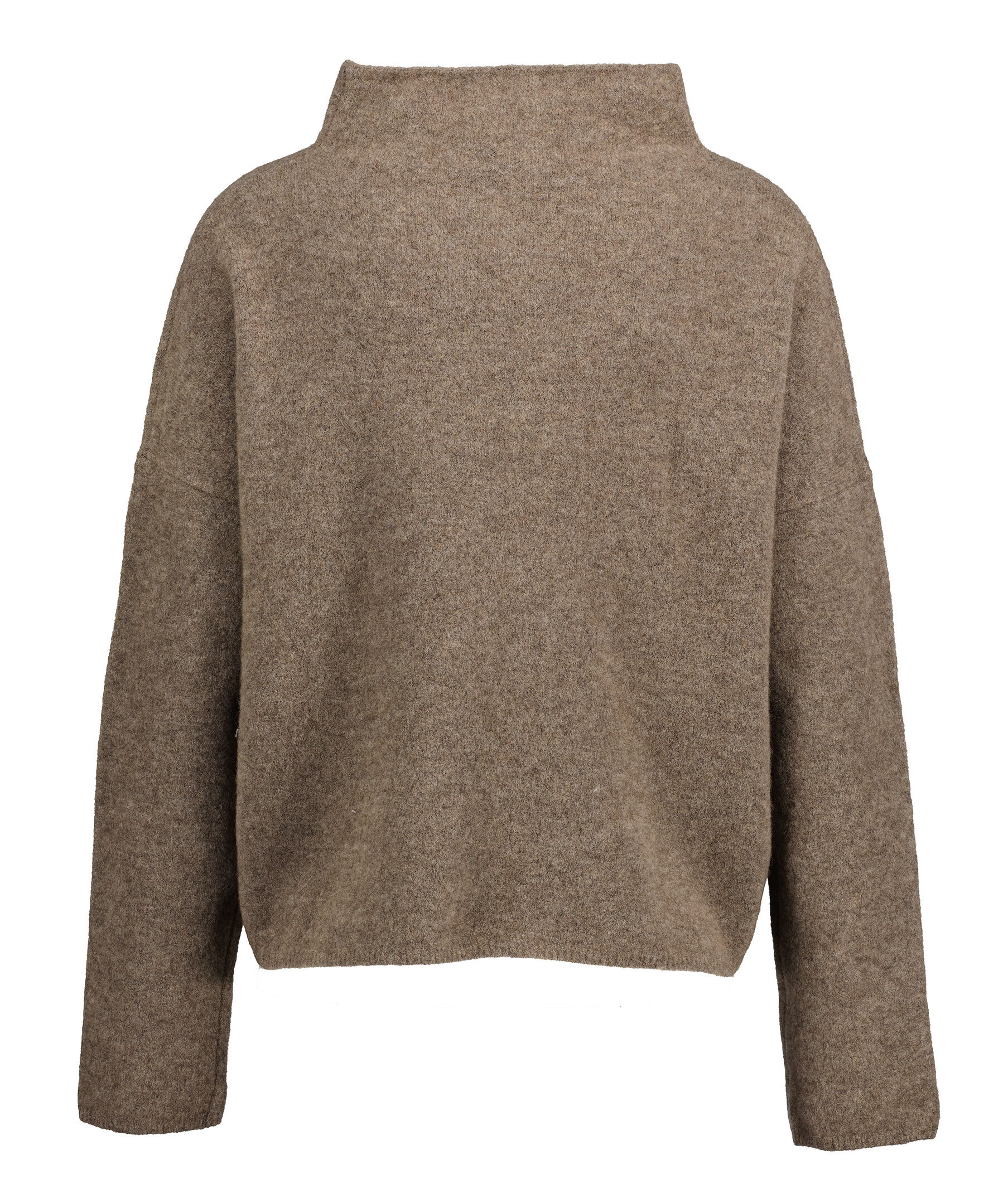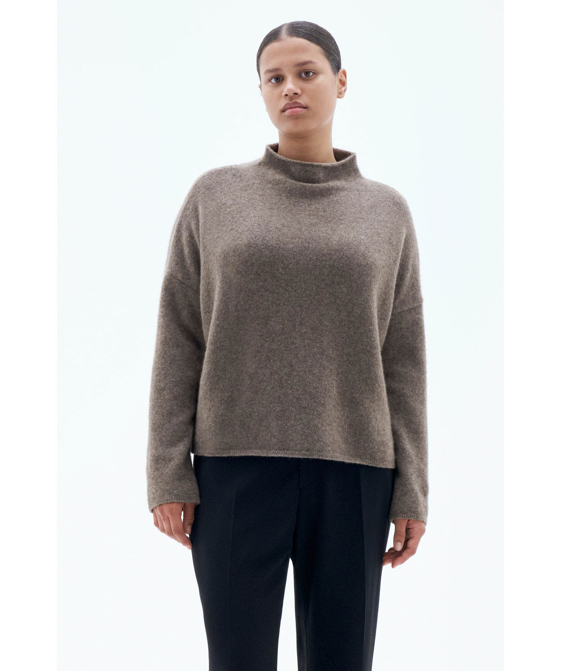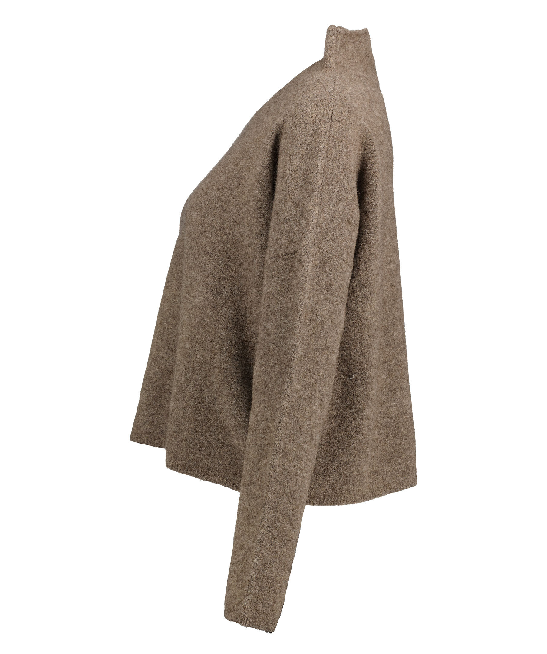 Brunmelerad stickad tröja från Filippa K. Tröjan har en hög, bred hals, droppade axlar och en vid passform. Tillverkad i en ullblandning.