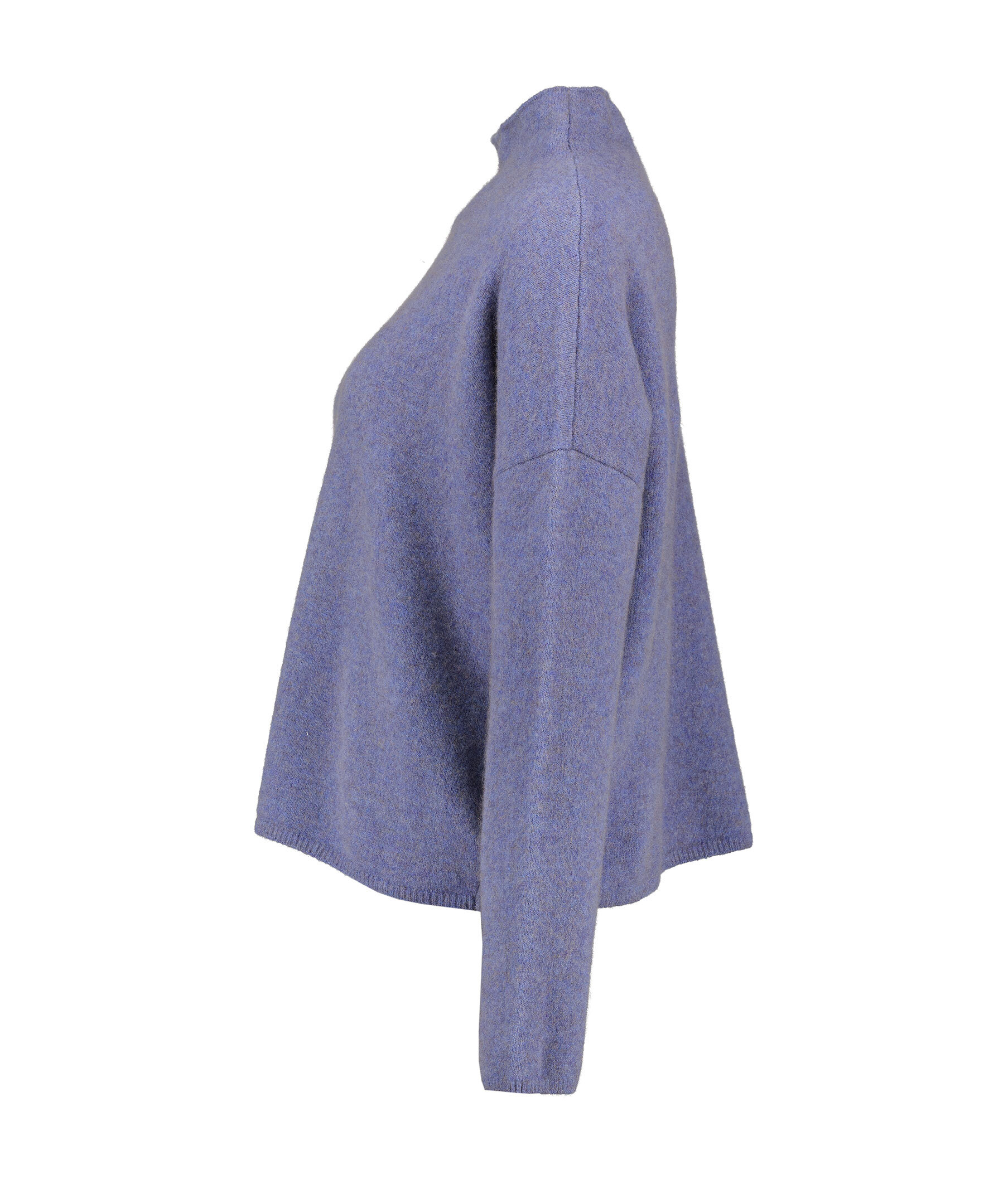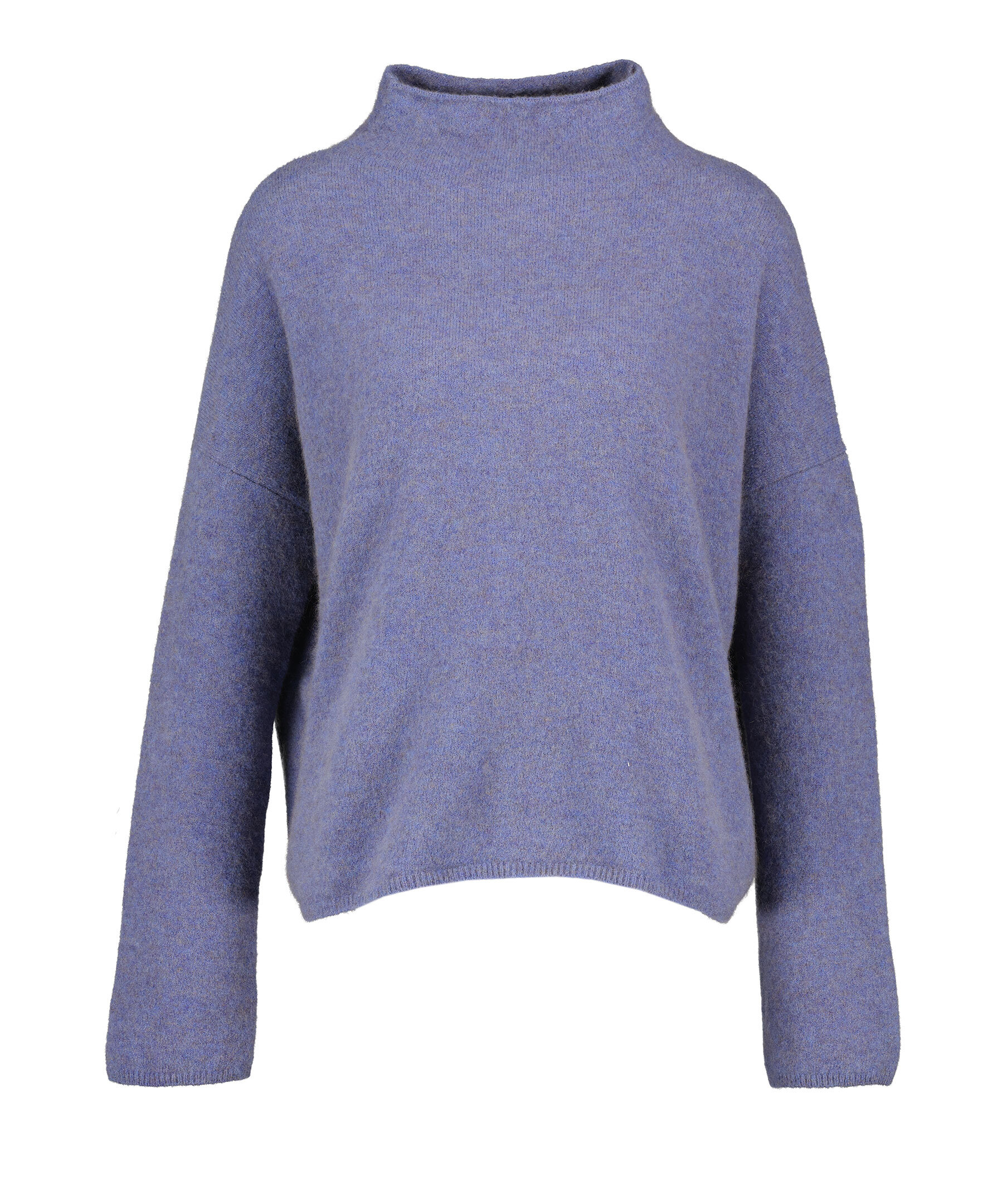 Duvblå stickad tröja från Filippa K. Hög halsringning, droppade axlar och en avslappnad passform. Gjord i en fin ullblandning.