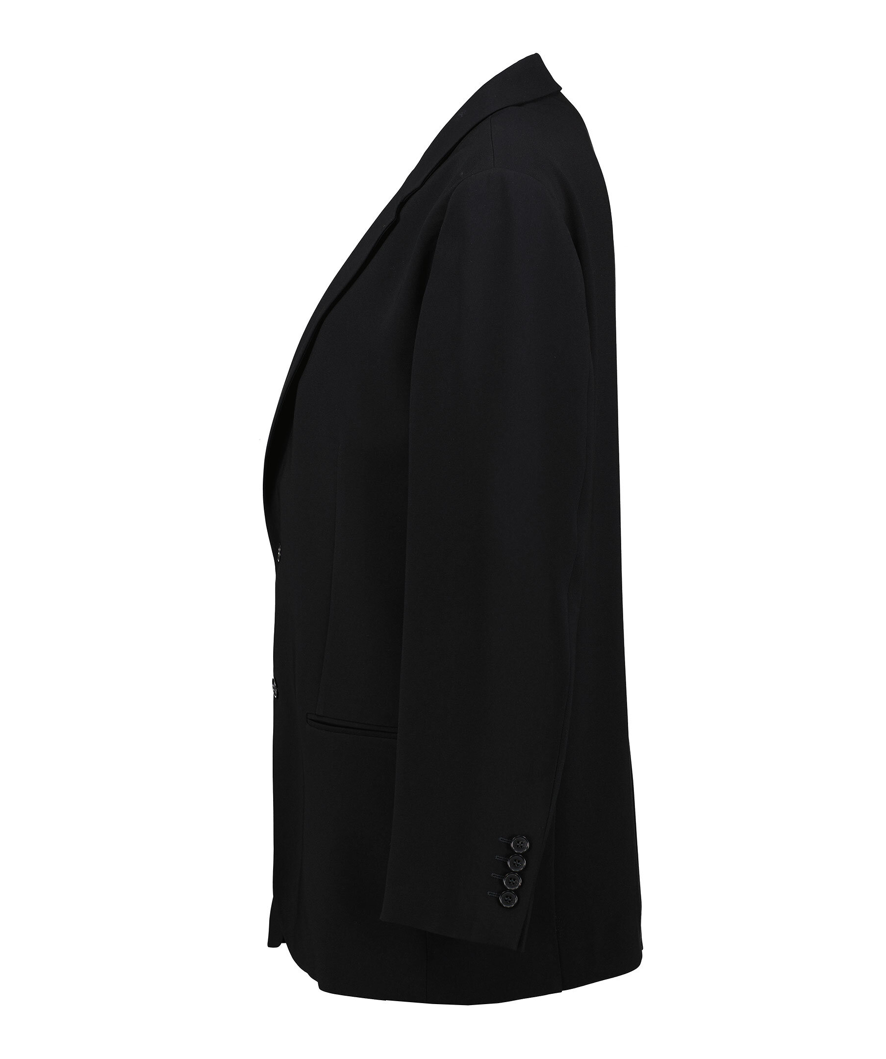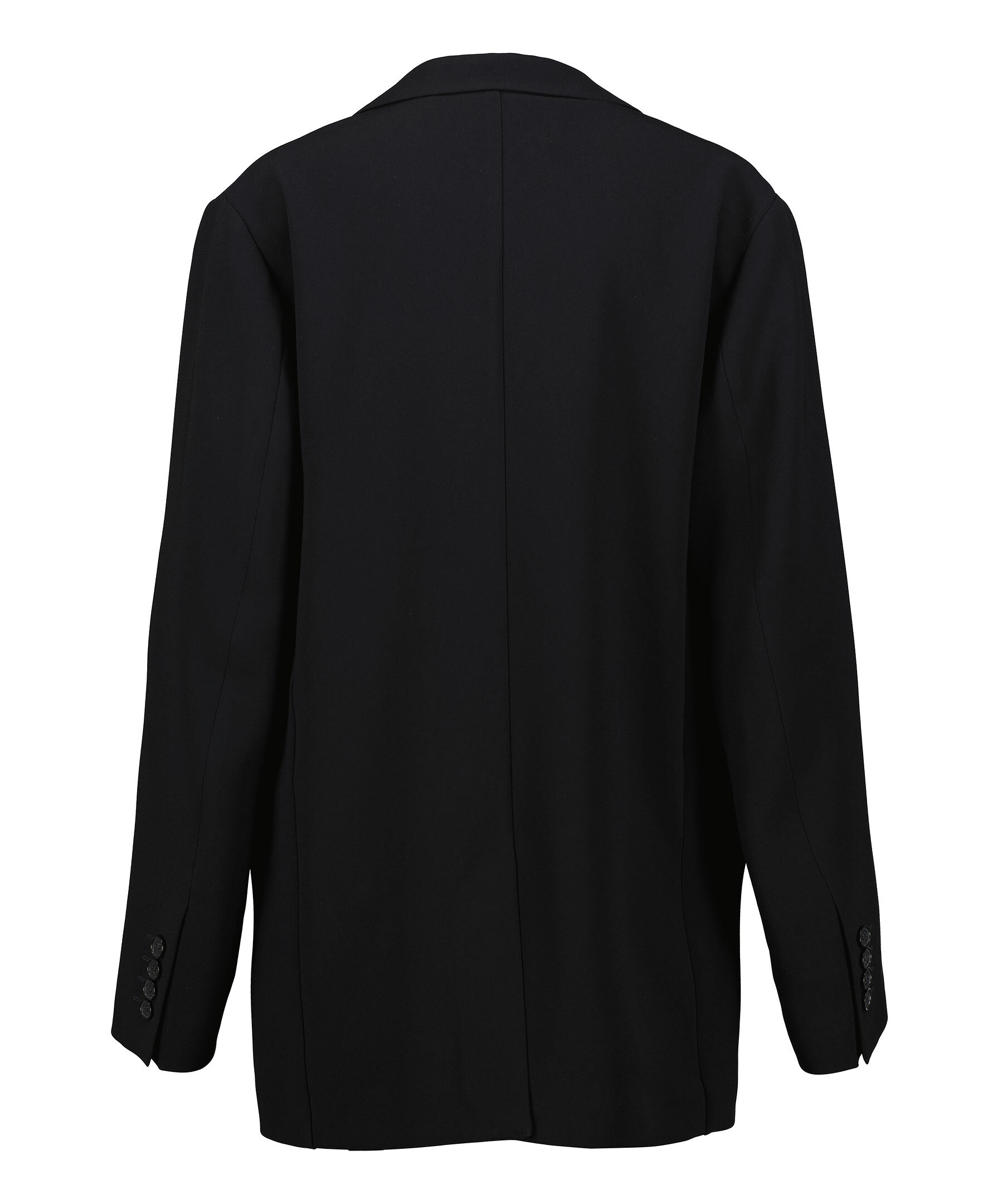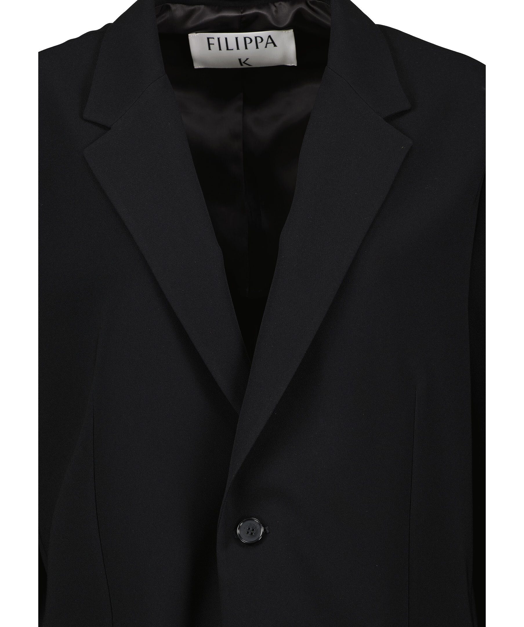 Svart, enkelknäppt kavaj från Filippa K. Två fickor framtill, innerficka. Avslappnad passform. Sprund baktill. Knappar vid ärmslut. Halvfodrad.
