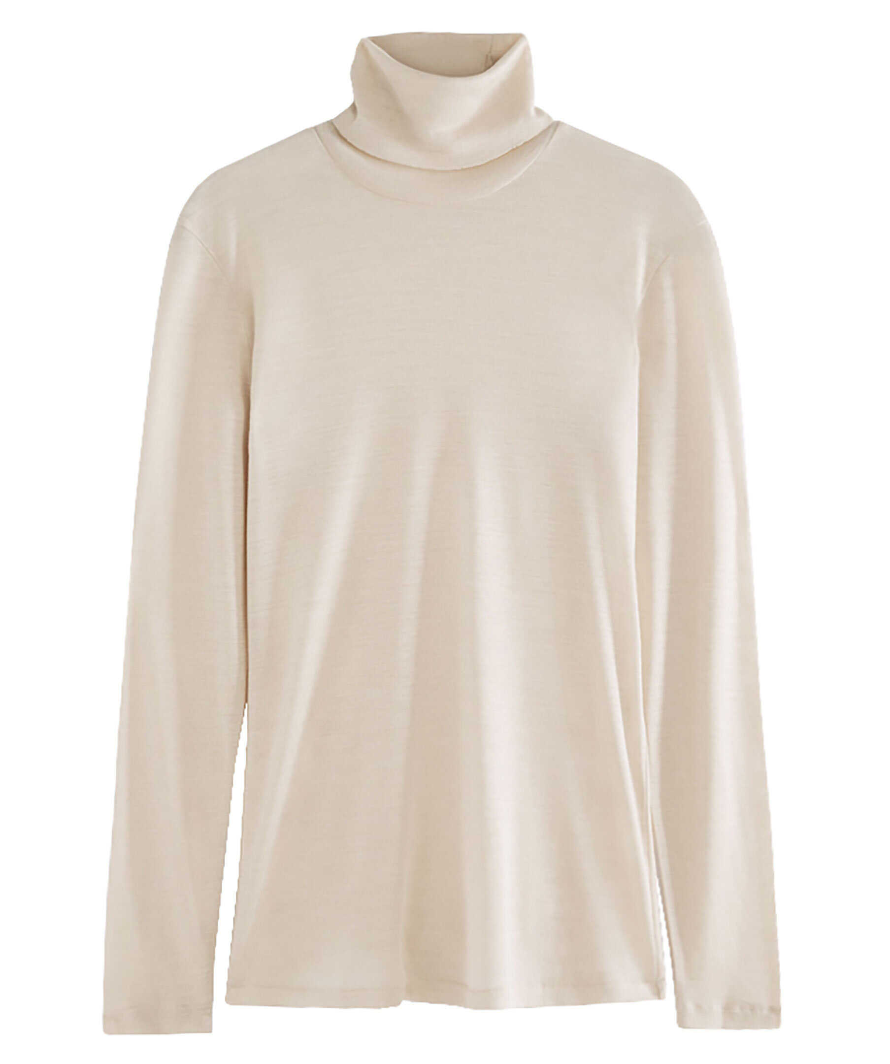 Ljusbeige, finstickad polotröja med smal passform från Filippa K. Tillverkad i kashmir och Tencel. Designad med en hög ribbad krage och rå fåll nedtill. Ennålssömnad vid fåll och ärmmudd.