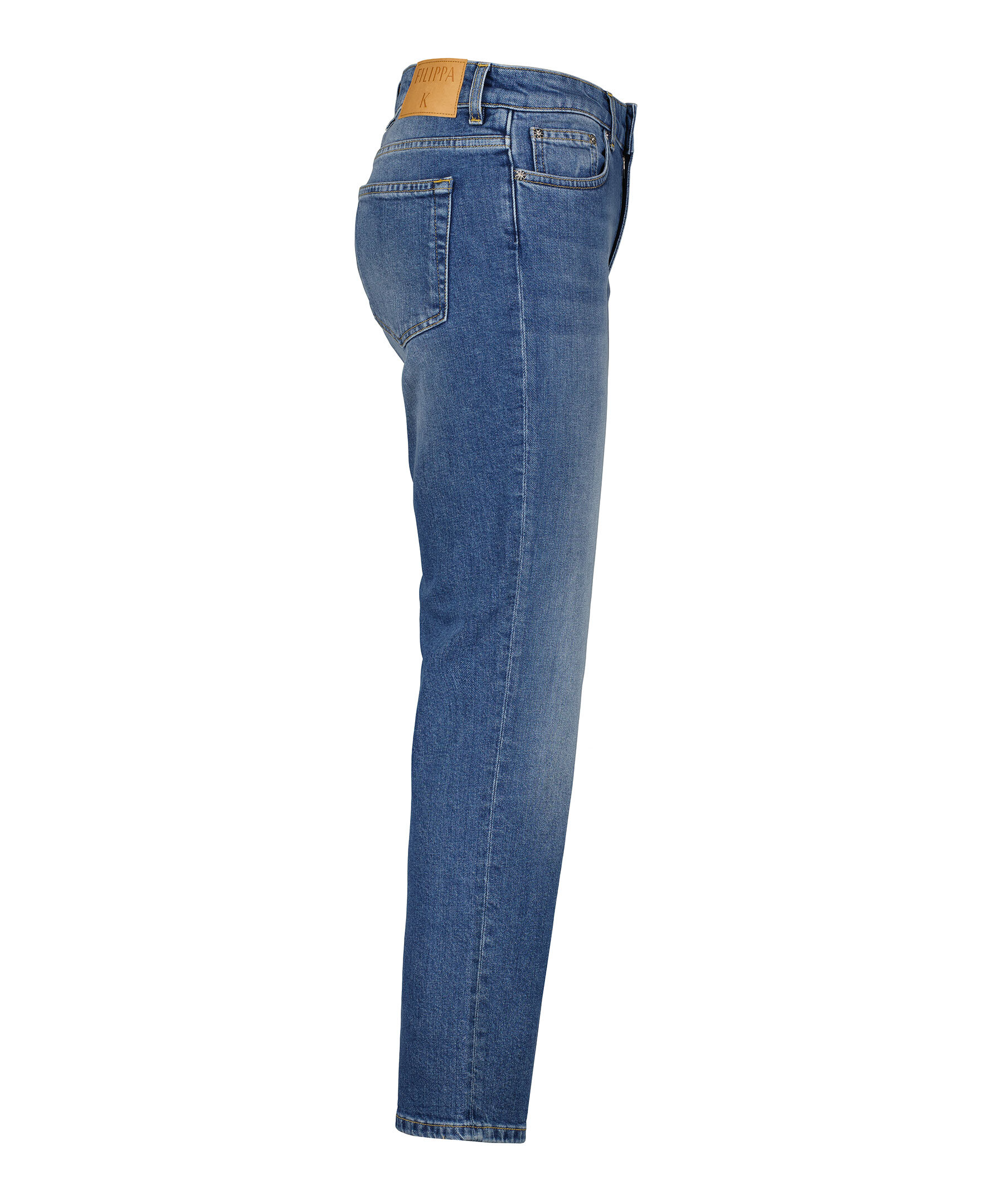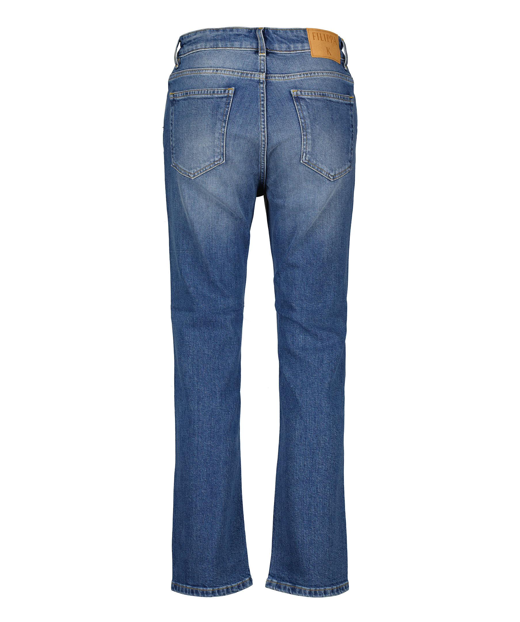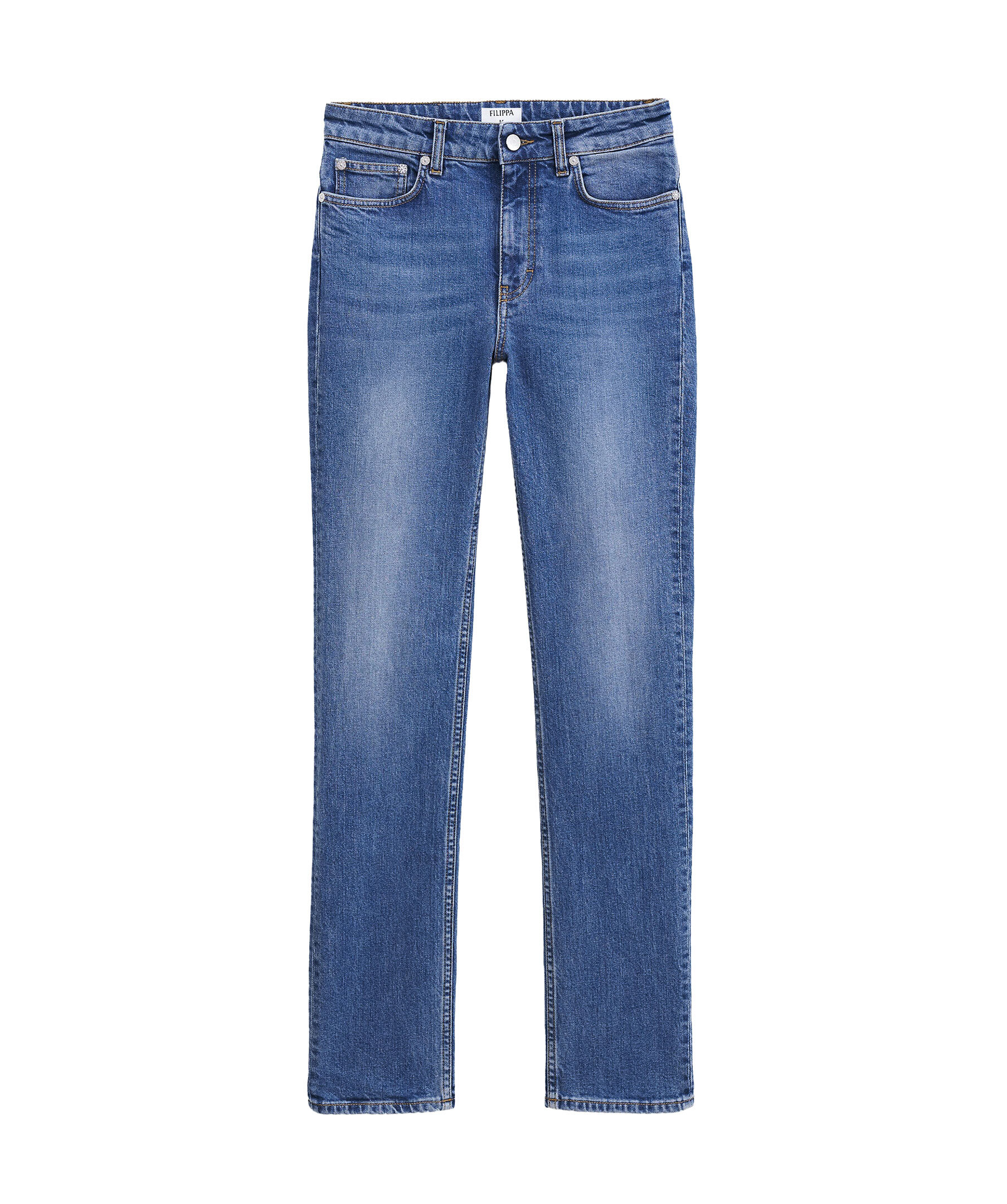 Mellanblåa jeans från Filippa K. Jeansen har en medelhög midja med bälteshällor, fem fickor samt logotyp baktill på linningen. Tillverkade i en stretchig bomullsblandning.