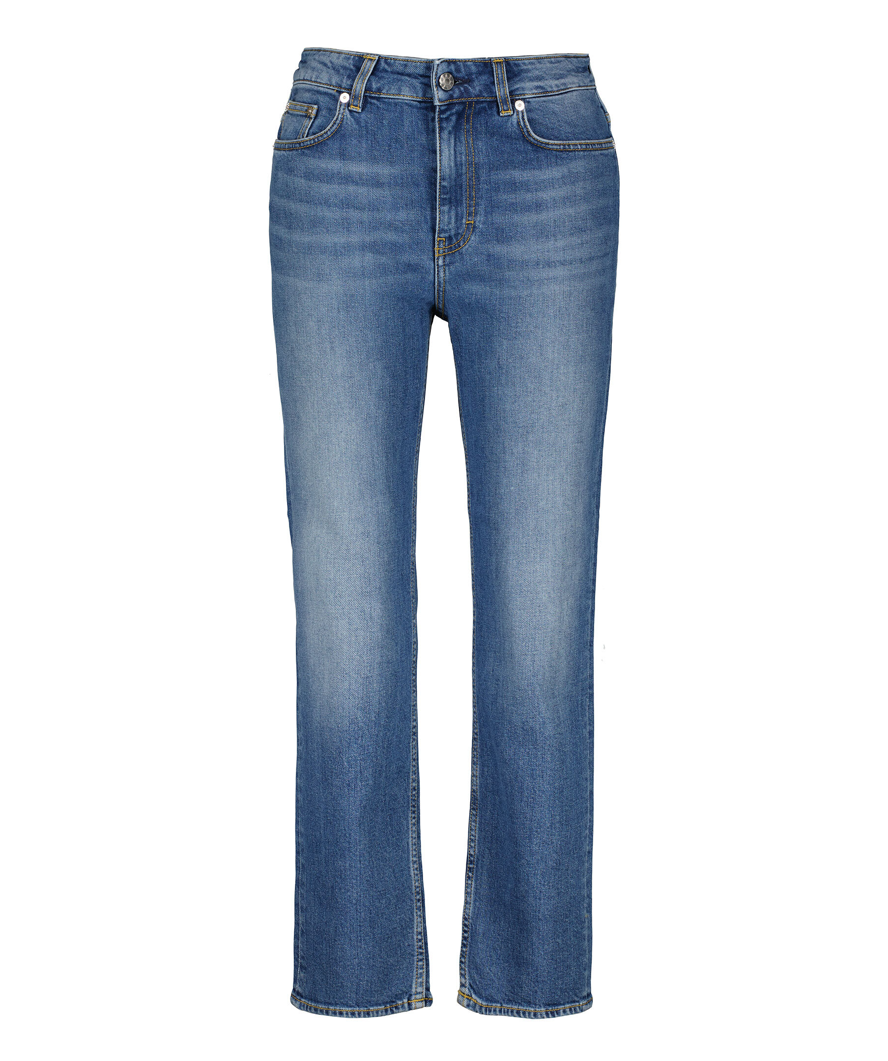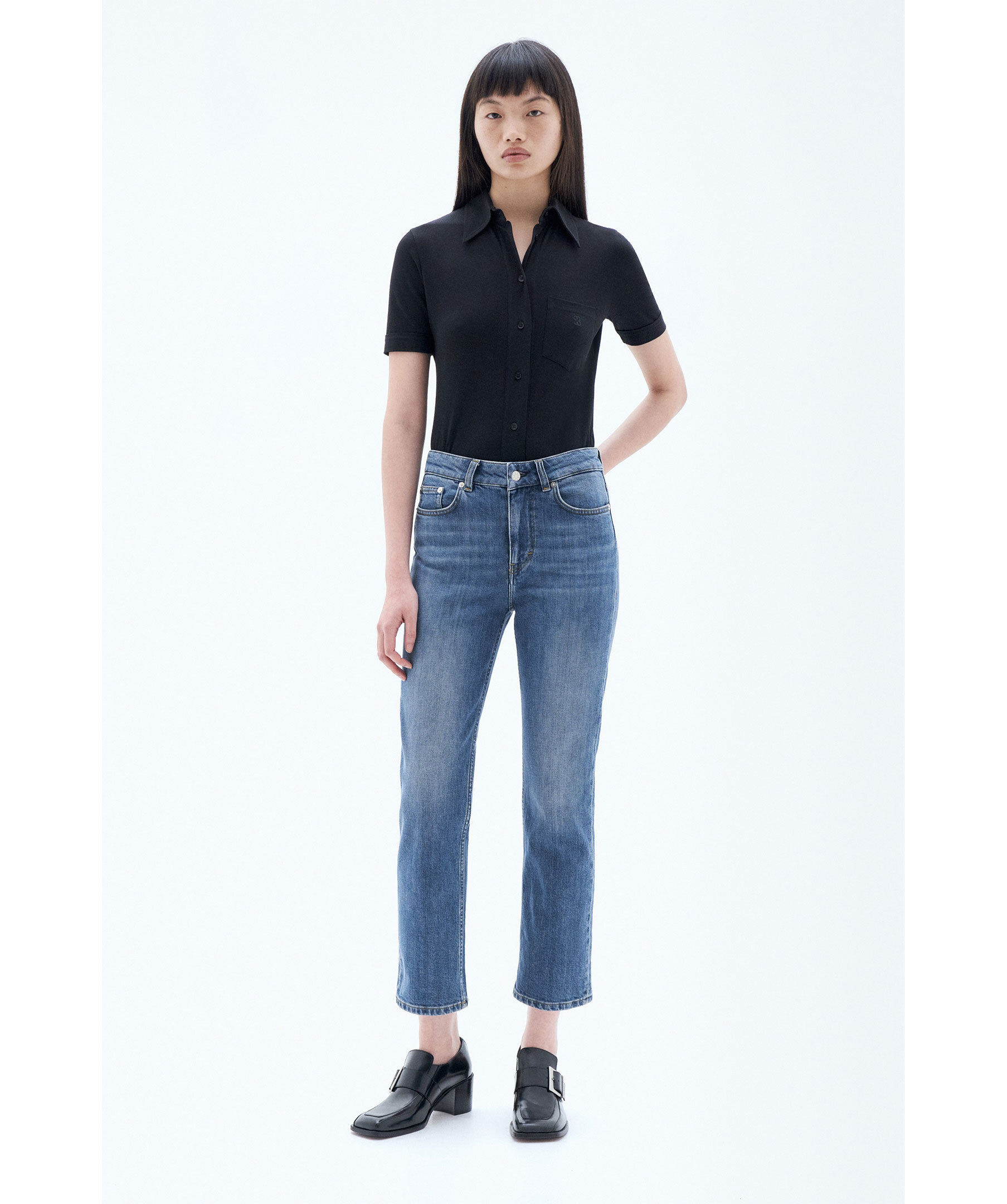 Blåa jeans från Filippa K i en croppad modell. Medelhög midja med smal passform. Byxorna har fem fickor och bälteshällor i midjan. Tillverkade i ekologisk bomull med stretch.
