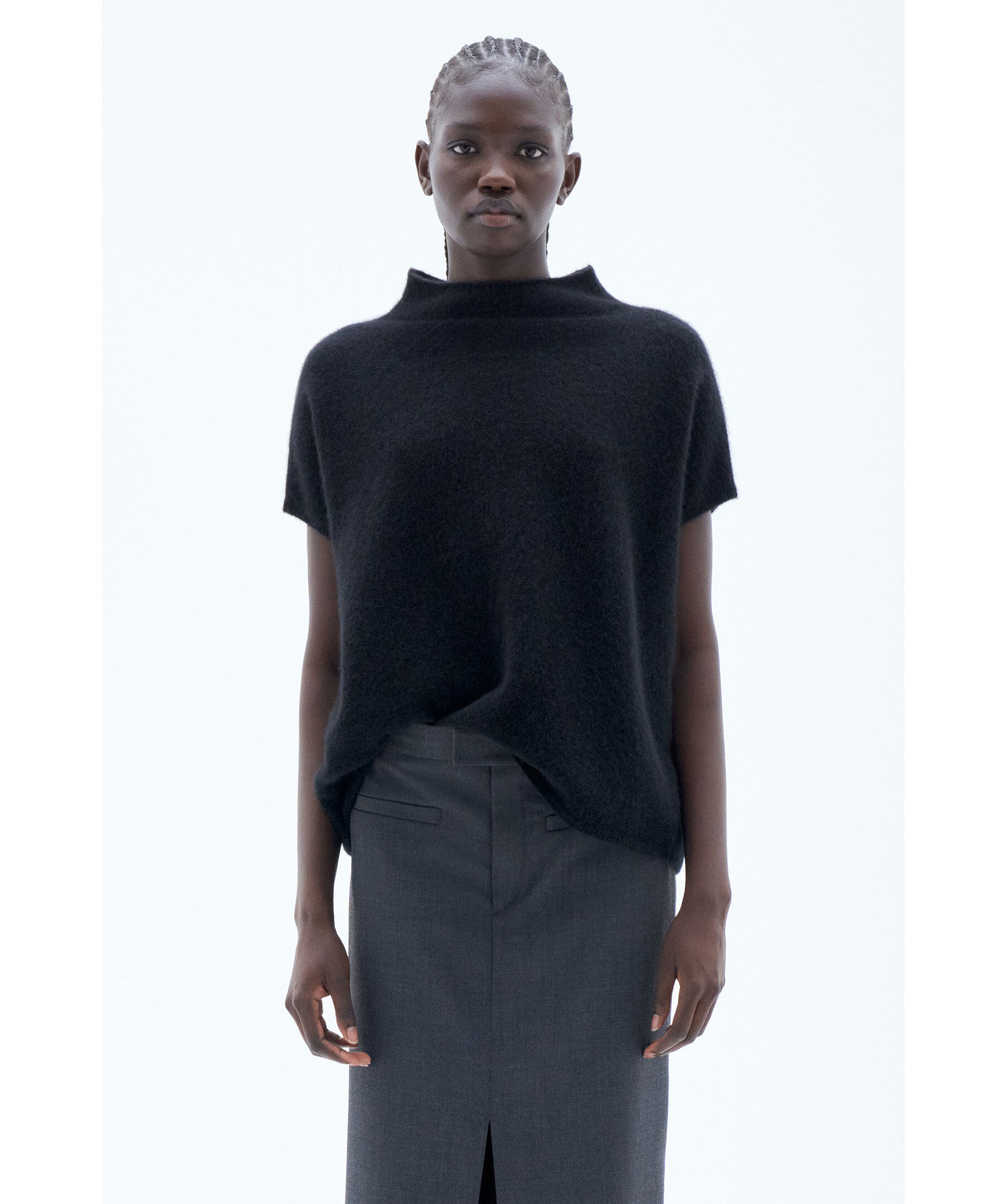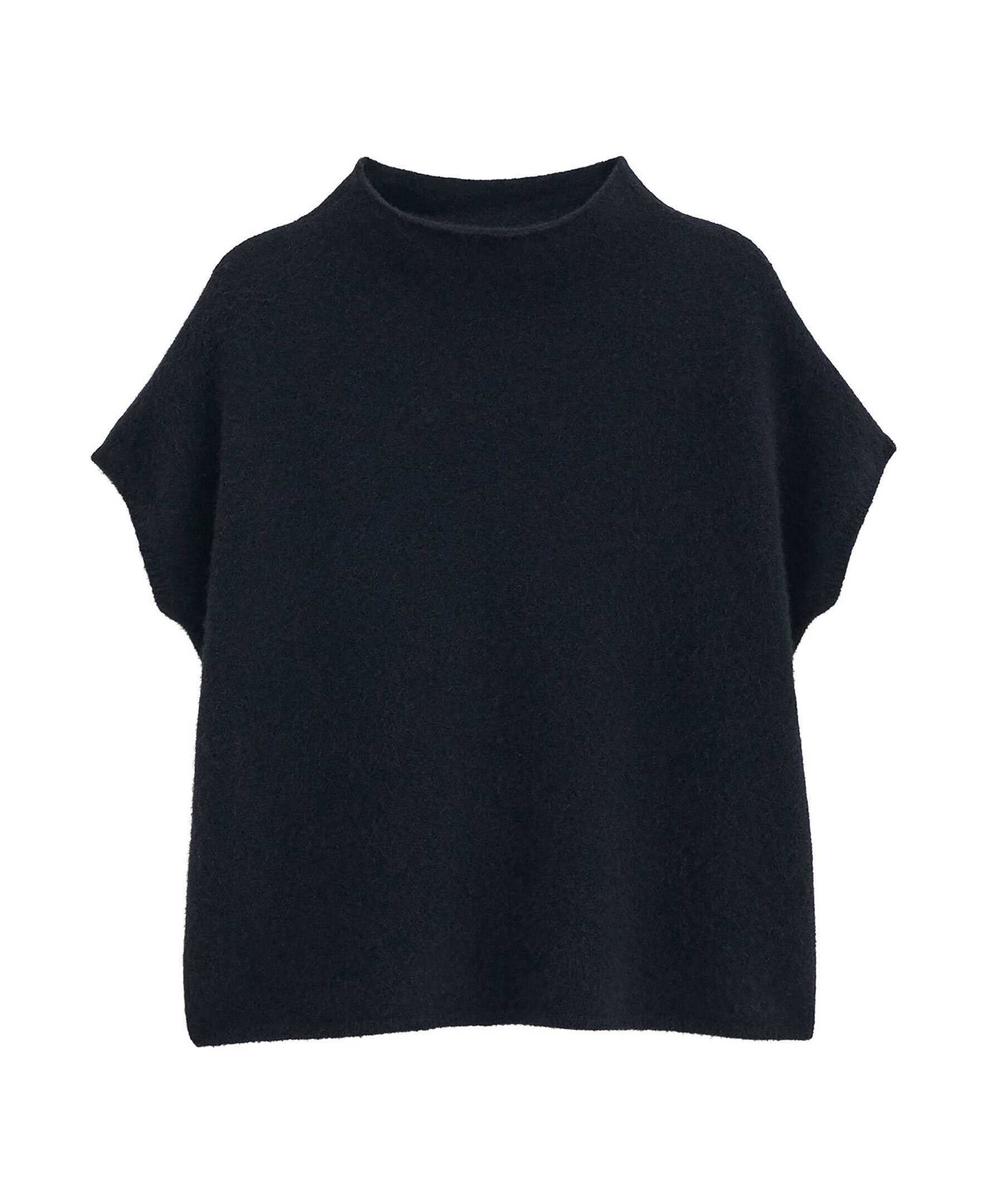 Svart, stickad topp från Filippa K. Toppen har korta ärmar med droppade axlar och ribbstickning i halsringning och ärmslut. Tillverkad i en ullblandning.