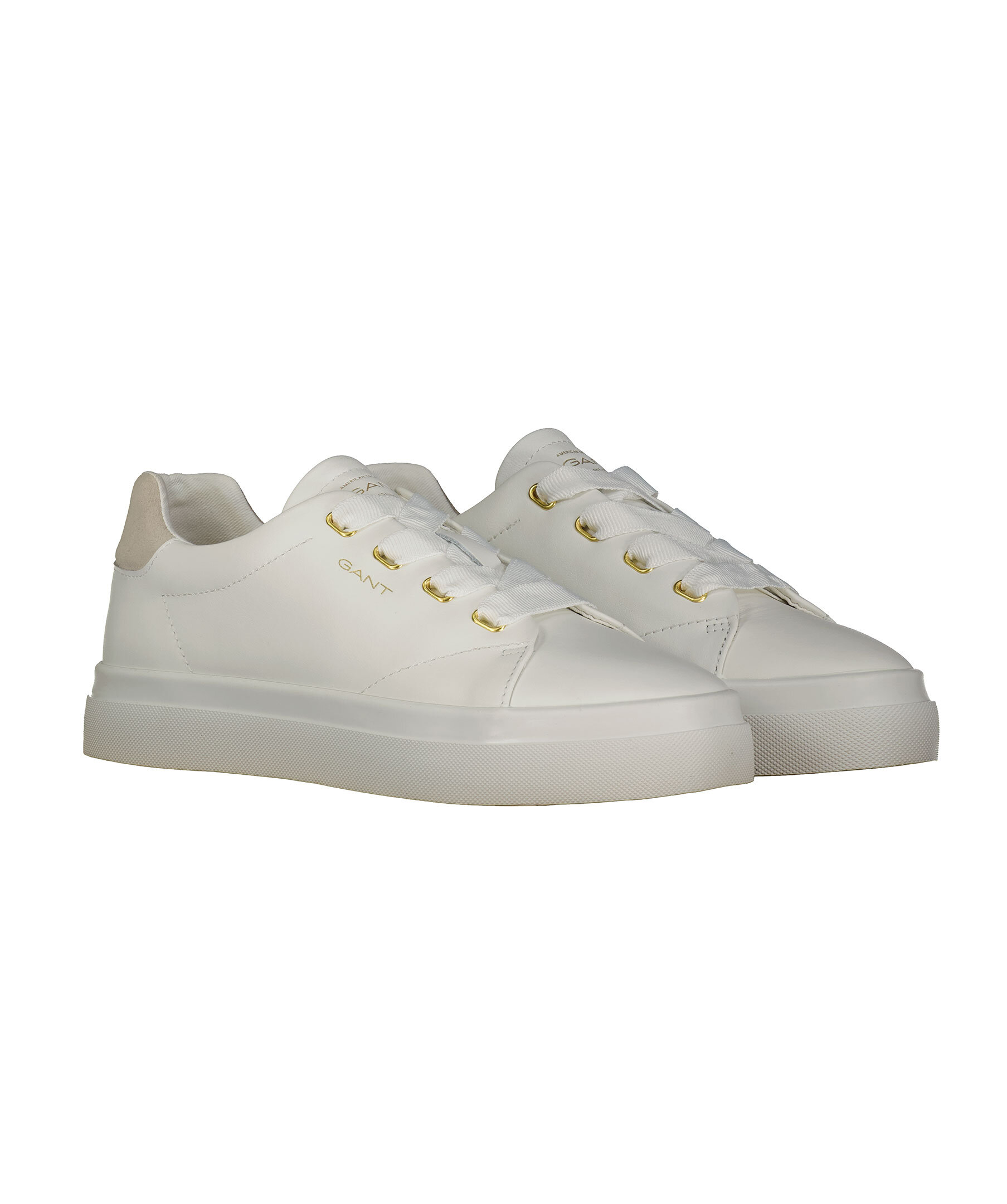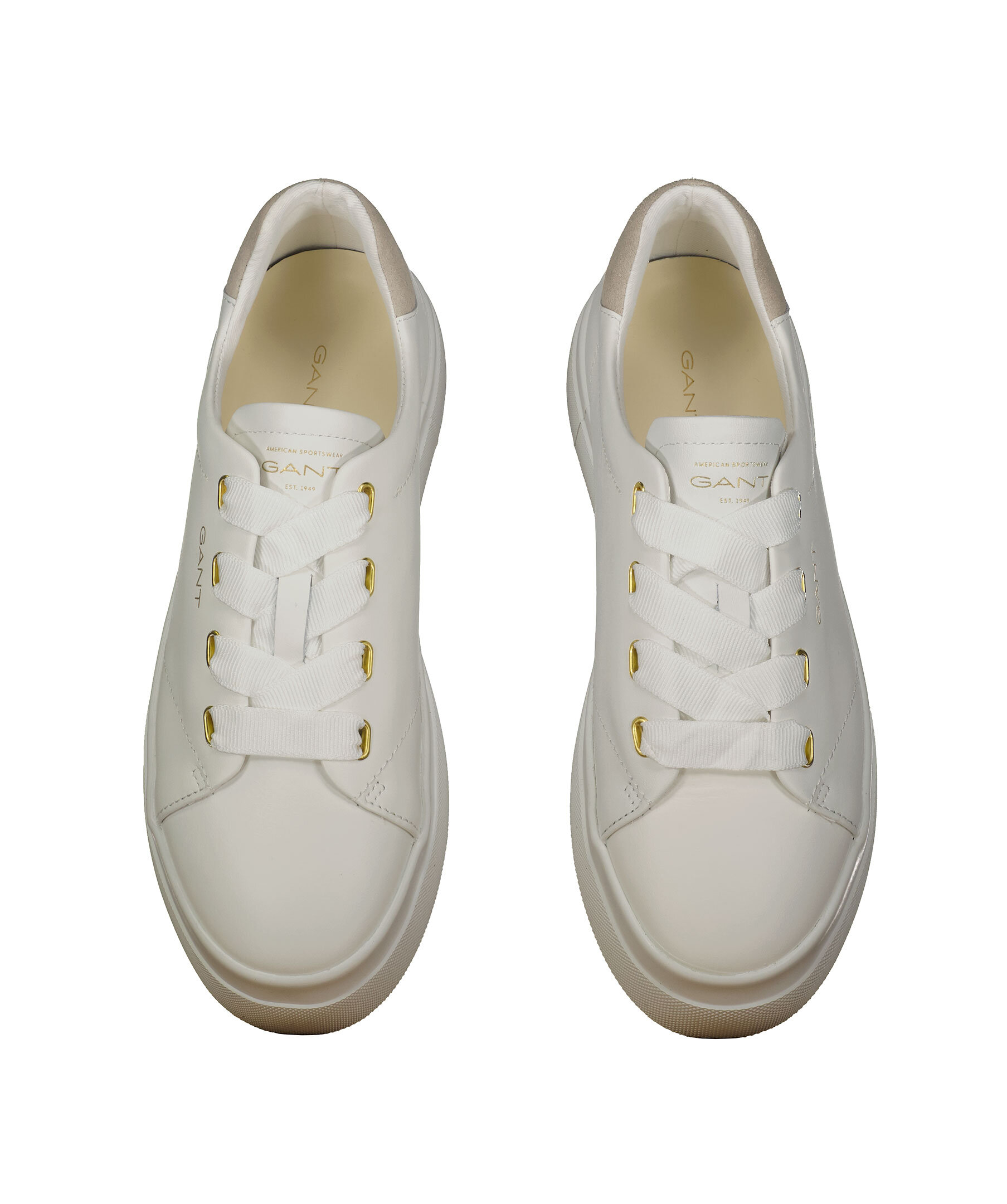 Vita sneakers med beige mocka del på hälen från Gant Footwear. Populära sneakers med hög vulkaniserad yttersula med trendig hälkappa. Ovandelen är gjord av högkvalitativt läder med textilfoder och läderklädd innersula. Logotyp på plösen, utsidan av skon samt på hälen.