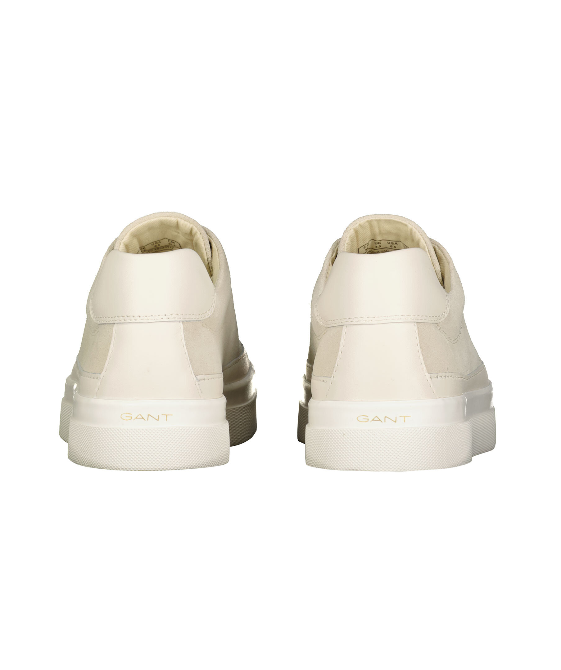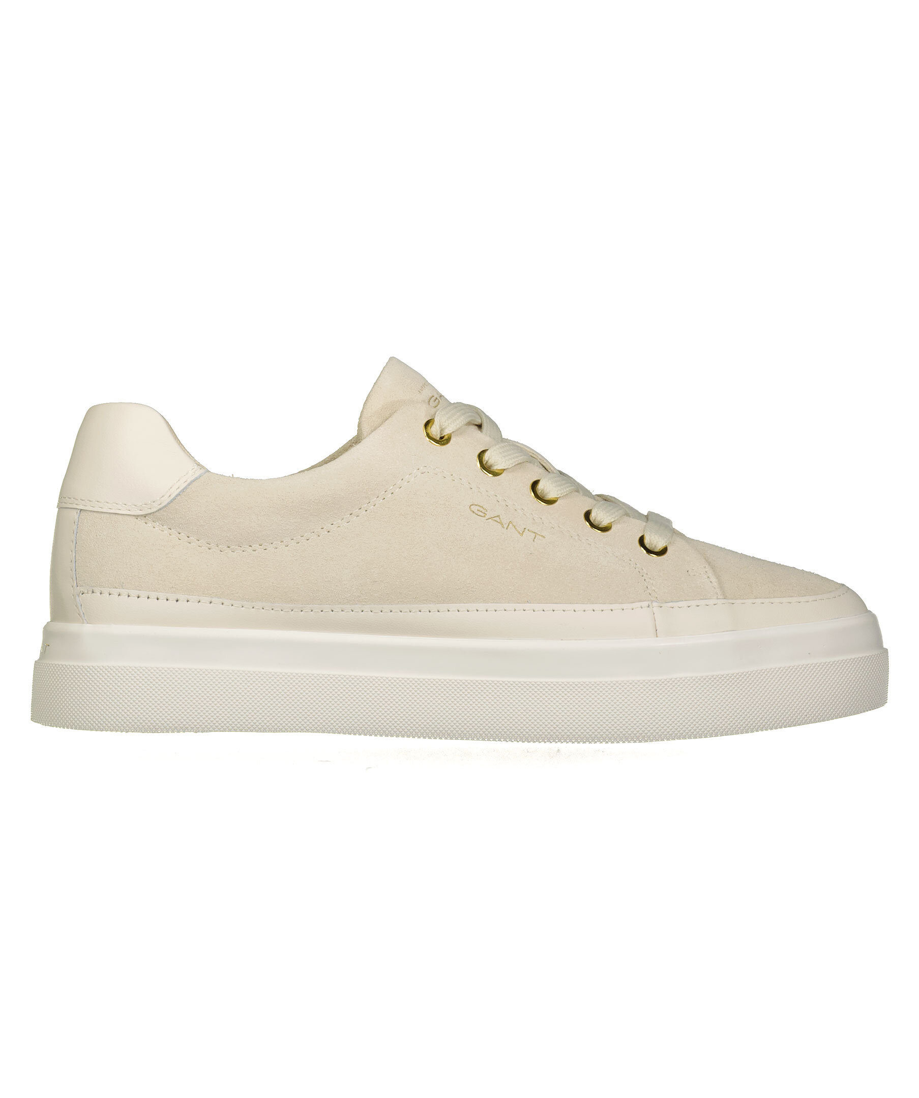 Beigea sneakers i mocka från Gant Footwear. Guldfärgade öglor i metall för snörning. Guldfärgade embossade logotyper på plösen, hälen samt skons yttersida. Detaljer i läder på hälen, runt om skon.