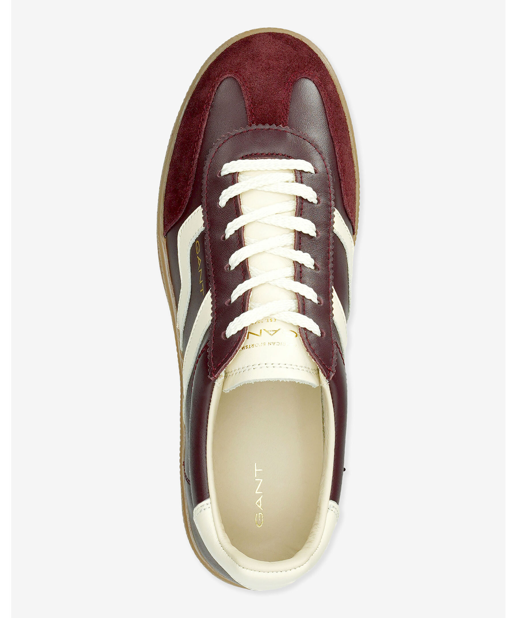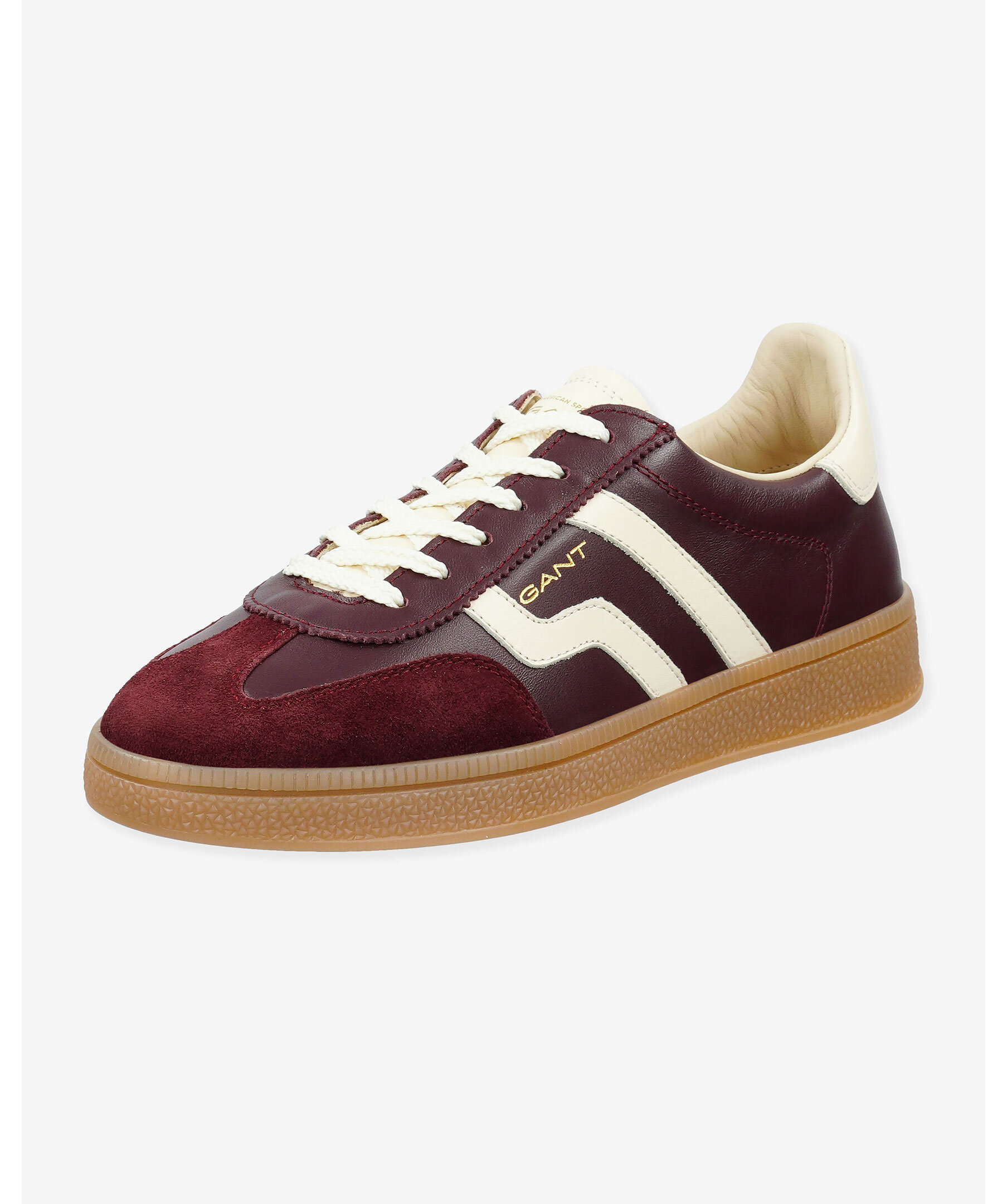Sportig sneaker i vinrött från GANT Footwear med slimmad silhuett och klassisk vintagekänsla. Ovandelen är gjord i mjukt nappaläder med eleganta mockadetaljer, läderfoder och en läderklädd innersula ger en lyxigt bekväm passform. Diskret logotyp på skons ena sida.
