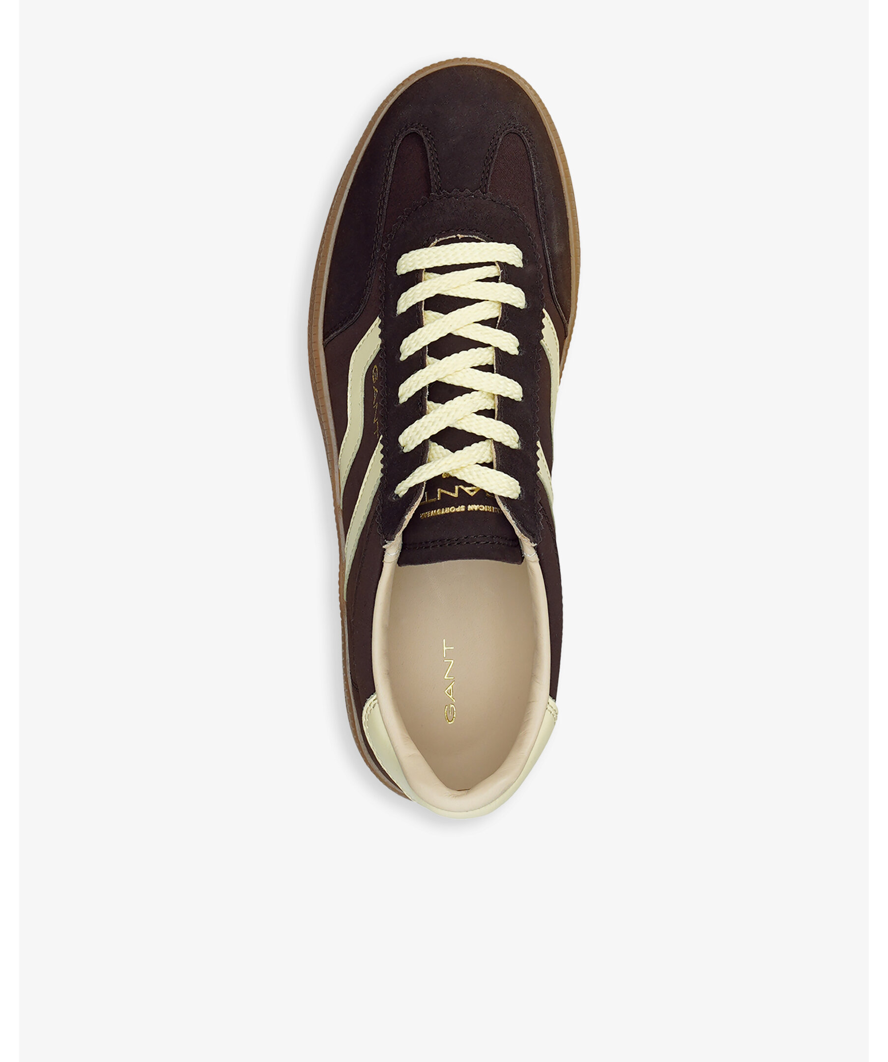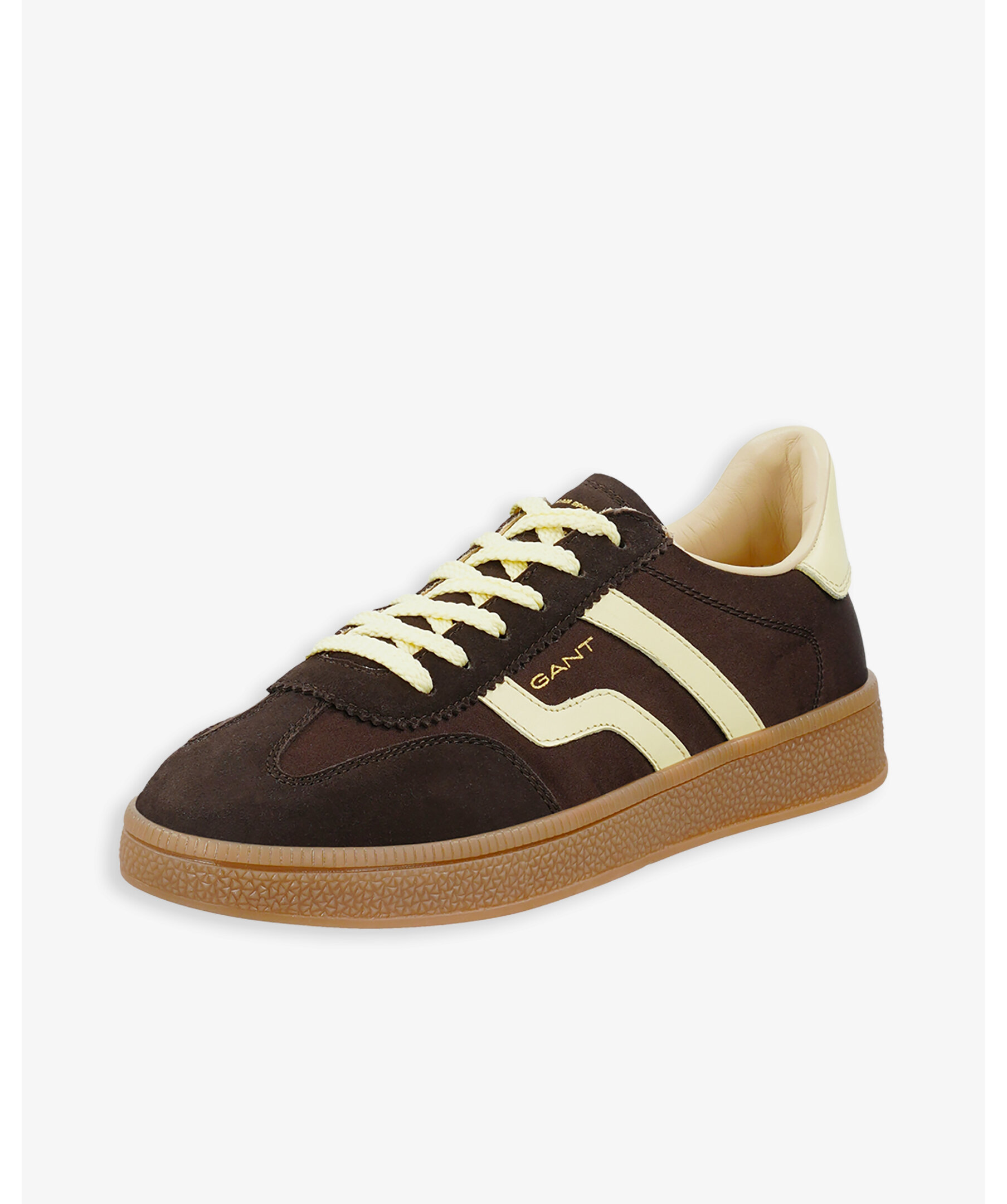 Elegant och retroinspirerad sneaker från Gant Footwear med slimmad silhuett och vintagekänsla. Ovandelen är en mix av mocka, nylon och satin, och med läderfoder samt läderklädd innersula för bekväm passform. De ikoniska honungsfärgade gummisulorna ger skon dess unika karaktär, kompletterad med diskret logotyp på sidan.