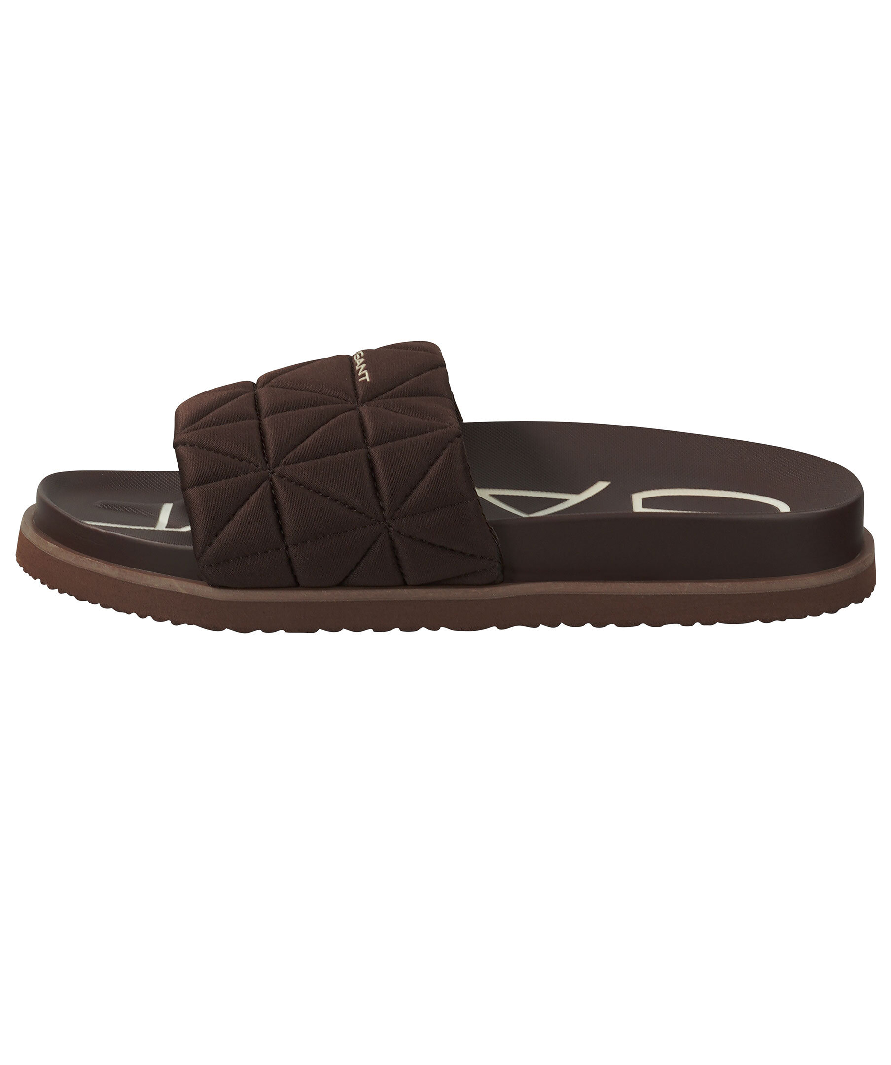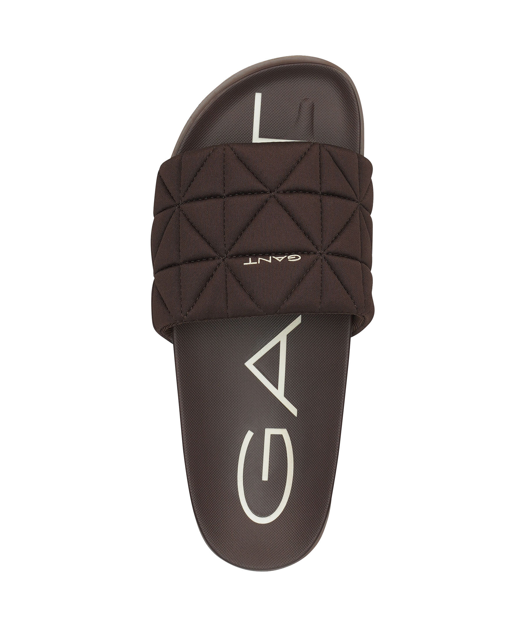 Stilsäker, superlätt strandsandal med ett brett band för mycket komfort. Ovandeln är gjord av vadderad lycra med GANT-skrift på innersulan. Den superlätta sulan är gjord av EVA.