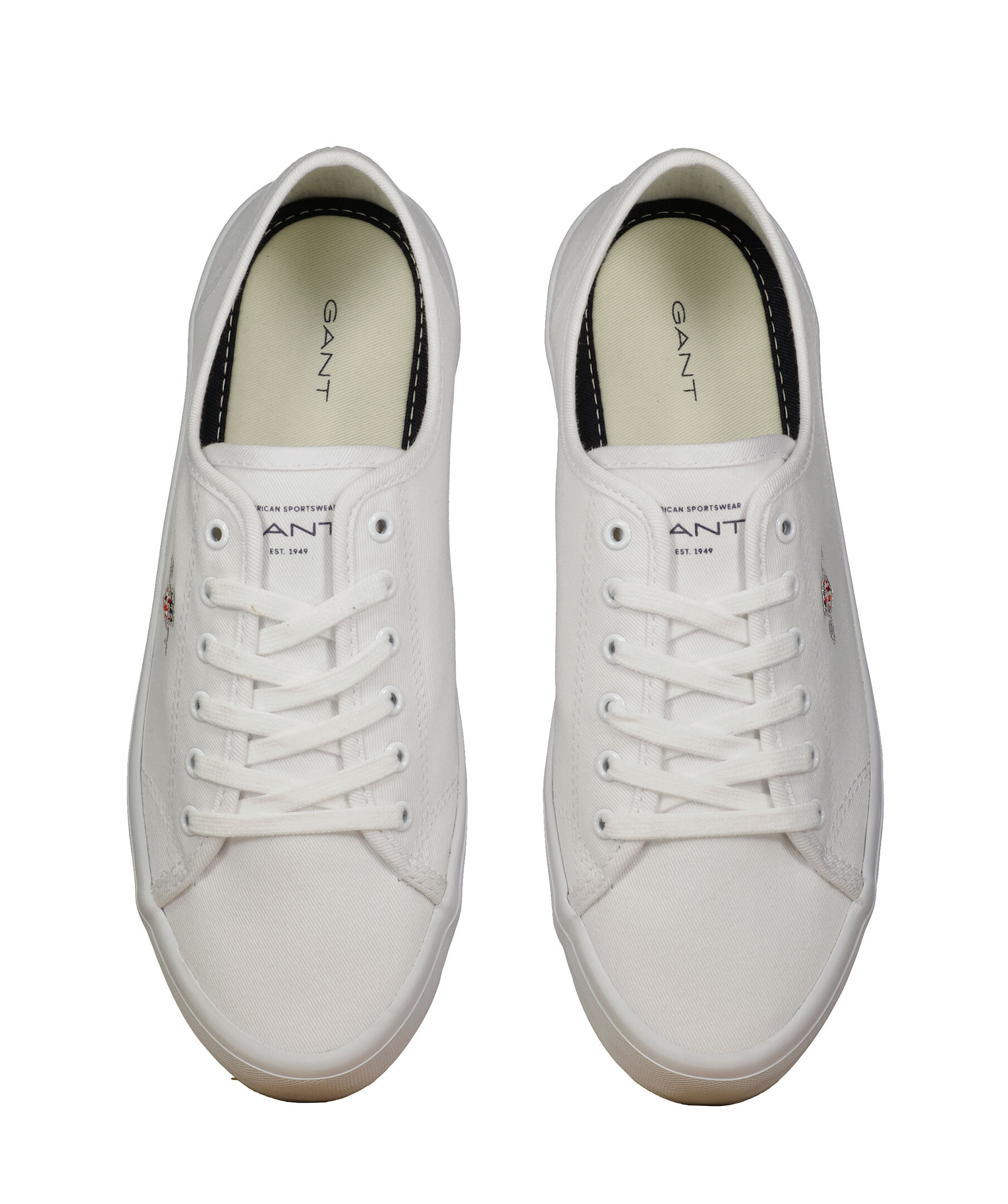 Vita sneakers från Gant Footwear. Ett absolut måste ha plimsole sneaker för sommaren. Ovandeln är gjord av sommaraktig bomullstwill med en liten GANT Shield-logga. Med textilfoder.