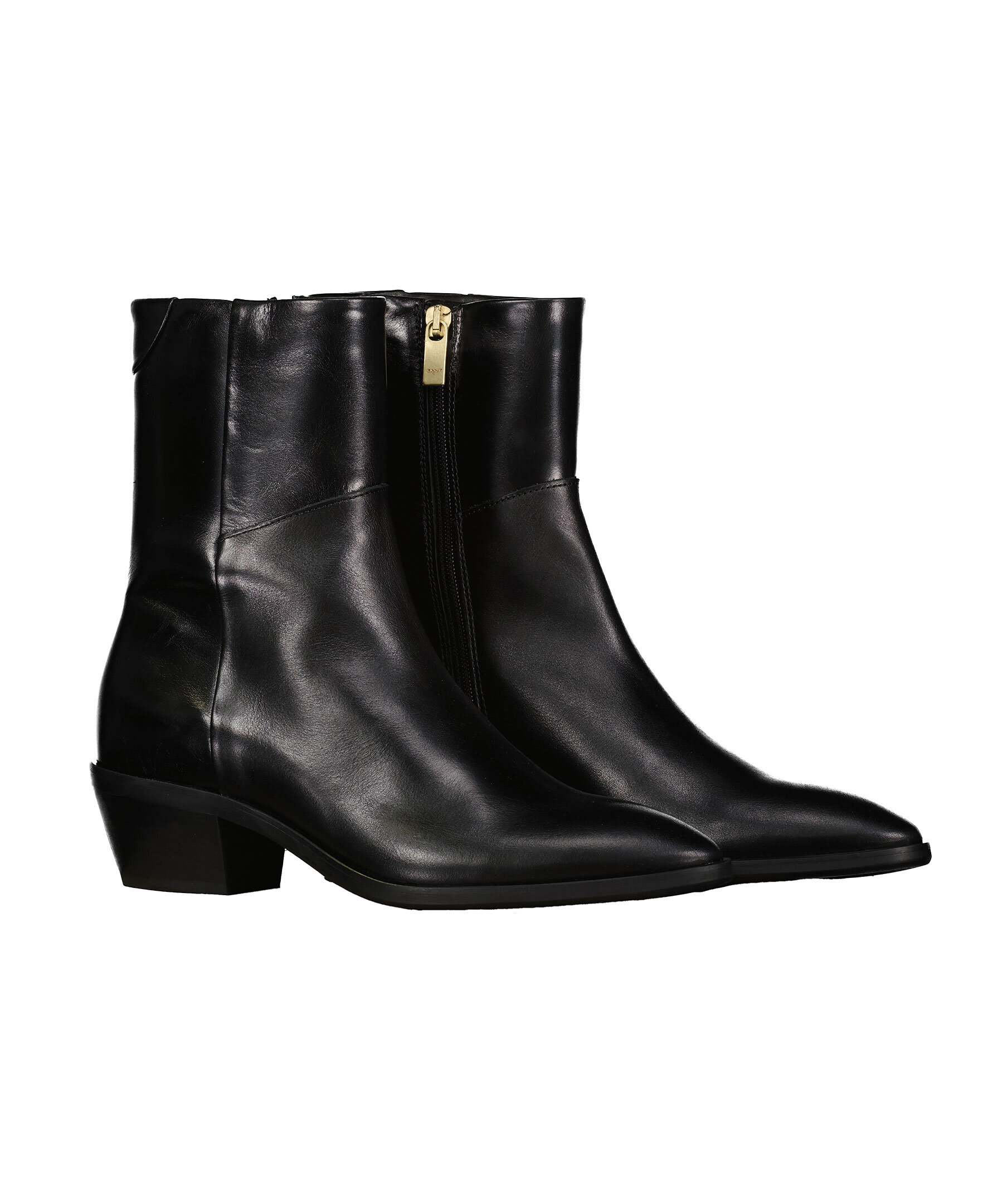 Westernstövel i 70-talsstil med smal siluett och elegant spets tå. Ovandelen är gjord av högkvalitativt läder med dragkedja och en mellanhög klack. Med läderklädd innersula. Genom att köpa denna produkt stödjer du ansvarsfull lädertillverkning av Leather Working Group.