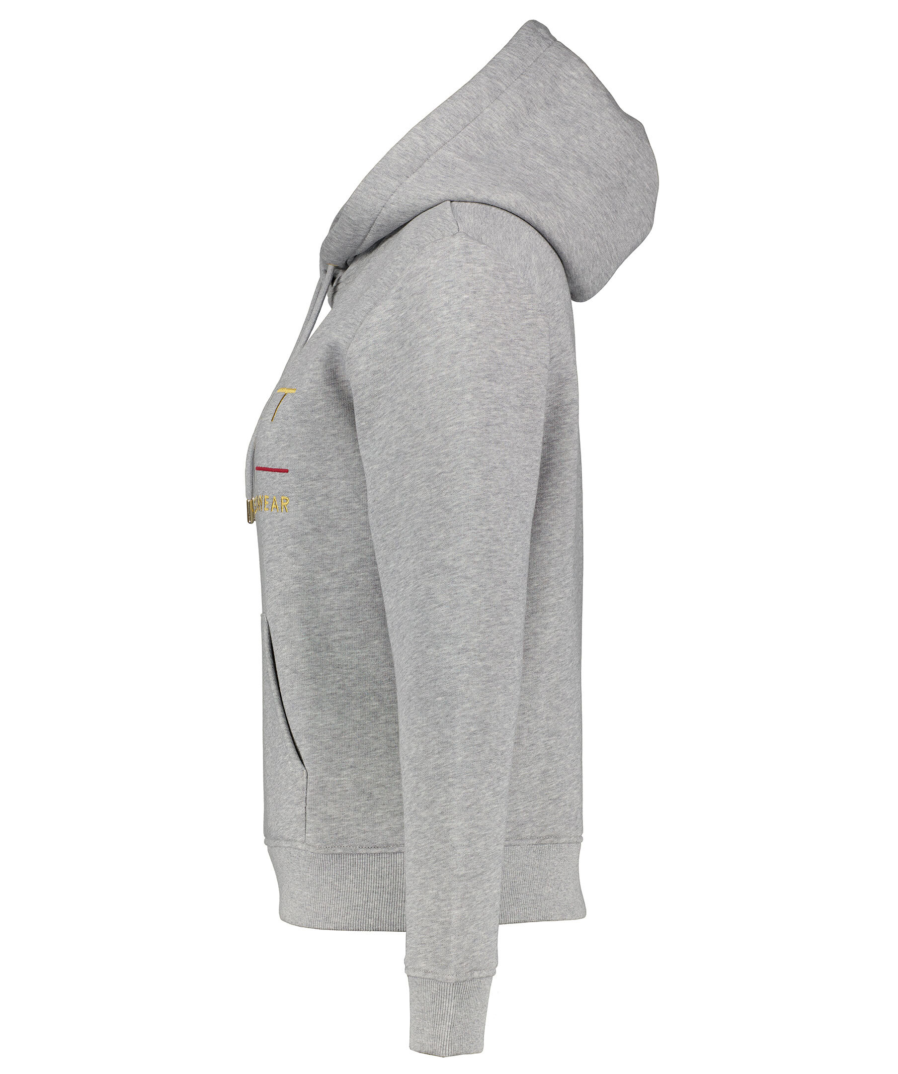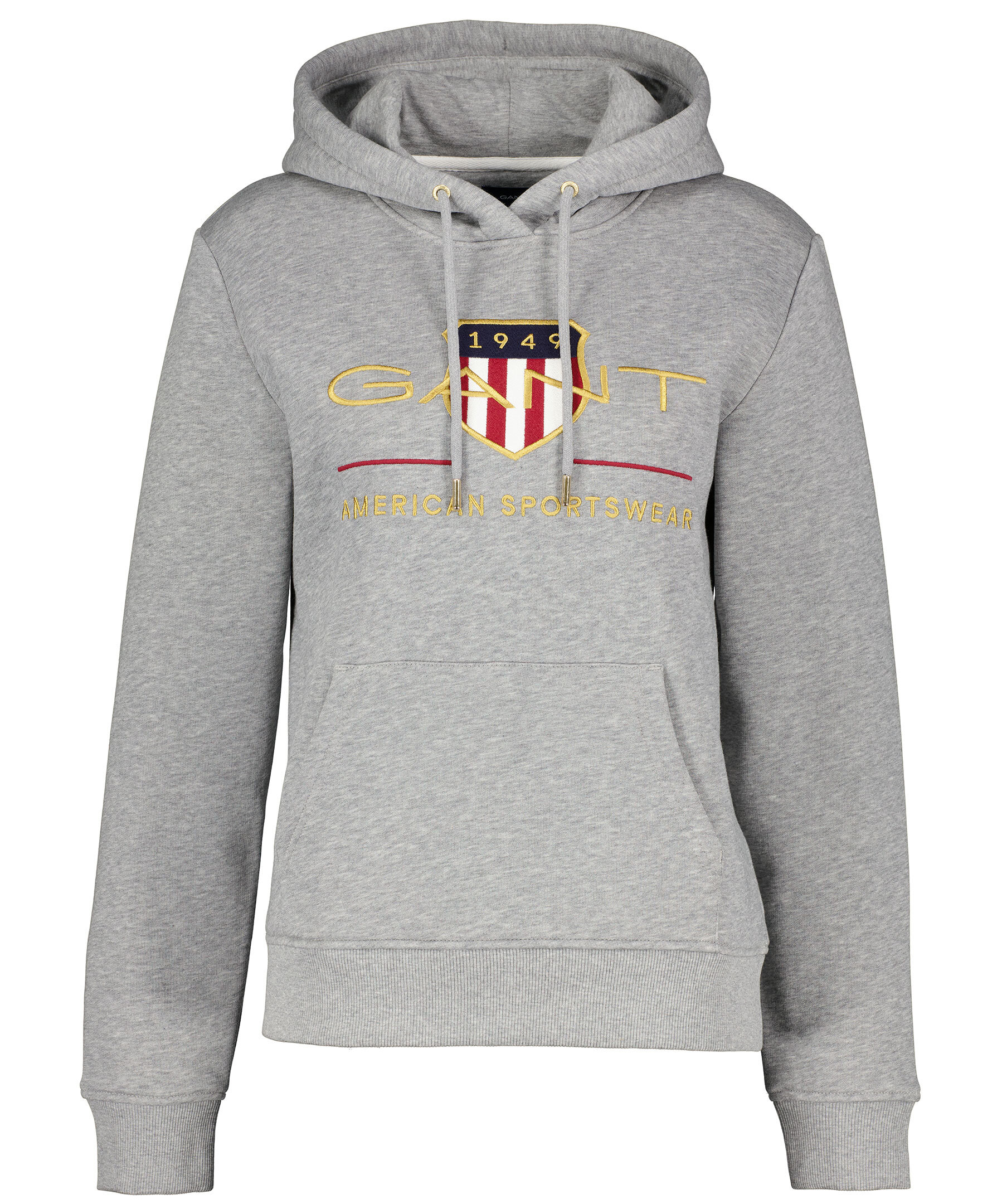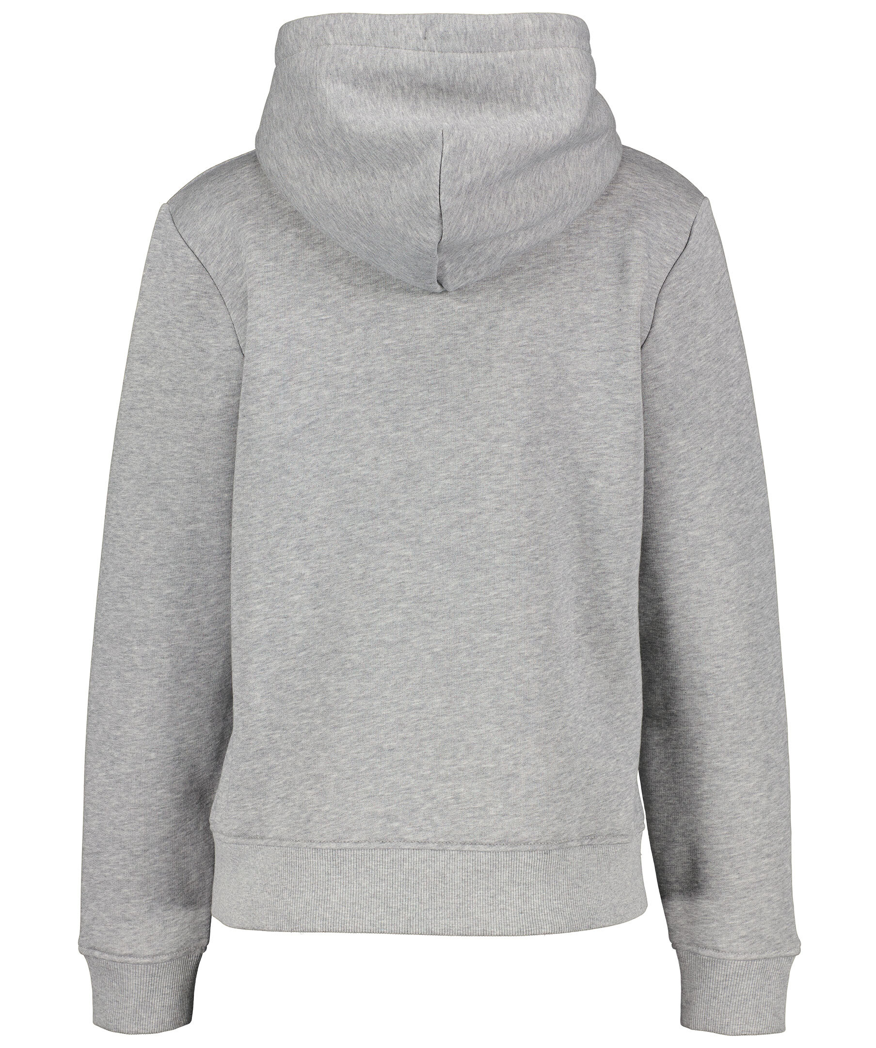 Grå hoodie från Gant i skön bomullsblandning. Tröjan har luva med snörning samt stor ficka på magen. Ribbstickade muddar och broderad logotyp på bröstet. Tillverkad i bomull och polyesterblandning.