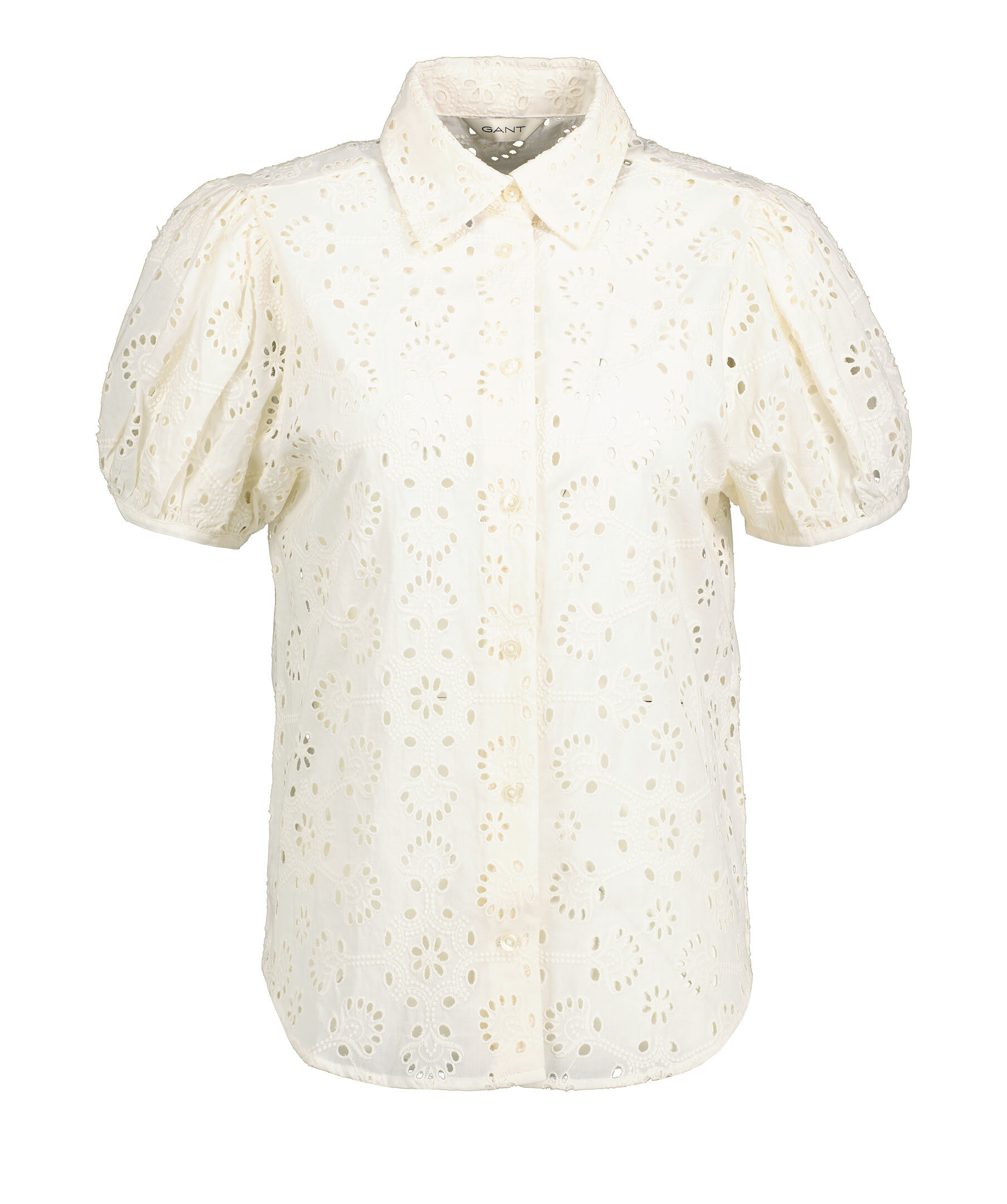 Benvit, kortärmad skjorta med genomgående hålbroderi från Gant. Button-down krage och puffiga, korta ärmar. Tillverkad i bomull.