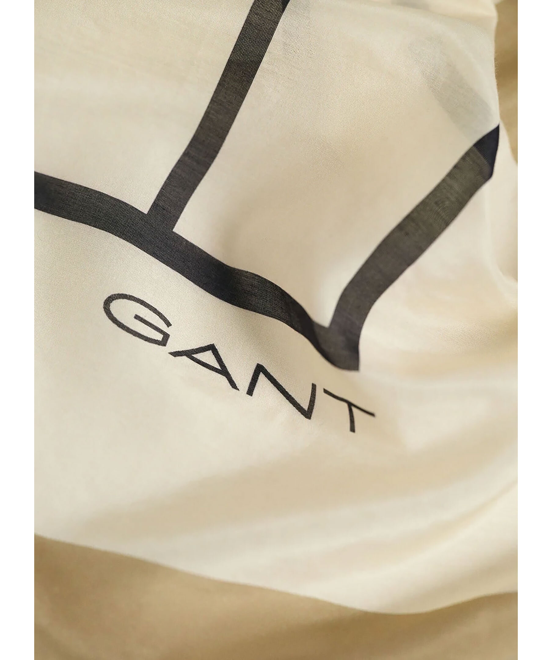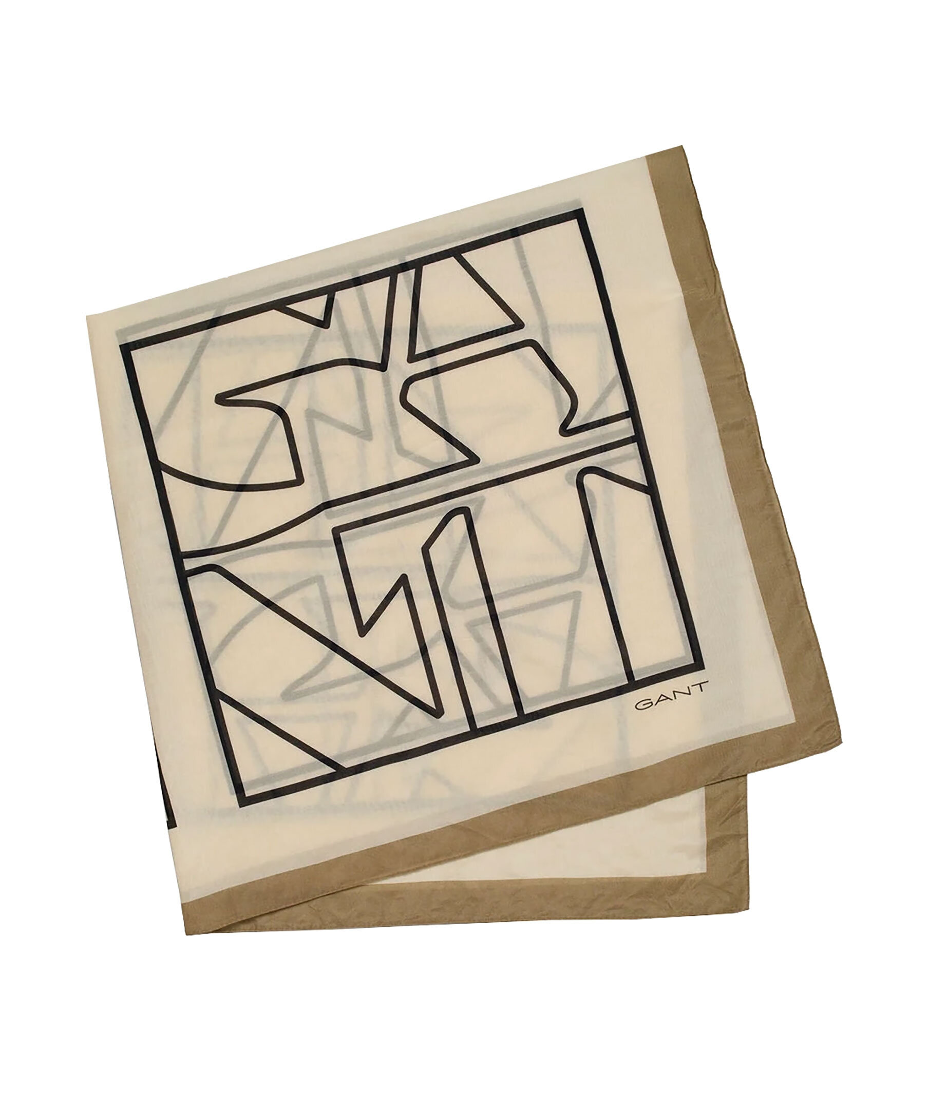 Mönstrad silkesscarf från Gant i beige, svart, och guld. Mått 132x132 cm. Tillverkad i en silkesblandning.