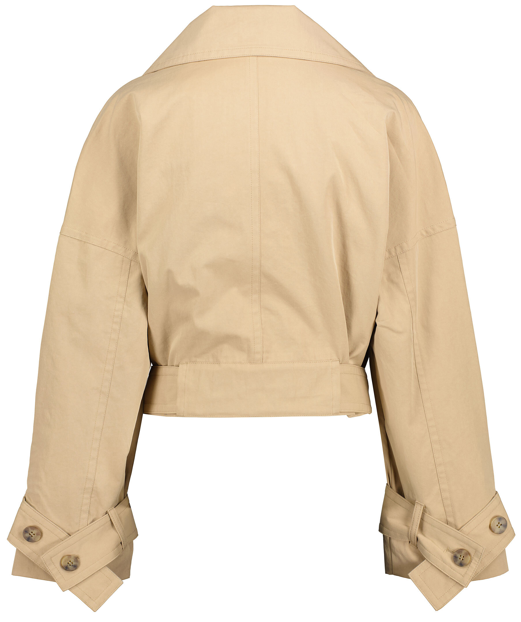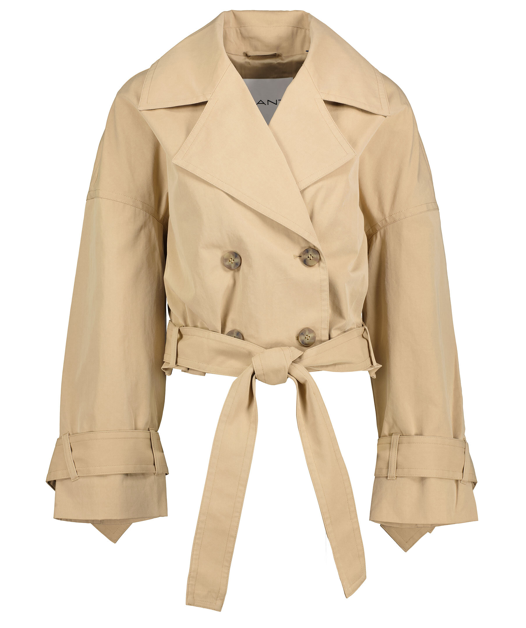 Croppad trenchcoat från Gant. Jackan har klassiska trenchcoatdetaljer med en vattenavvisande yta. Överdimensionerad krage med breda slag. Stängs med dubbelknäppning och har ett avtagbart bälte. Två innerfickor. Tänkt att sluta ovanför höften. Avslappnad passform.