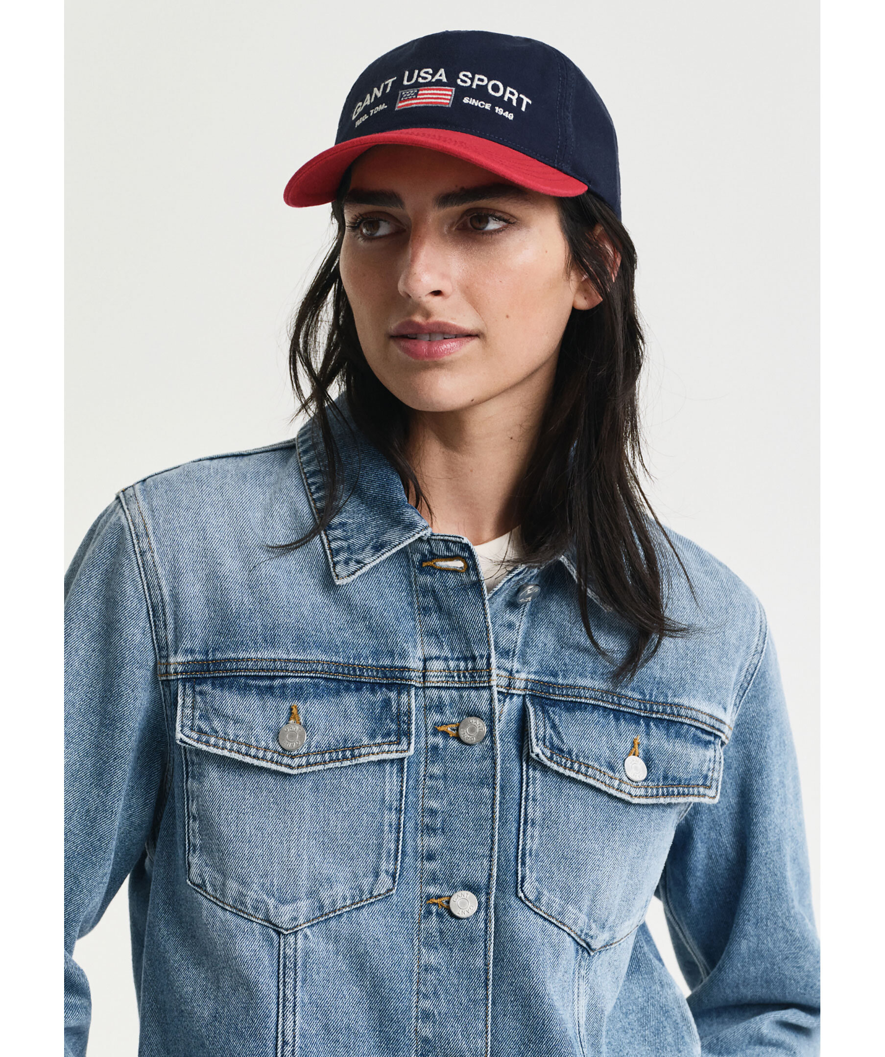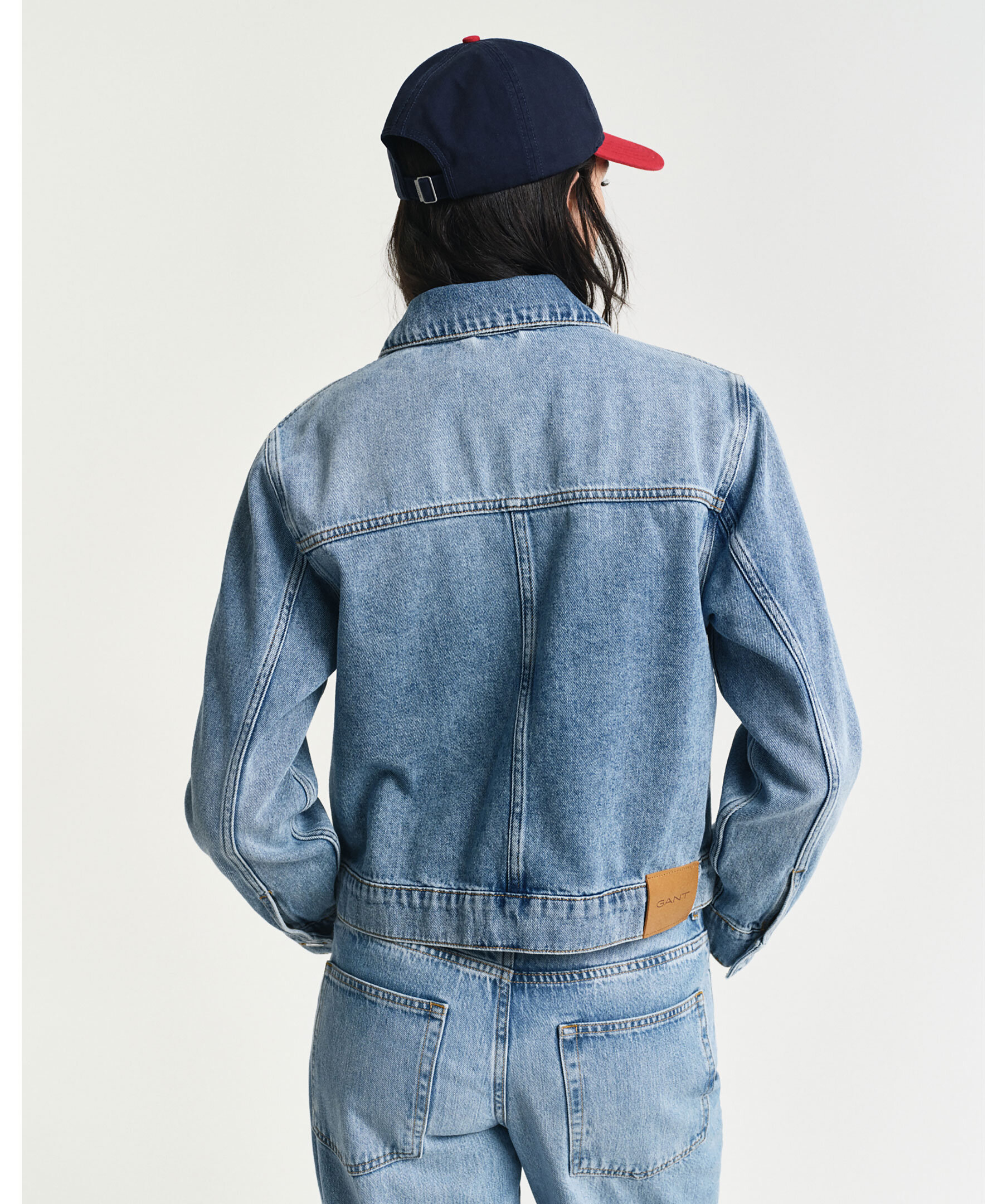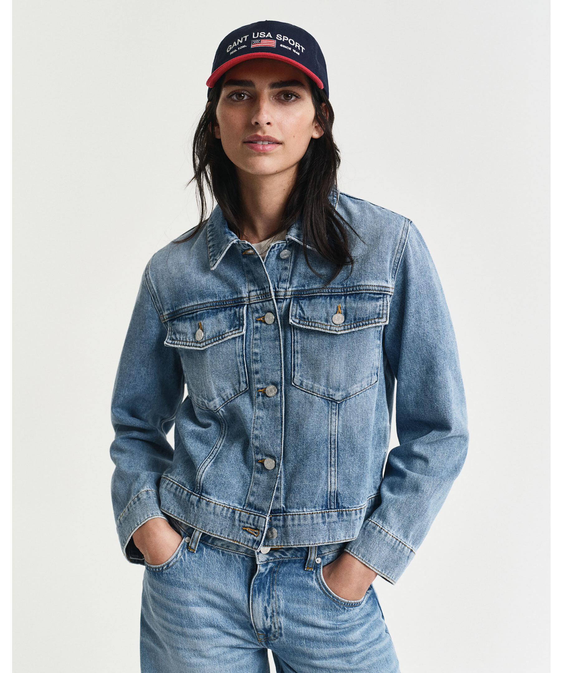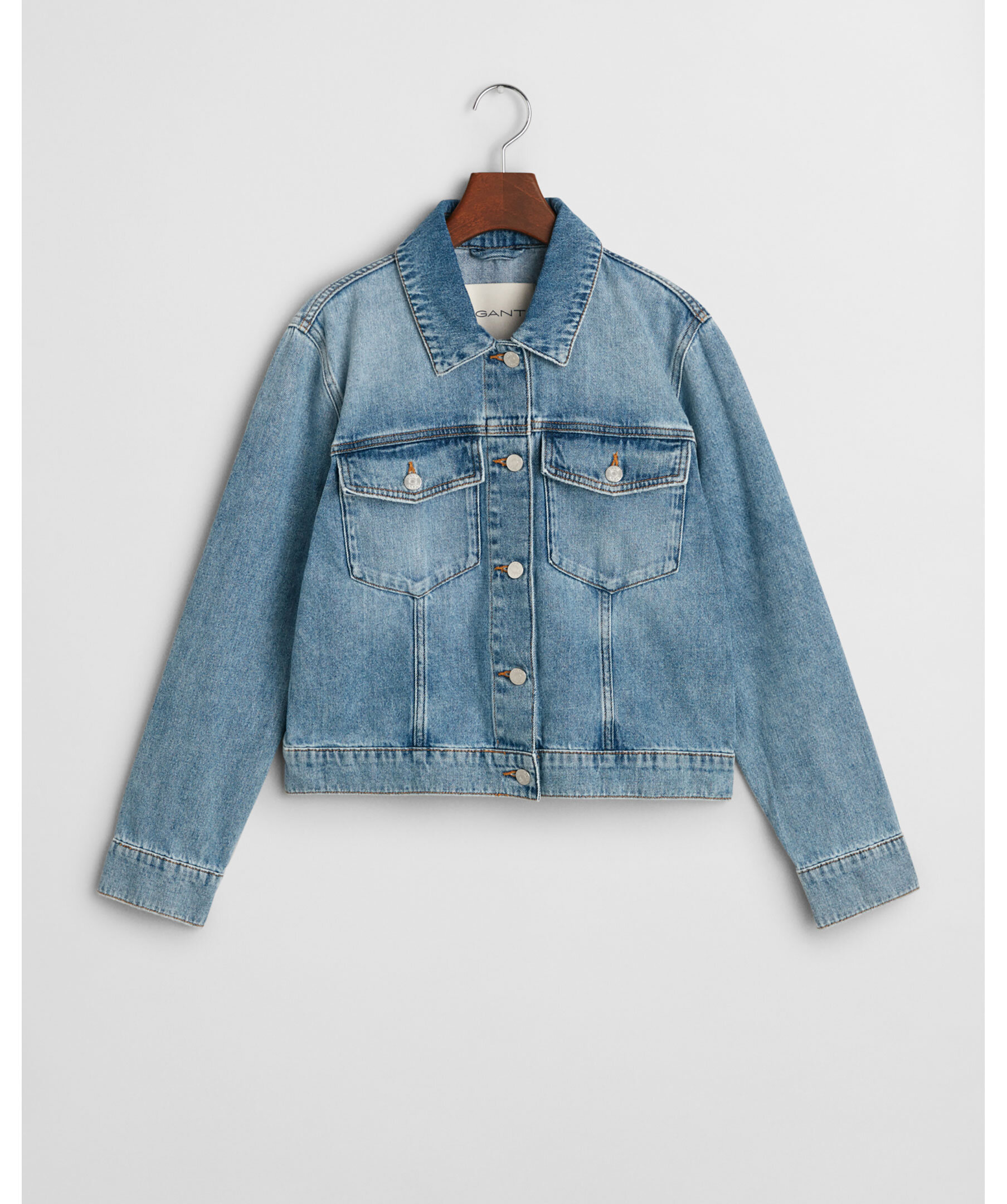 Blå jeansjacka från Gant. Jackan stängs med knappar framtill och har två oversized bröstfickor med lock och knapp. Tillverkad i bomull.