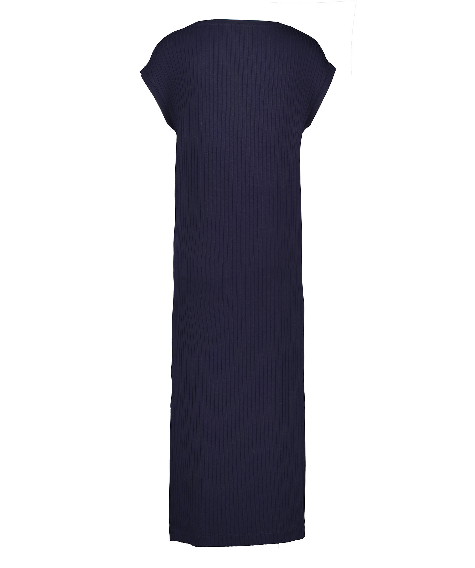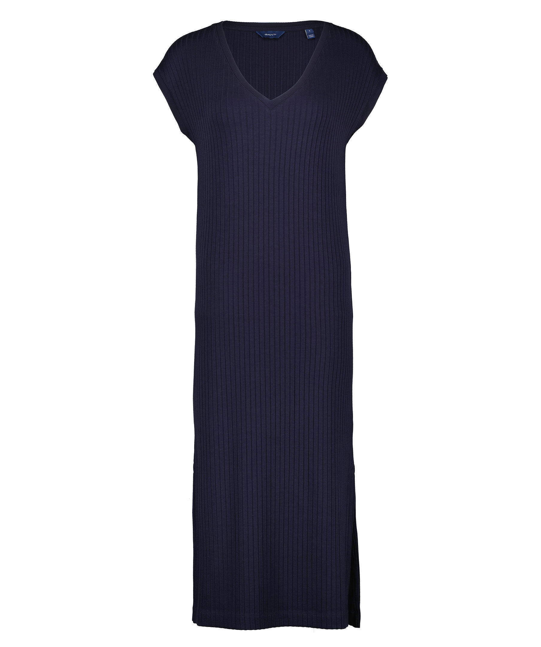 Mörkblå, ärmlös ribbad jerseyklänning från Gant. V-ringad. Relaxed fit. Slitsar i sidorna. Tillverkad i viskos blandning.