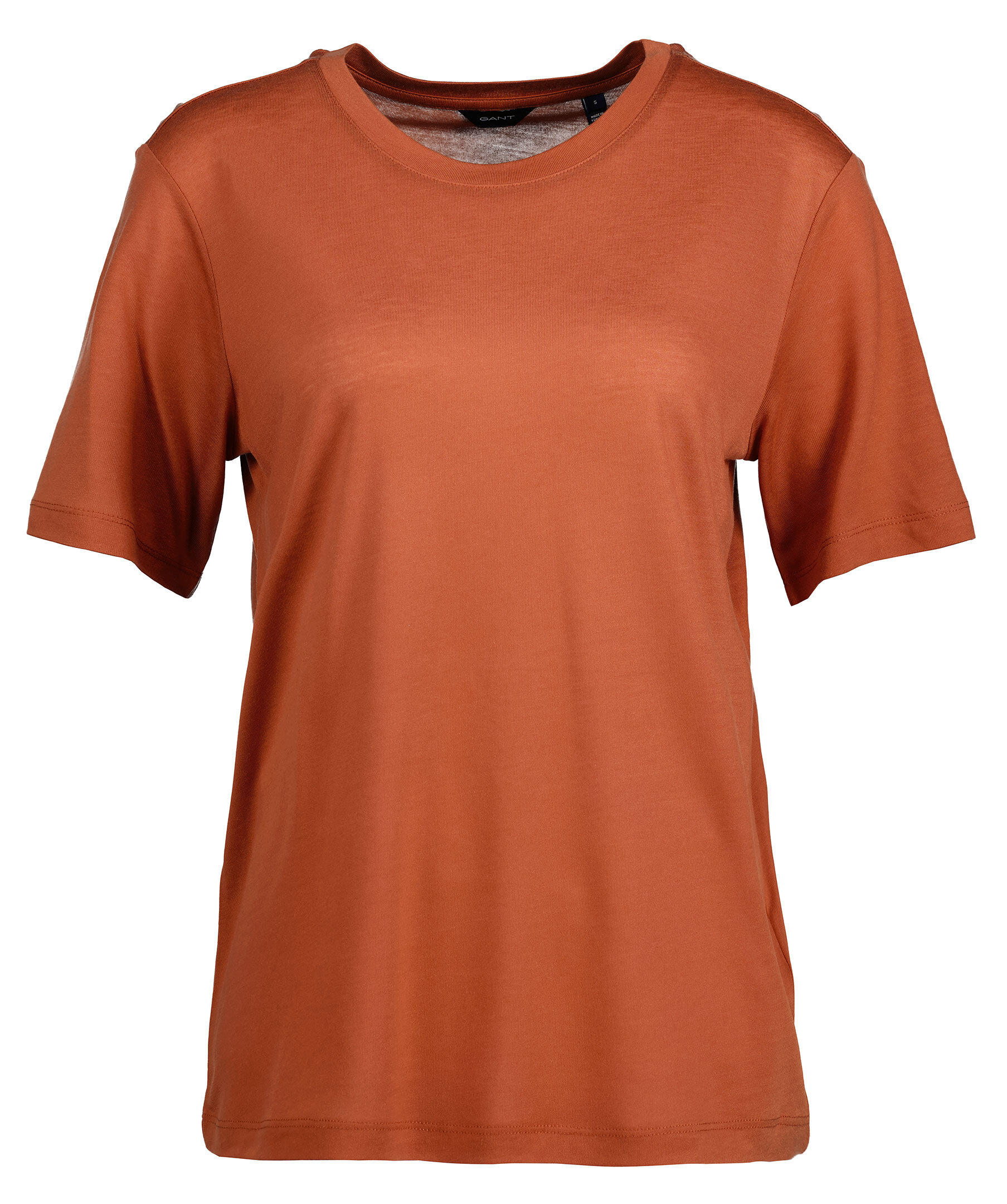 Orange t-shirt från Gant med rundad halsringning. Avslappnad passform och halvtransparent material tillverkat i 100% Lyocell.