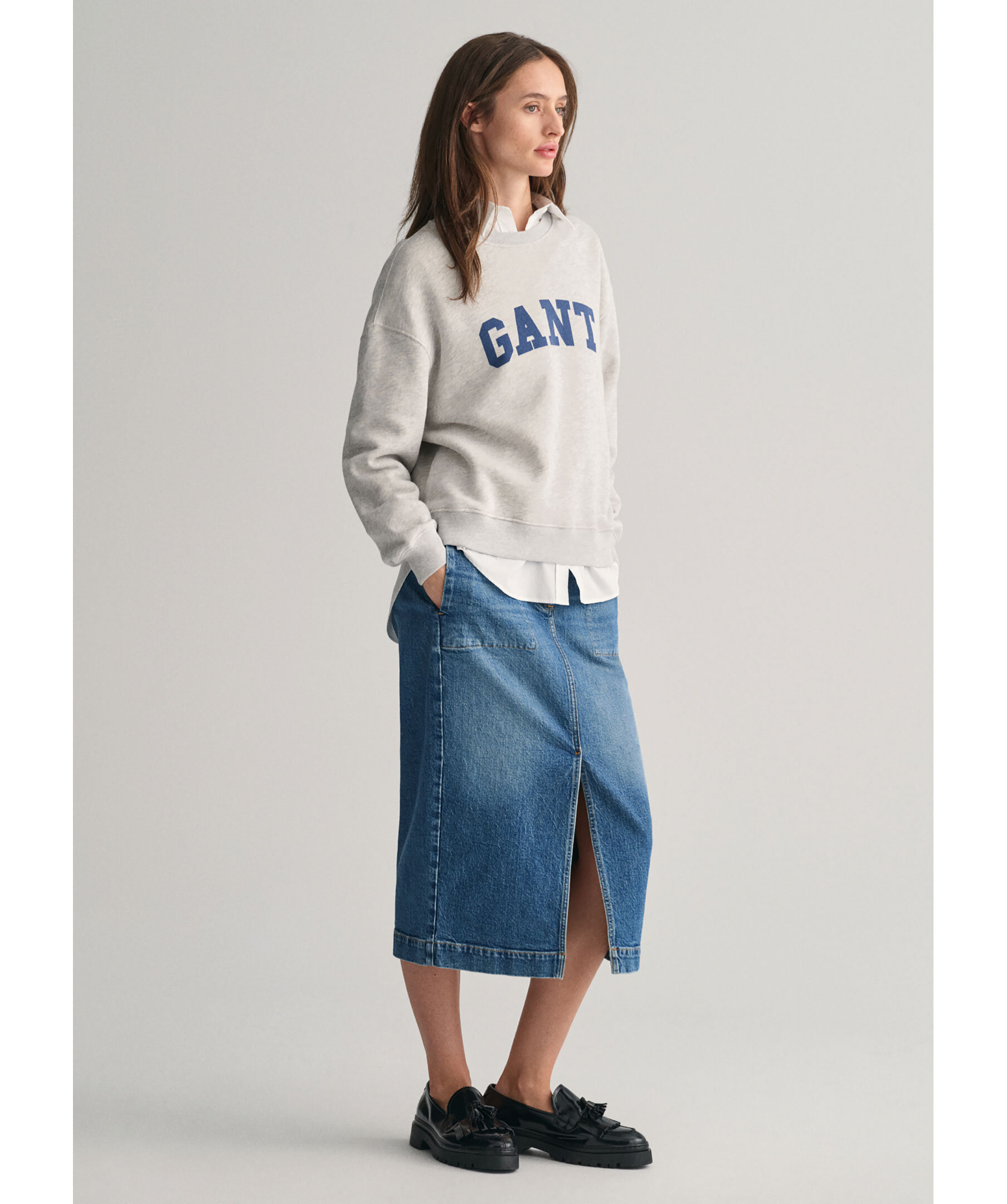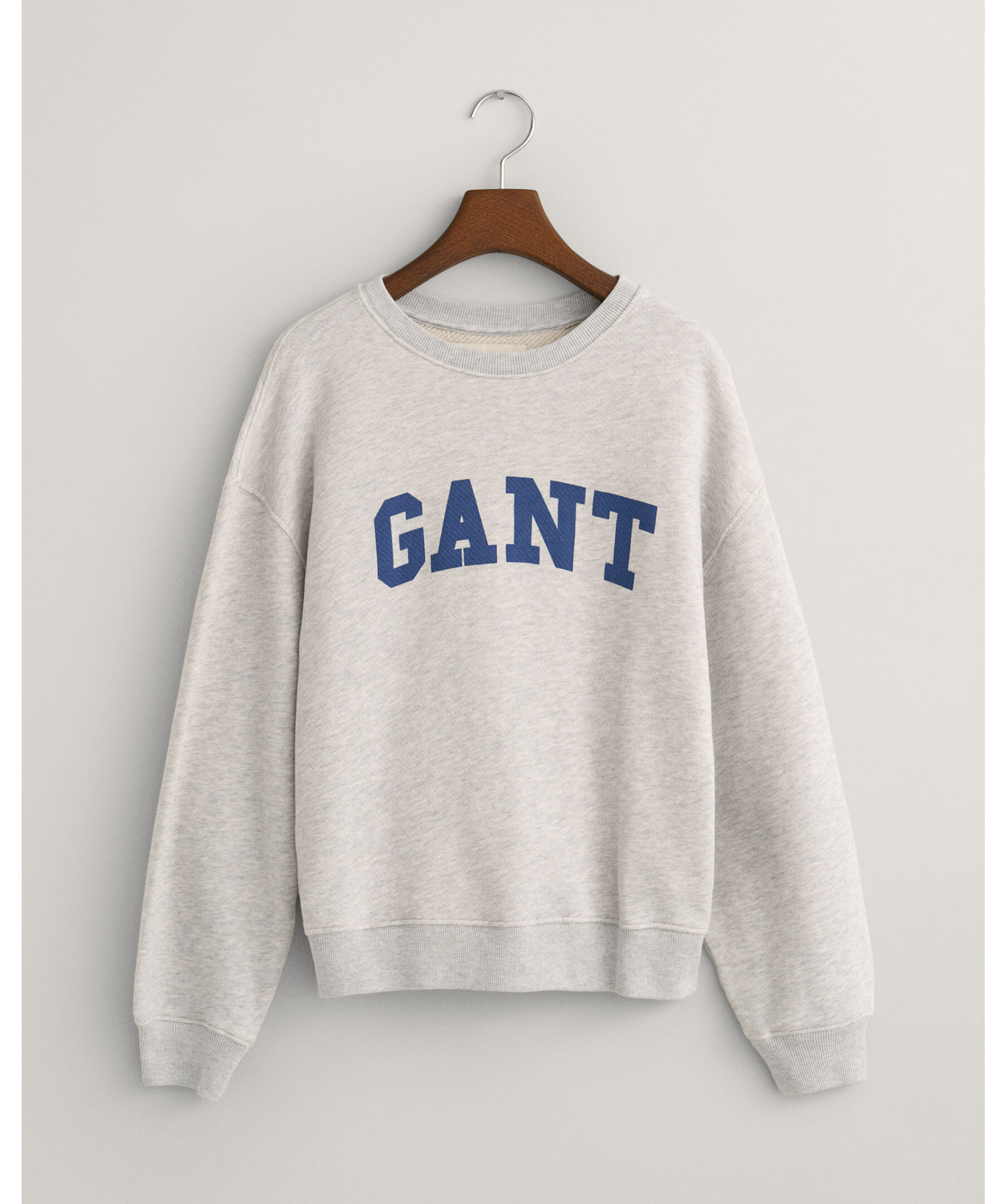 Gråmelerad sweatshirt från Gant. Tröjan har långa ärmar, ribbstickade detaljer, rundad halsringning och GANT-tryck på bröstet. Relaxed fit. Tillverkade i bomull.