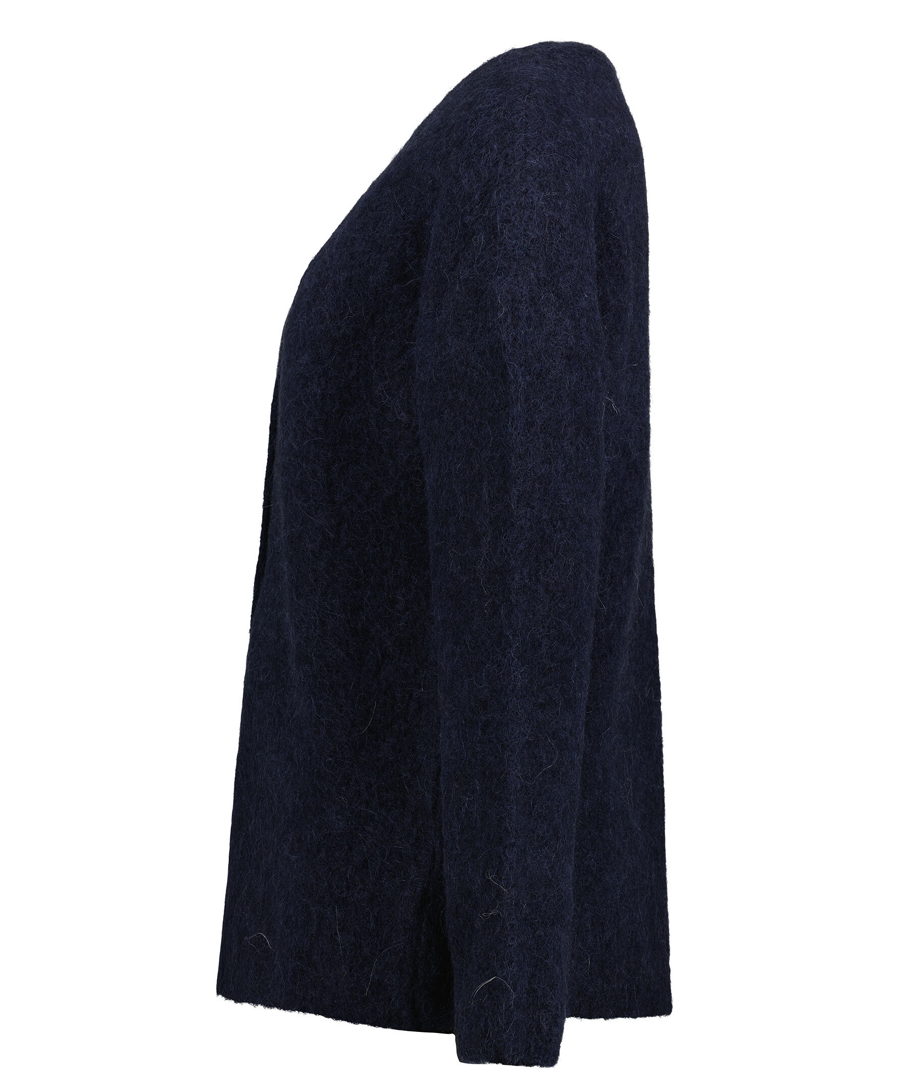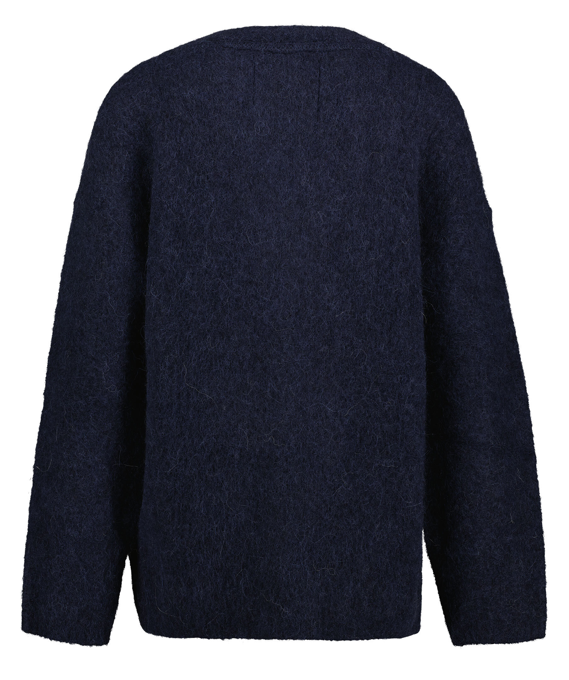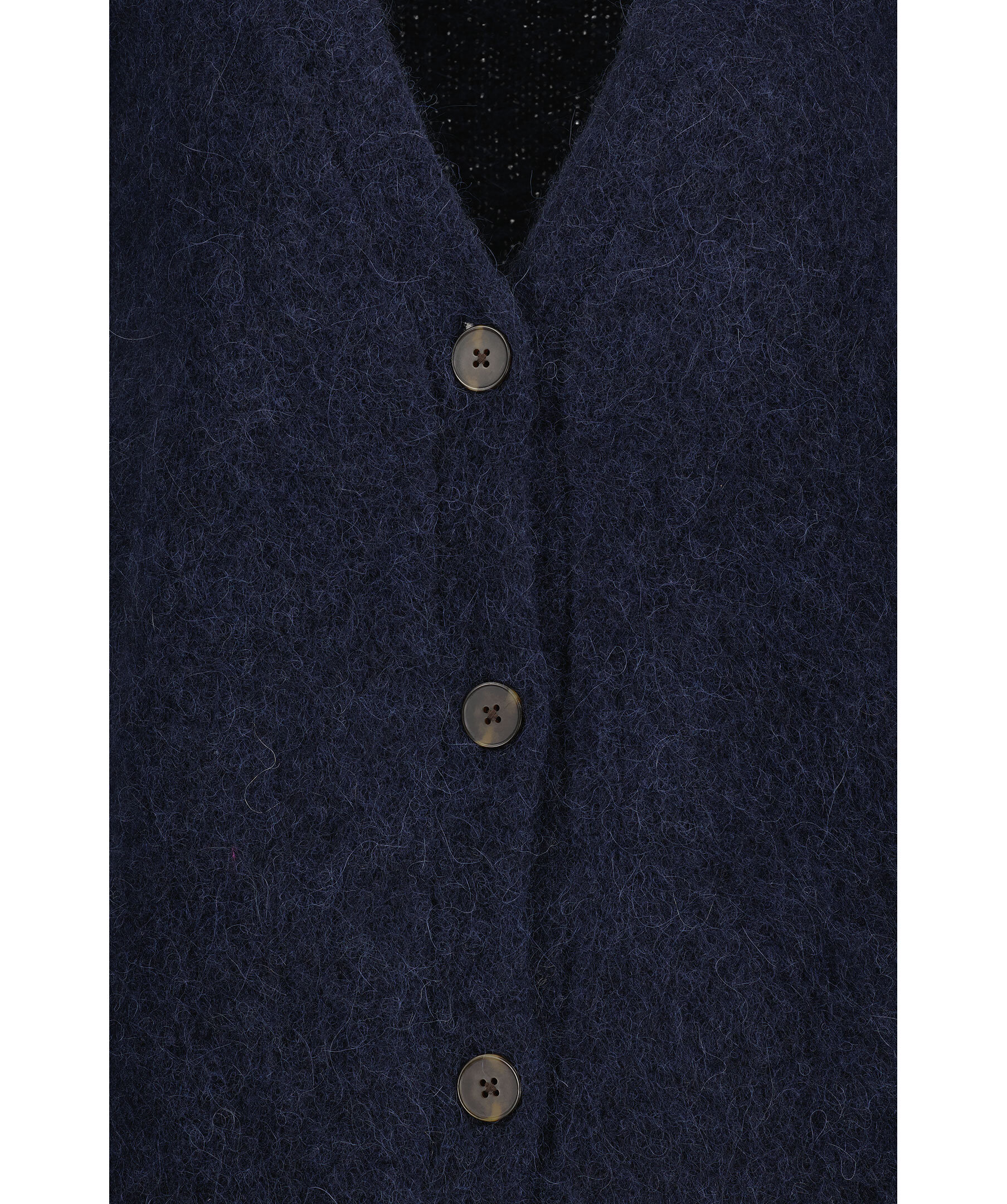 Mörkblå V-ringad kofta från Gant. Stängs framtill med knappar. V-ringad. Avslappnad passform. Ribbstickad mudd vids ärm- och plaggslut. Tillverkad i ullblandning.
