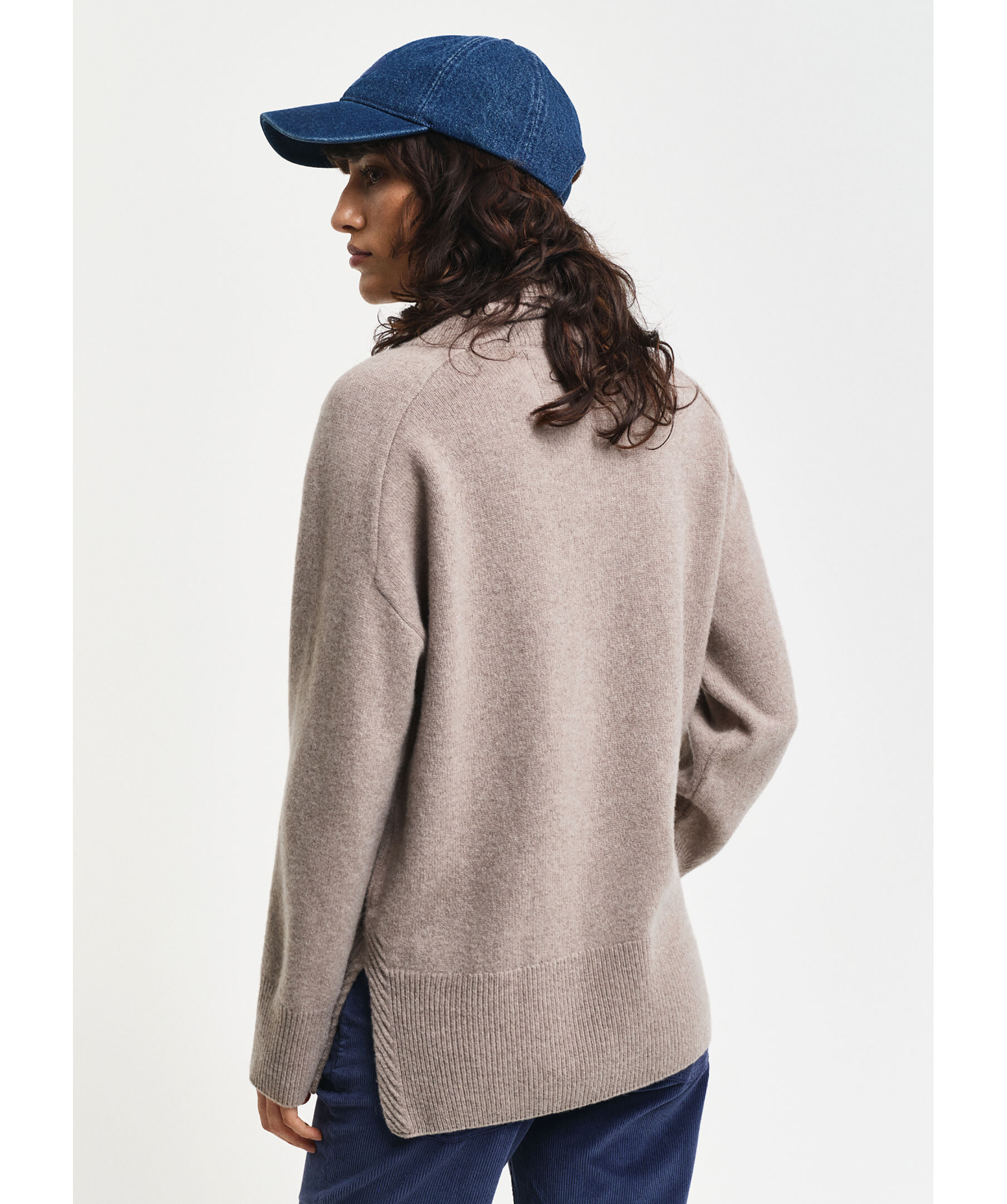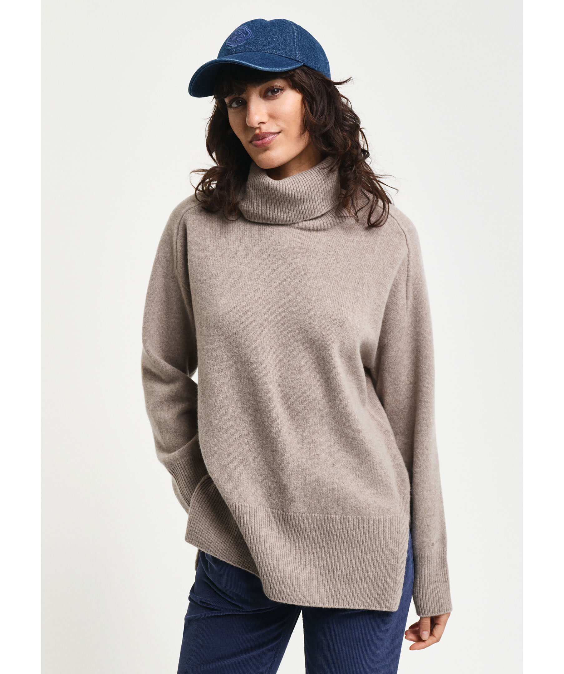 Gråbrun stickad polotröja från Gant. Tröjan har vida ärmar, slitsar i sidorna samt ribbstickade muddar. Tillverkad i mjuk kashmir- och ullblandning.