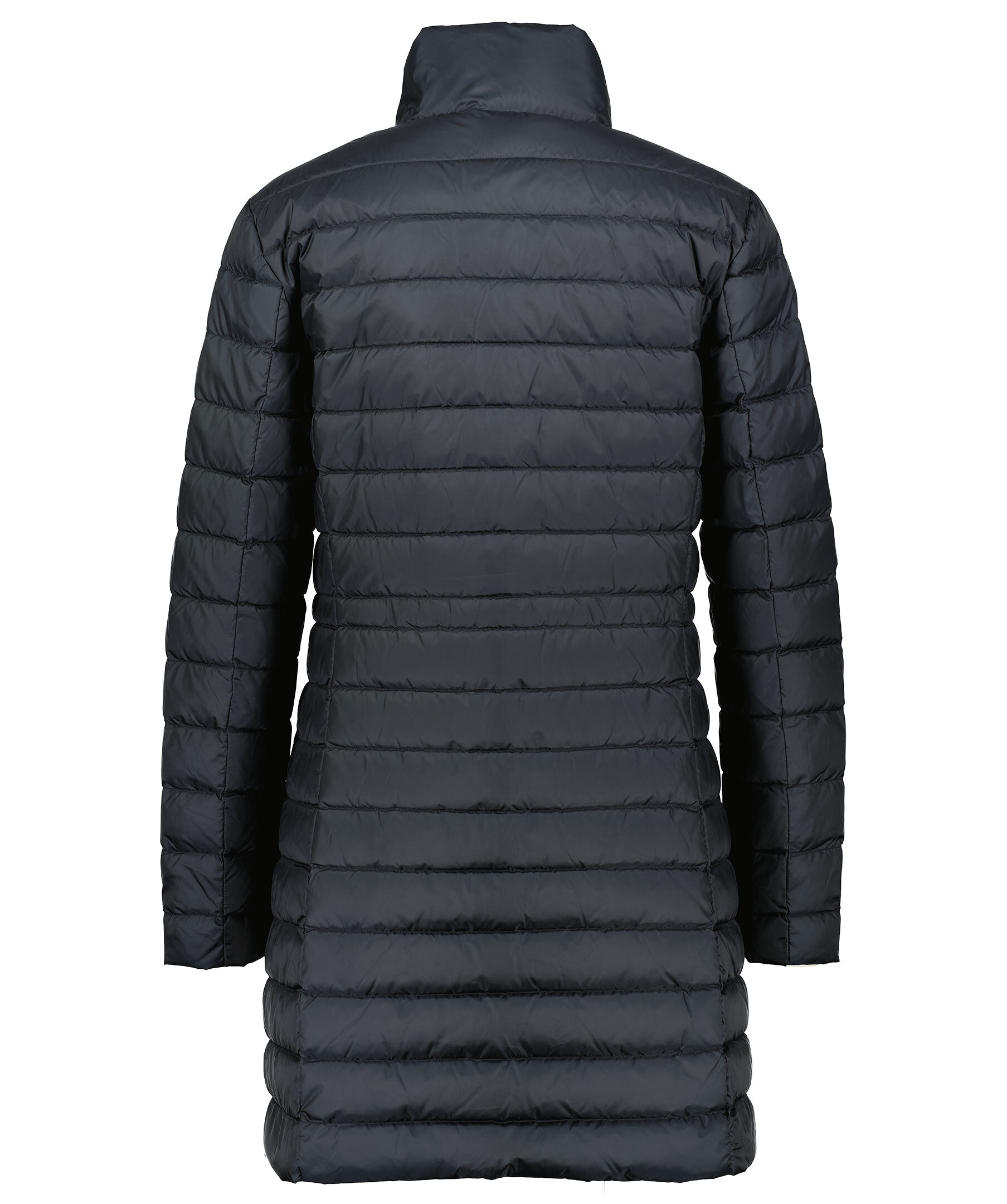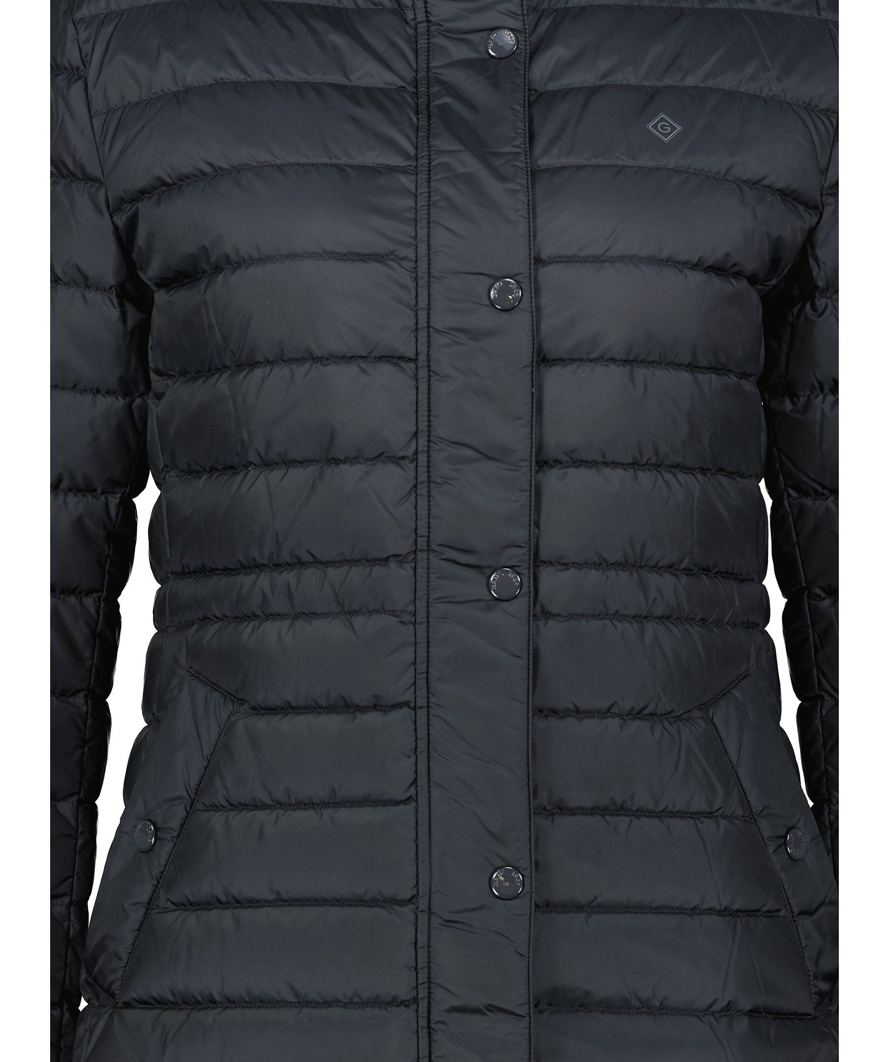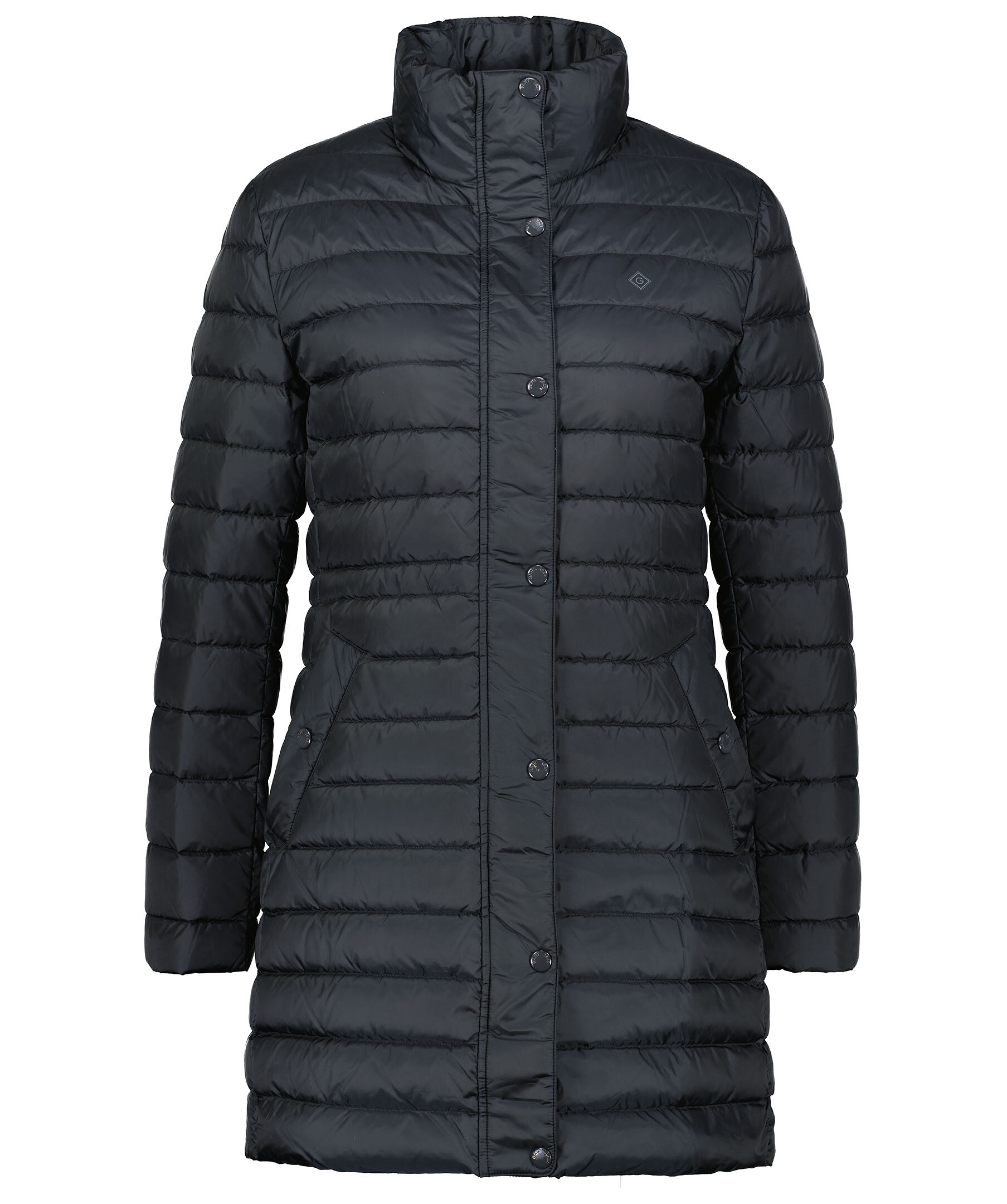 Svart lättvikts dunjacka från Gant i långs modell. Jackan har en smal passform. Stängs framtill med tvåvägsdragkedja och tryckknappar. Två snedställda fickor framtill som stängs med tryckknappar