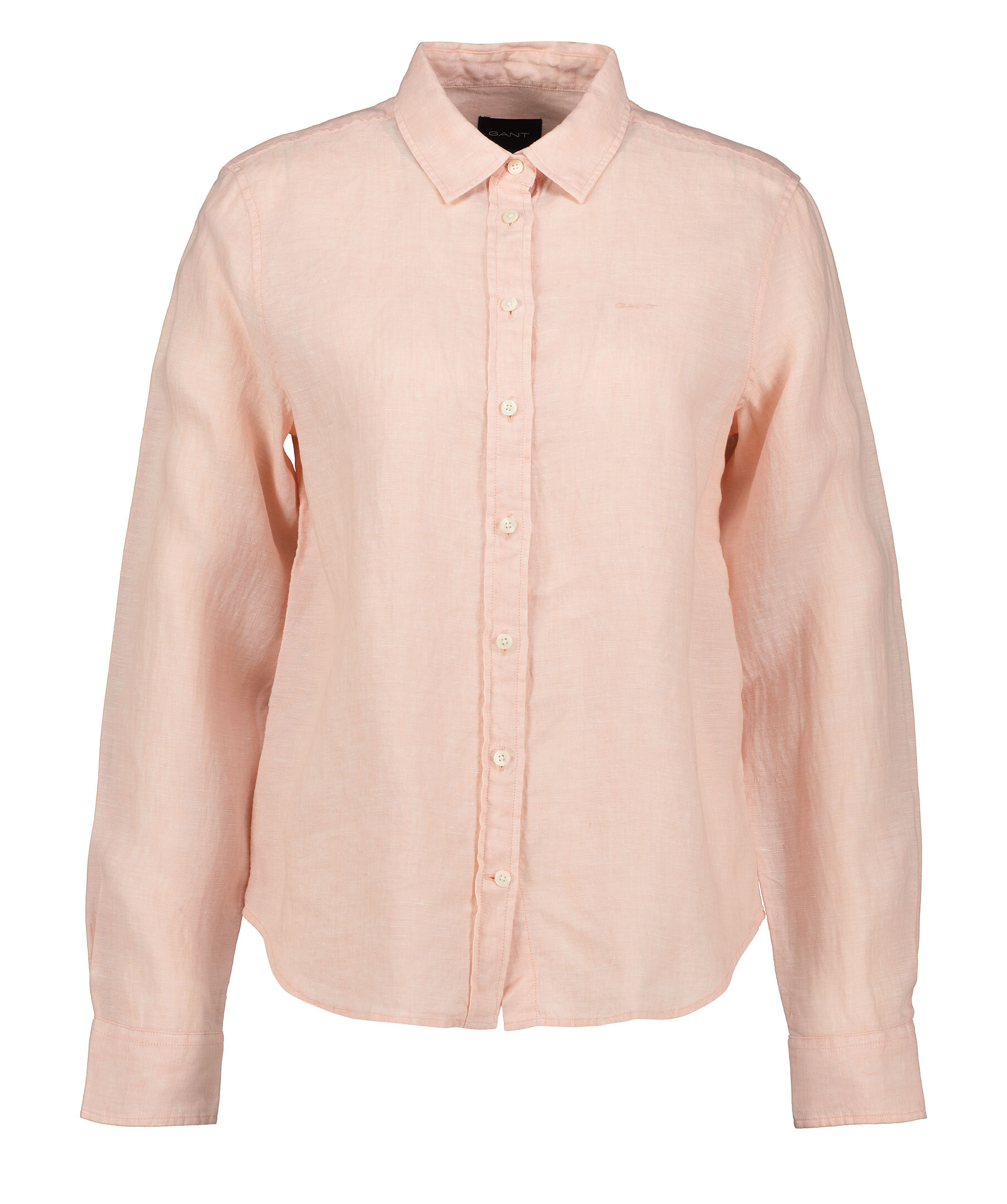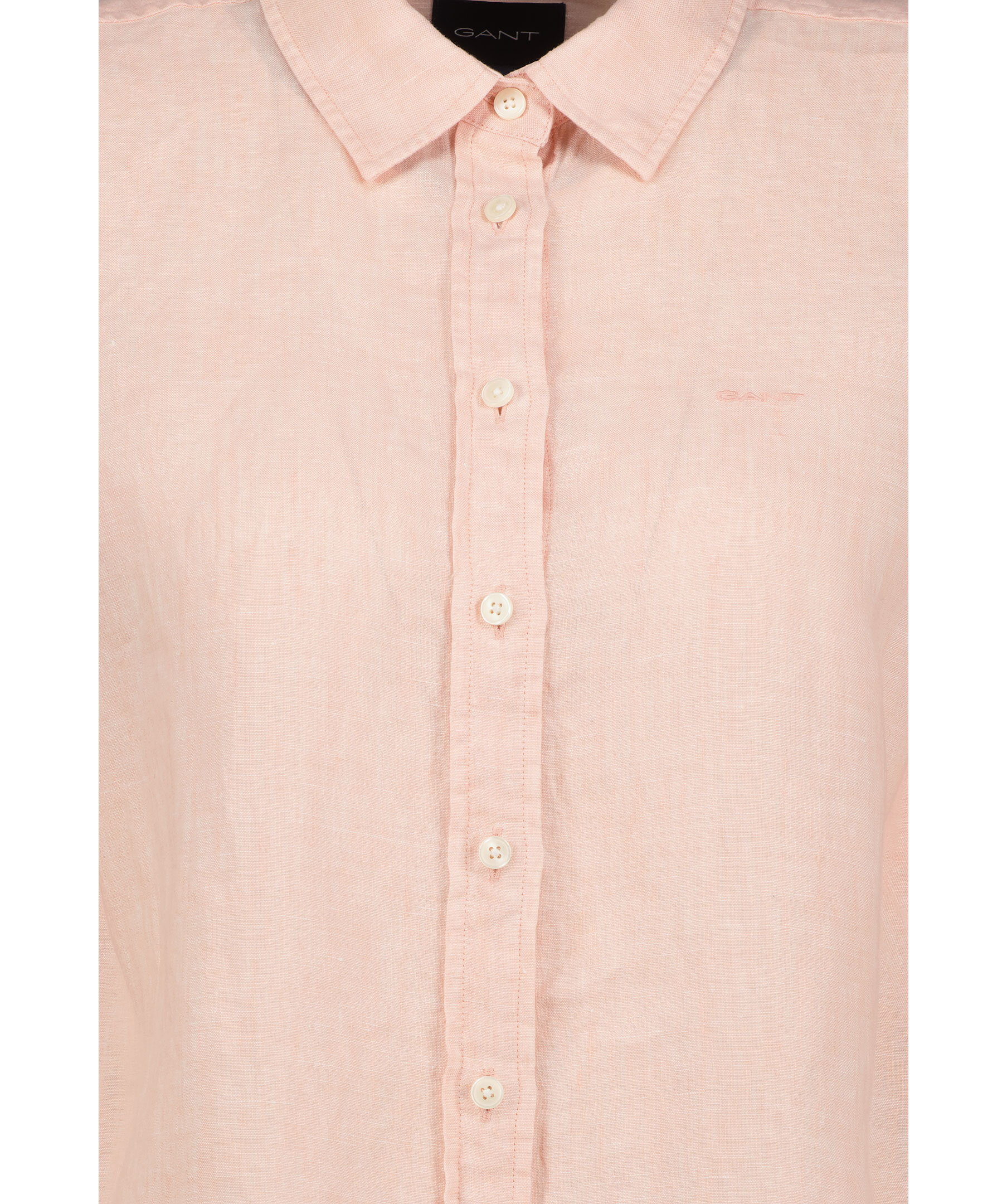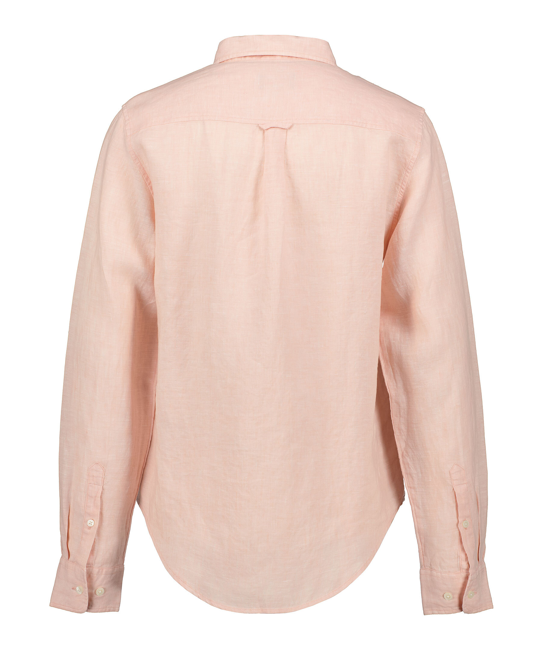 Ljusrosa linneskjorta från Gant. Stängs framtill med knappar. Spetsig krage. Broderad logotyp på vänster bröst. Enkla, justerbara manschetter. Boxpleat och locker loop på ryggen.