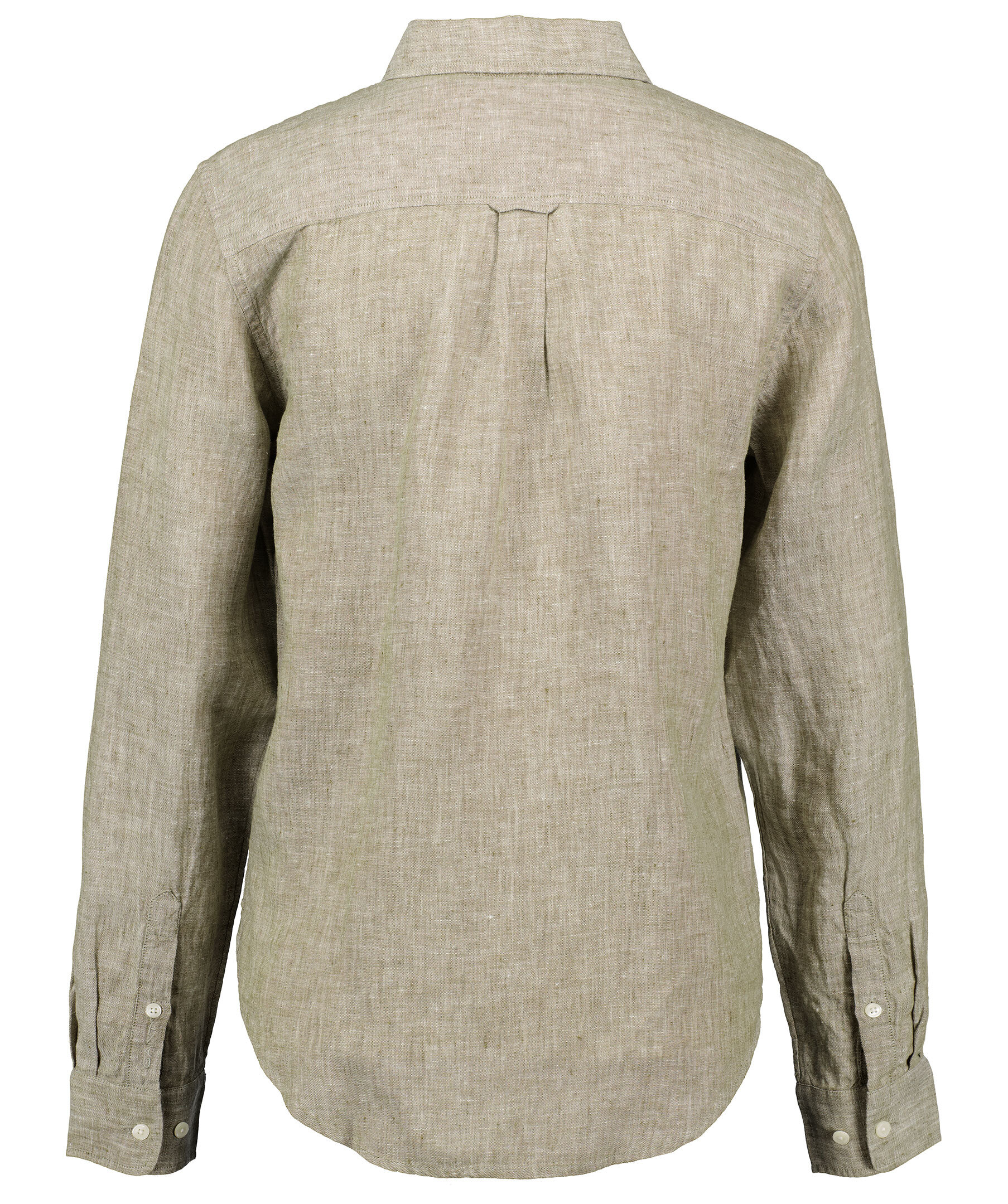 Olivgrön Linneskjorta från Gant. Broderad GANT-logotyp på vänster manschett. Justerbara manschetter. Locker loop och boxpleat på ryggen.