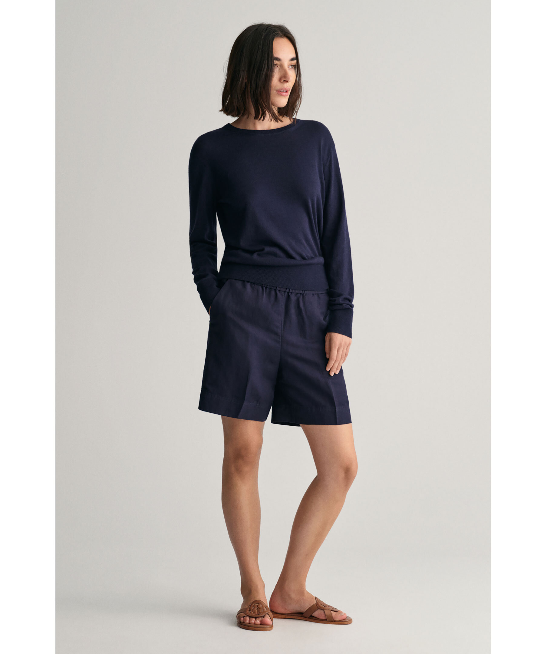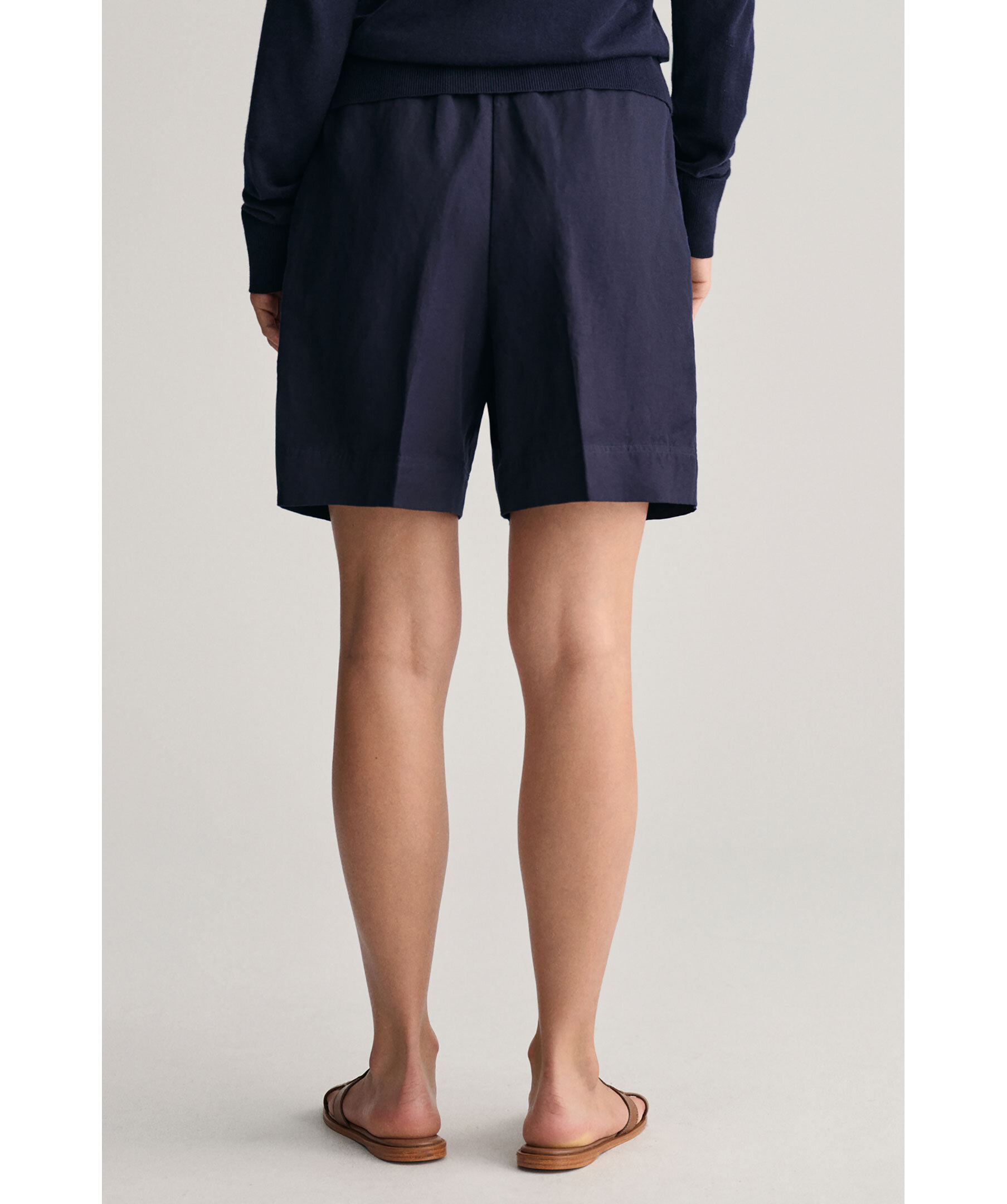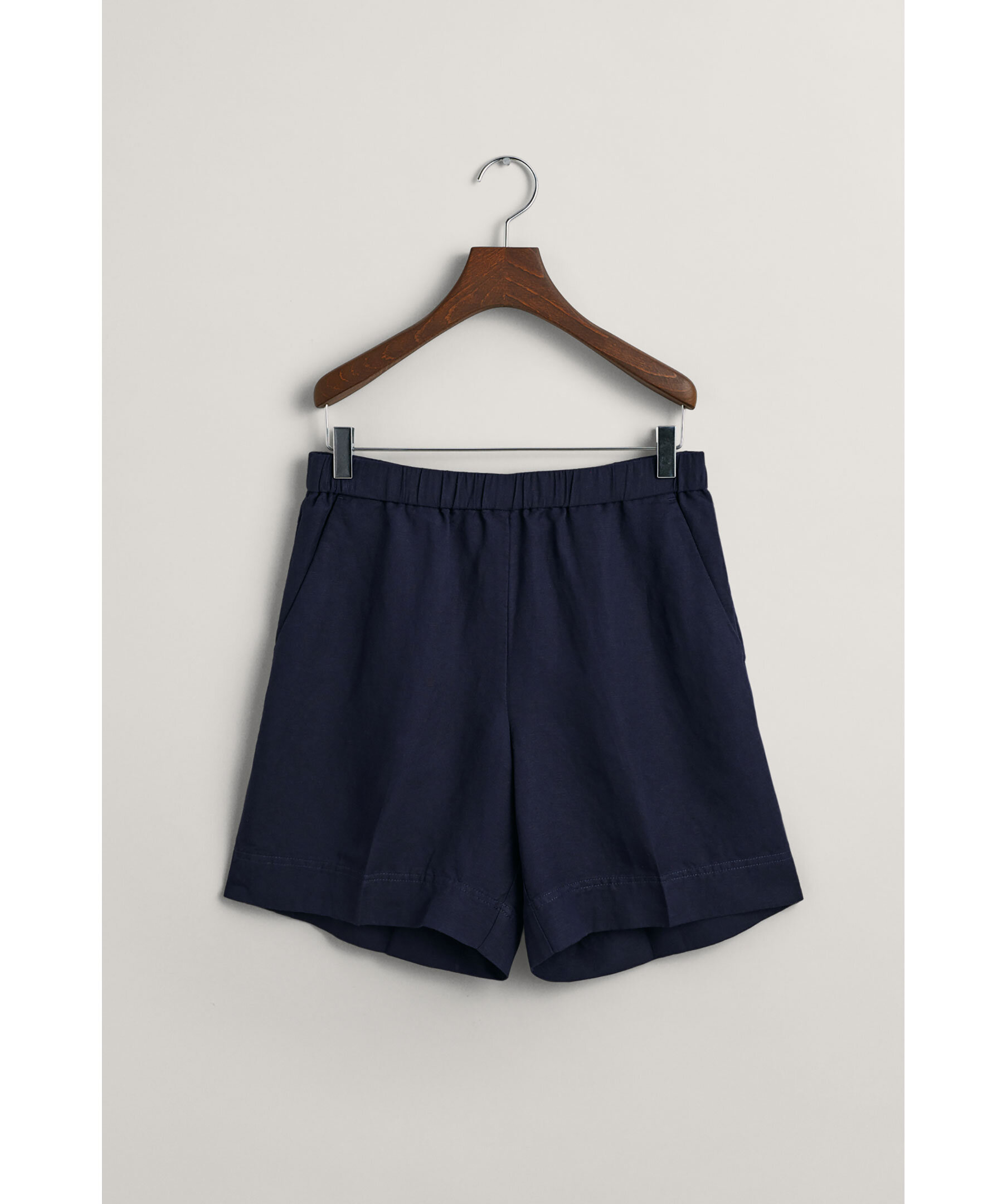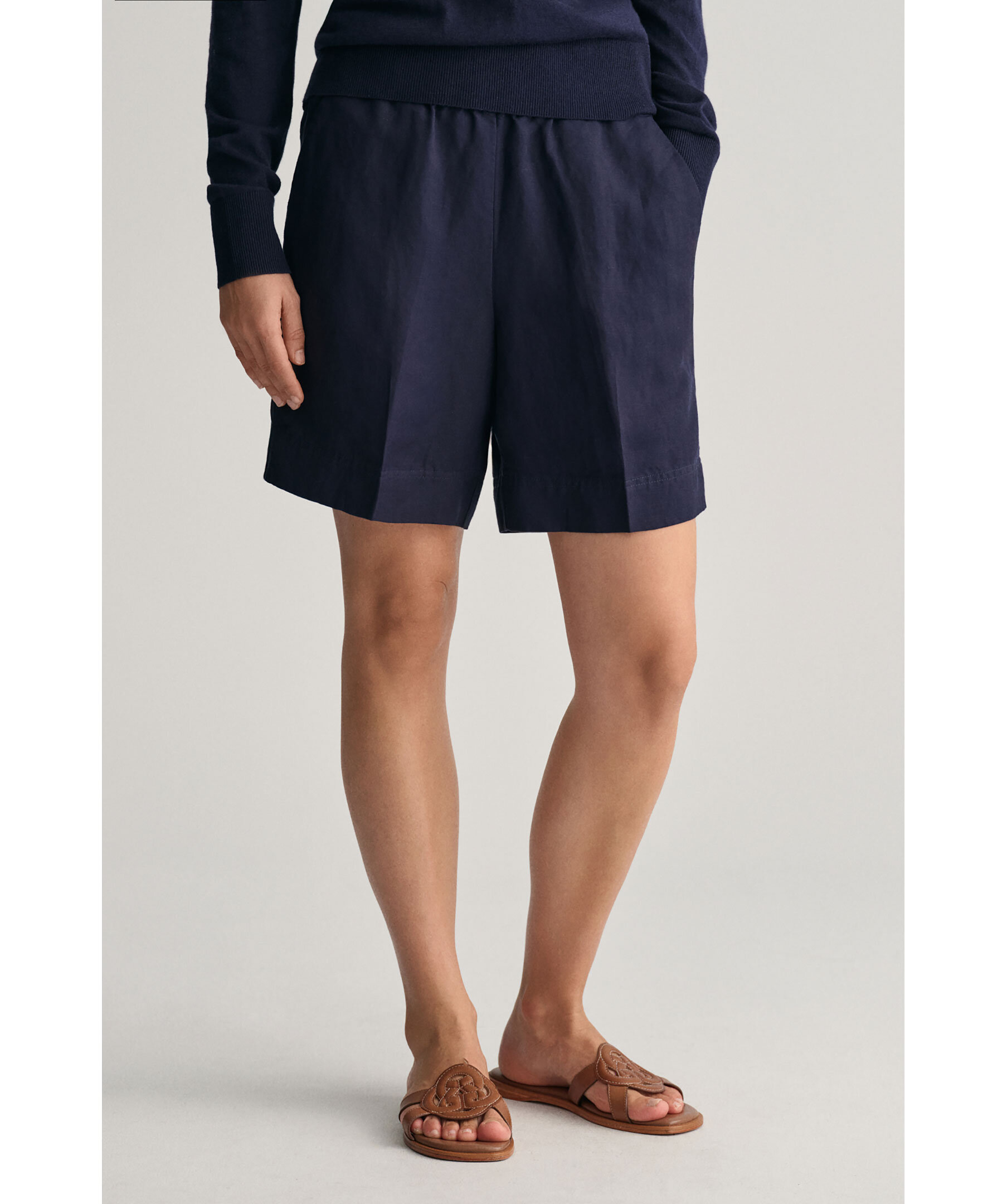 Marinblåa linneshorts med lätt glans från Gant. Dra-på-modell med resårlinning, mellanhög midja, en relaxed fit och raka ben som slutar på mitten av låret. Tillverkade i en mjuk linneblandning.