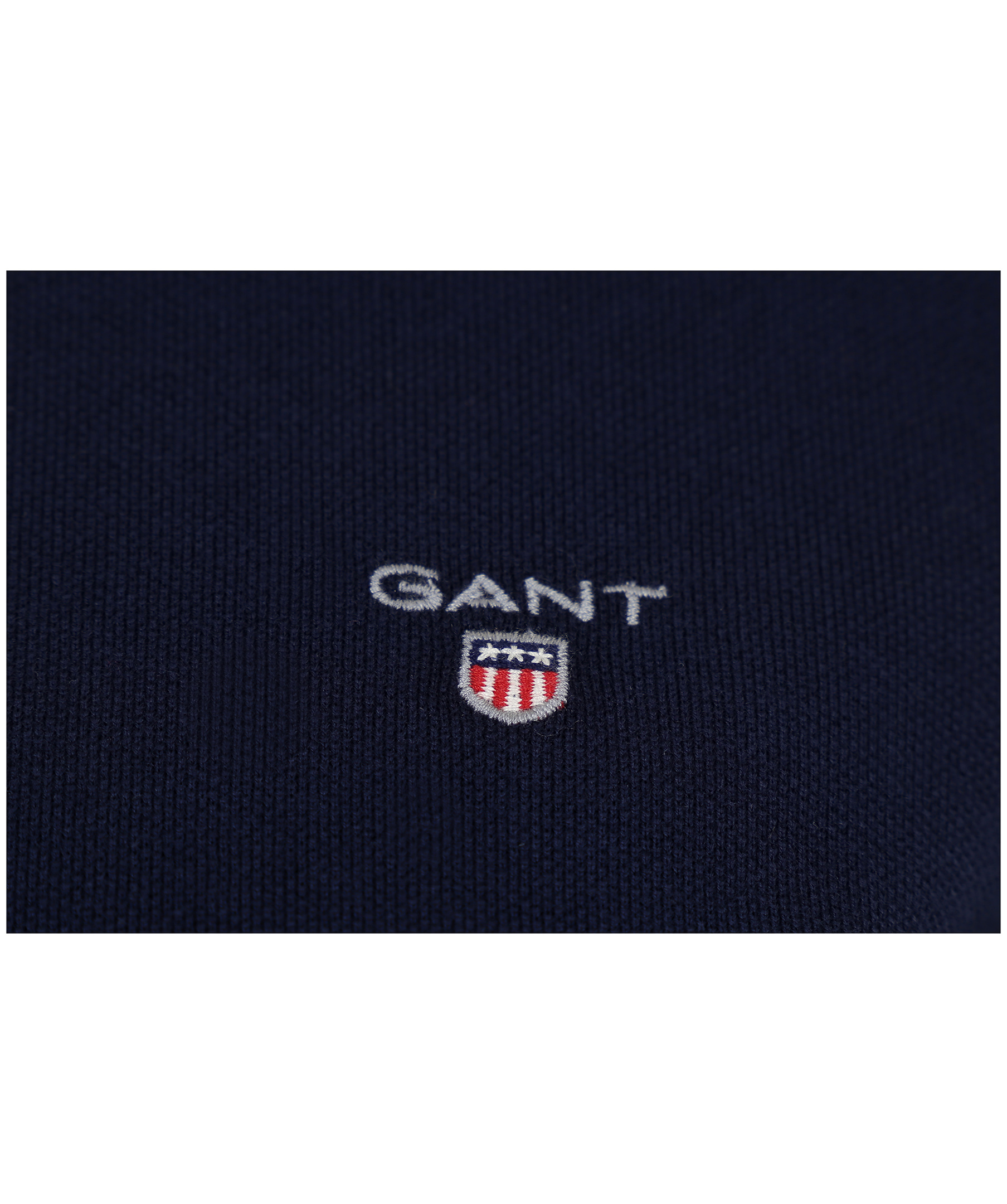 Marinblå kortärmad pikétröja från Gant. Tillverkad i bomull, liten broderad gant-logga på bröstet och fyra knappar fram.