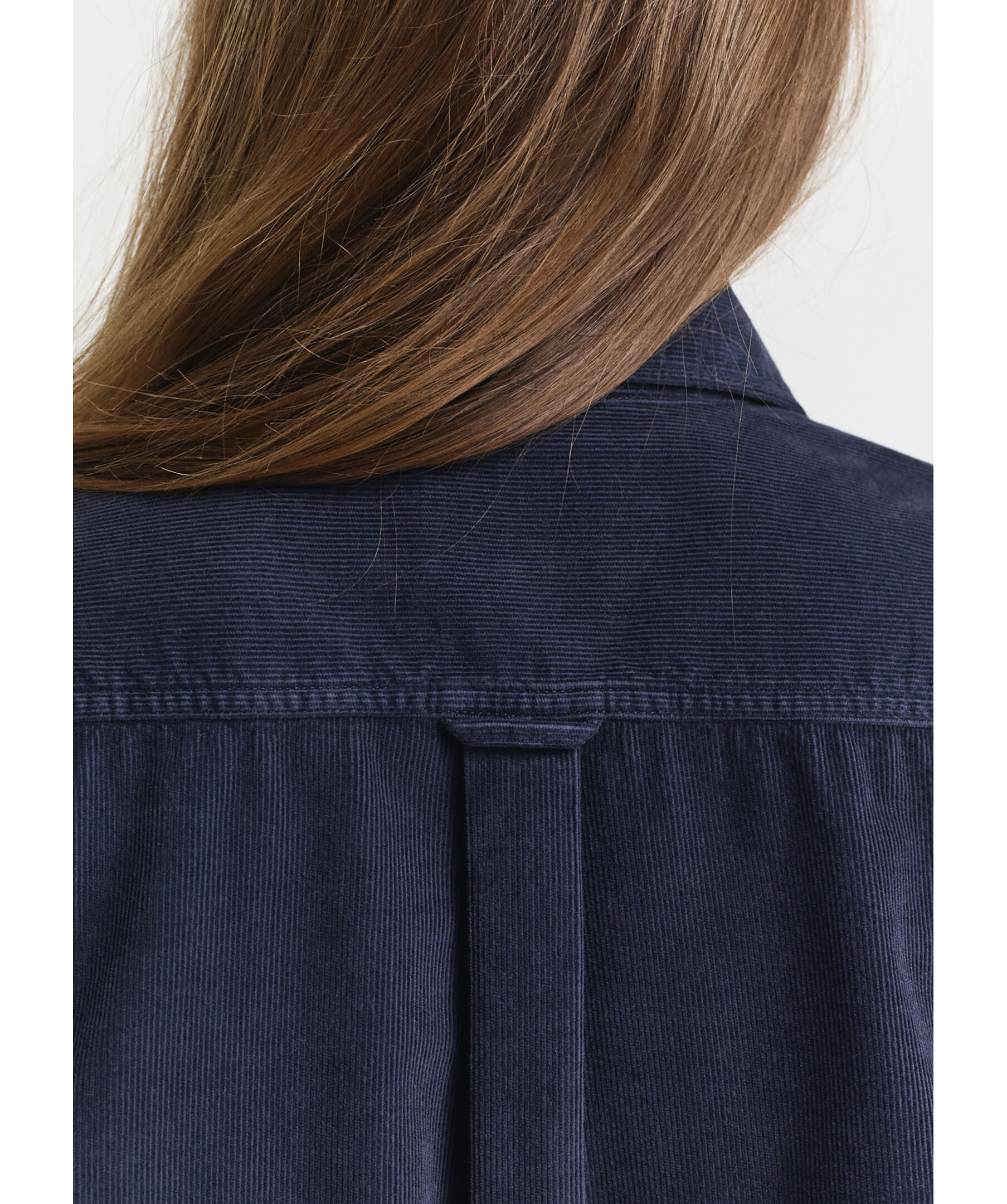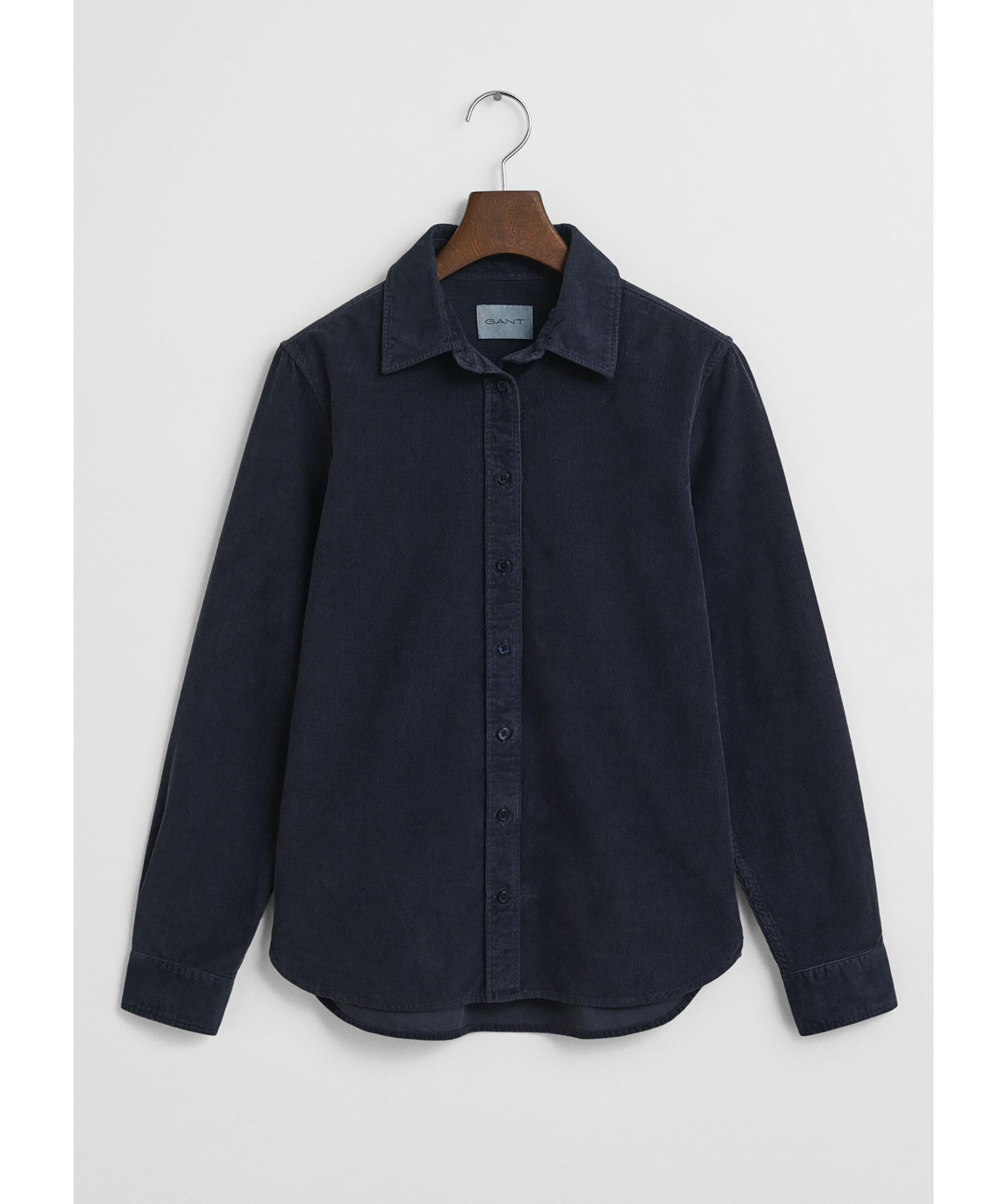 Mörkblå manchesterskjorta från Gant. Stängs med knappar framtill och har rundad fåll, point-krage, justerbara ärmslut, boxpleat med locker loop i ryggen samt en subtilt broderad logotyp vid ärmslut. Tillverkad i bomull.