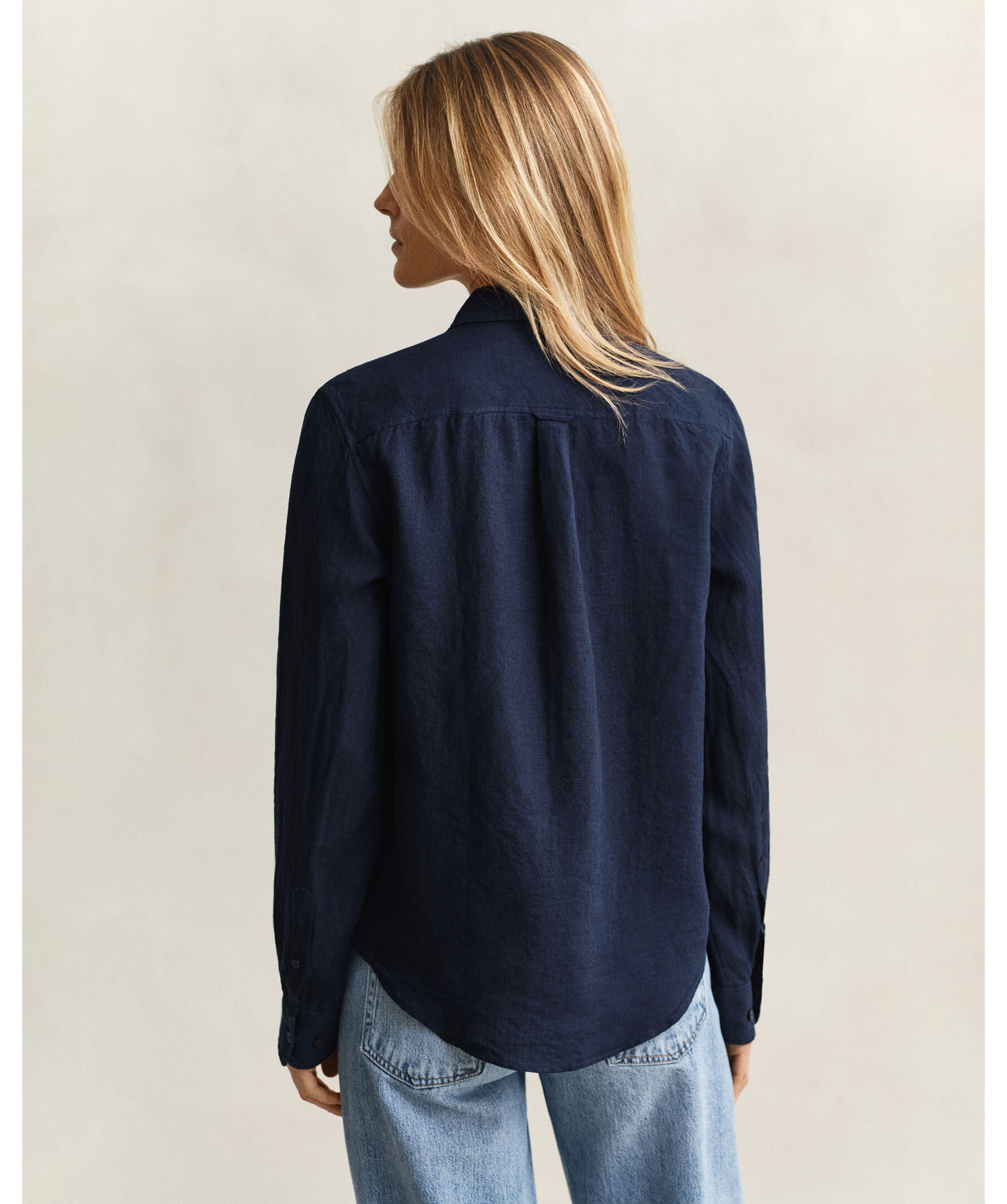 Gant Reg Linen LS Shirt - Navy