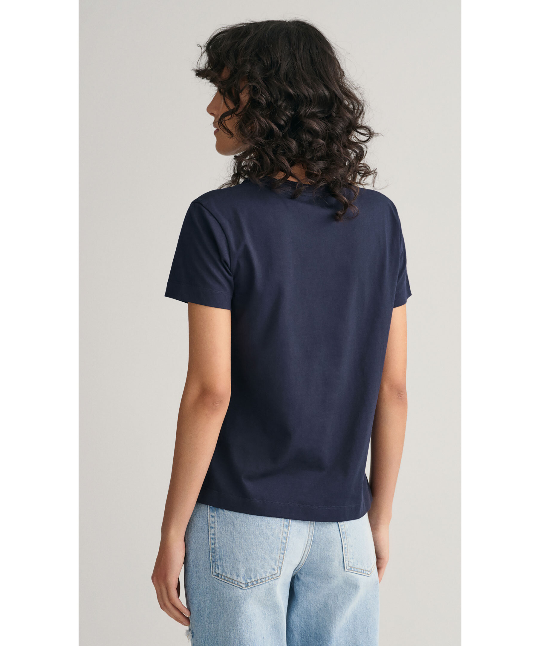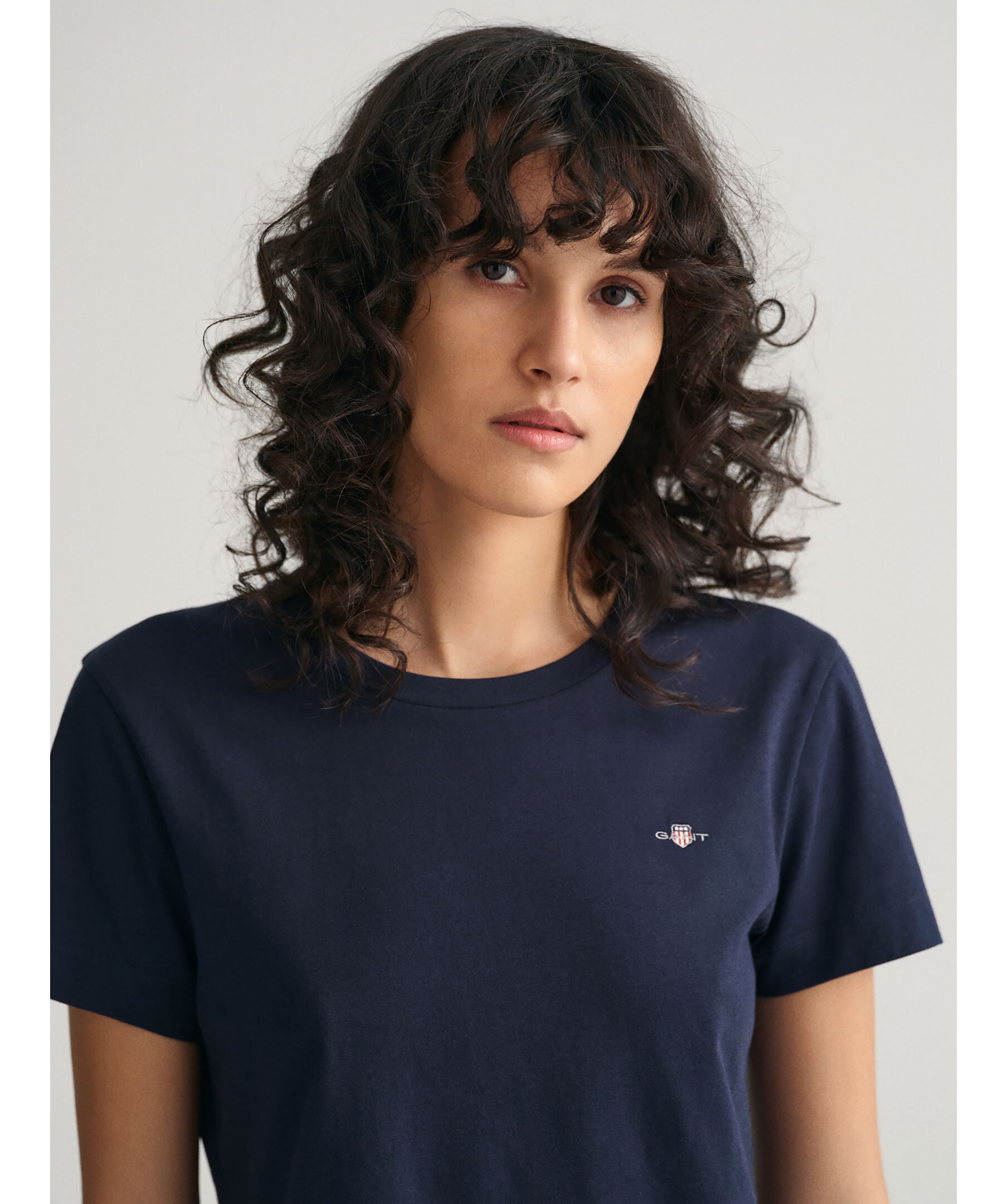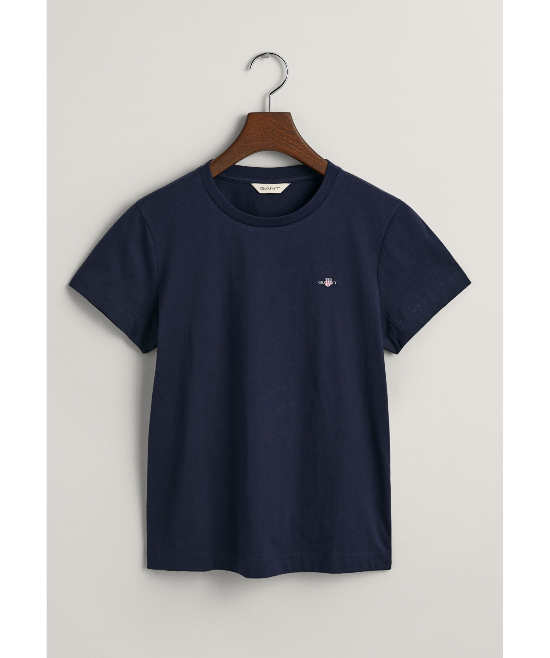 Marinblå t-shirt i mjuk bomull från Gant. Liten sköldlogotyp broderad på bröstet. En vardagsklassiker med normal passform, korta ärmar och en klassisk rund halsringning. Kombinera med denim för en ledig look året runt.