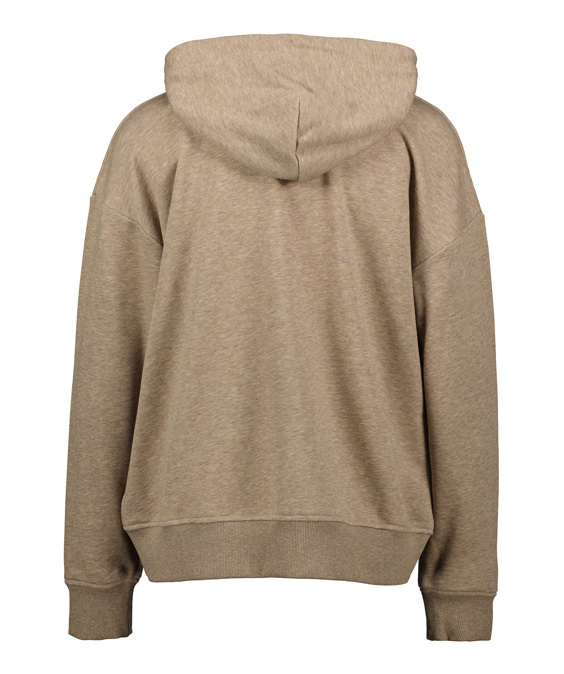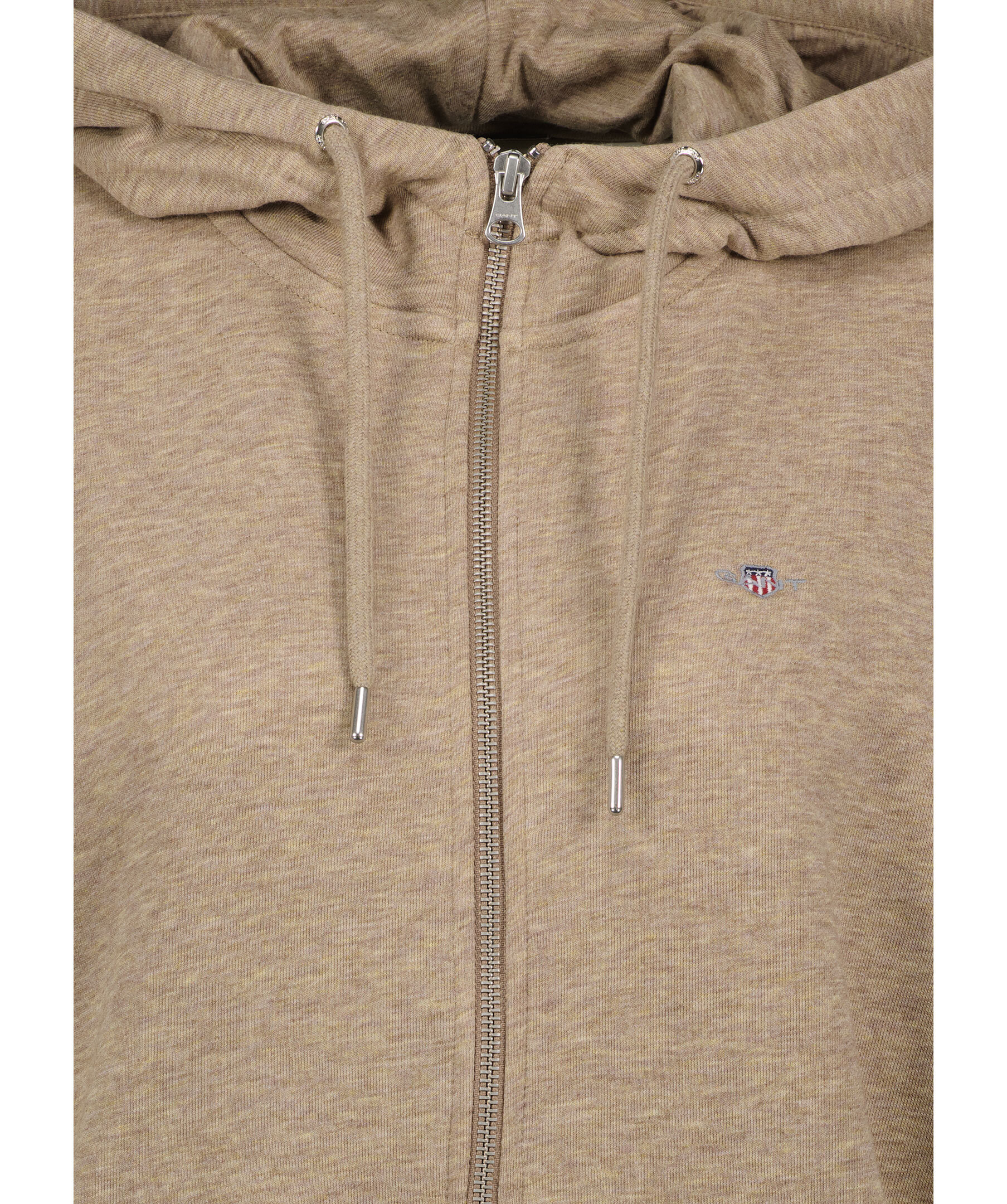 Beigemelerad hoodie från Gant. Tröjan har en liten sköldlogotyp broderad på bröstet som kombinerar deras preppy historia med modernt streetwear. Hoodien kommer i mjuk bomullsfleece med dragkedja och påsydd ficka fram, perfekt att använda året runt. Plagget har en relaxed fit. För en mer figurnära passform rekommenderar vi att du väljer en mindre storlek.