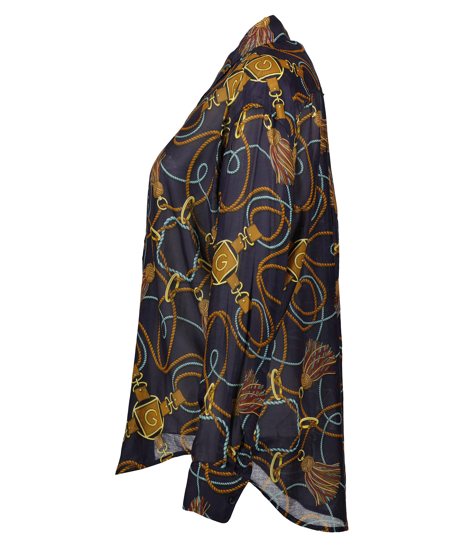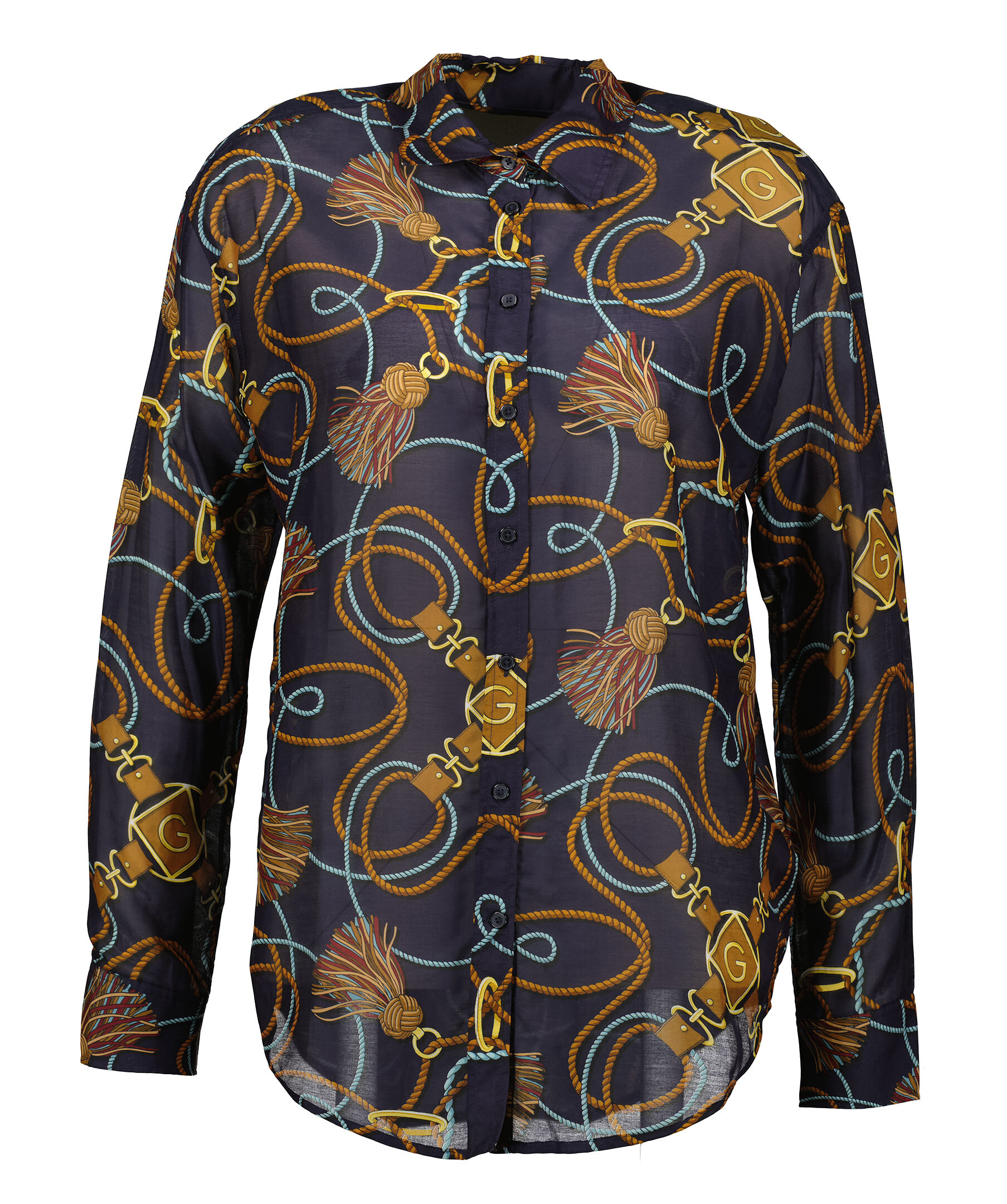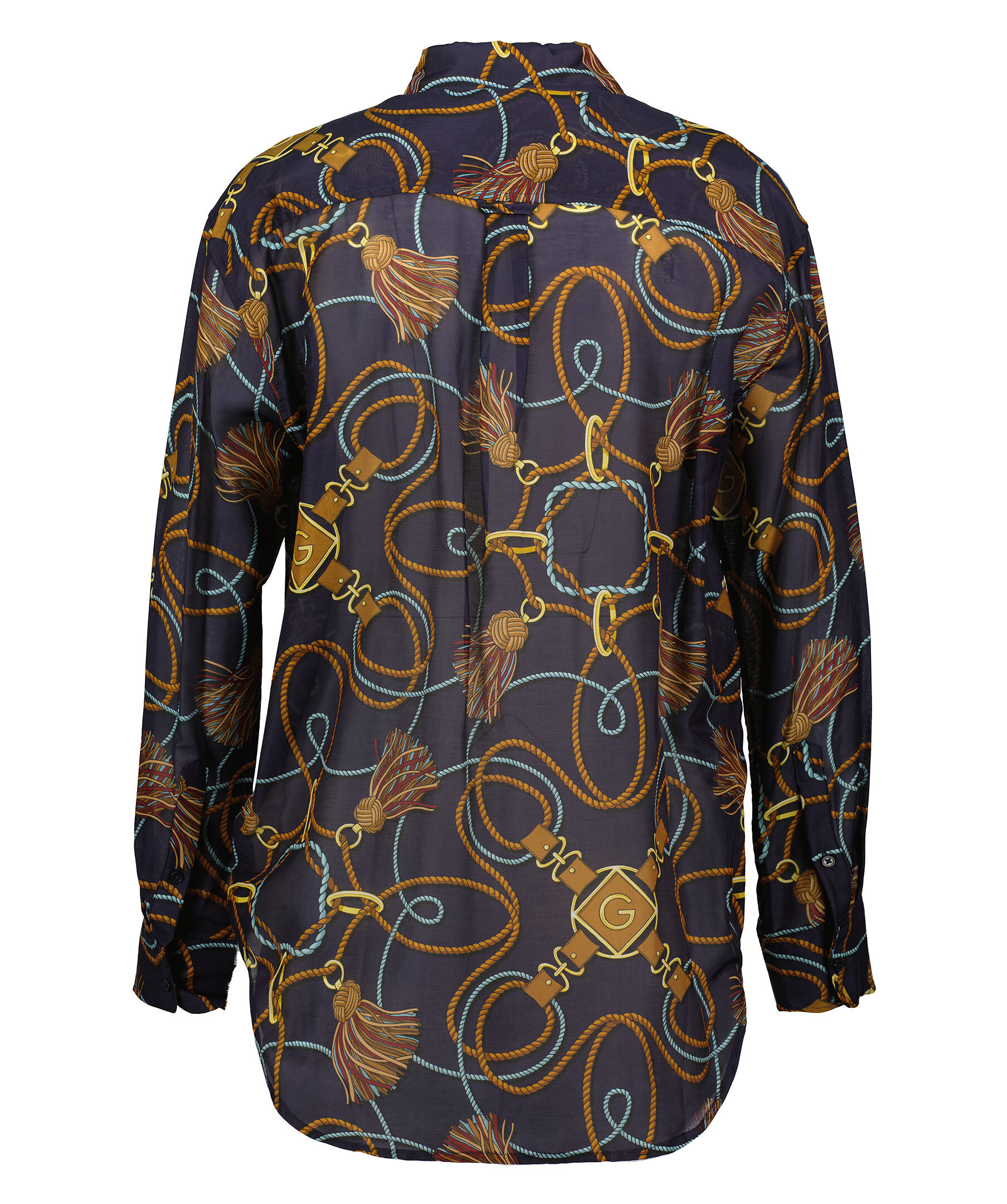 Mörkblå skjorta i feminin bomulls- och silkesblandning från Gant. Framtagen med ett repmönster som ritats för hand av deras designstudio för en djärv statementlook. Den har en relaxed fit, point-krage, knappar i återvunnen polyester, rundad fåll och vår klassiska boxpleat med locker loop i ryggen. Plagget har en relaxed fit. För en mer figurnära passform rekommenderar vi att du väljer en mindre storlek.